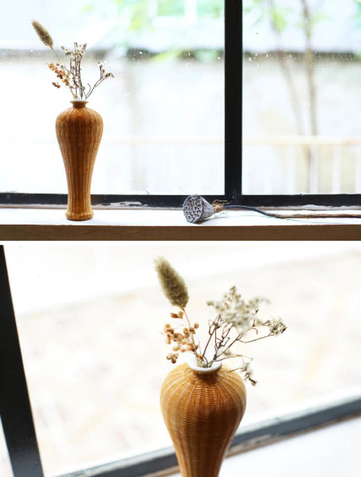 如同美人身段一般的造型,古典的东方美,完整的竹编肌理包裹凸显了工艺感。