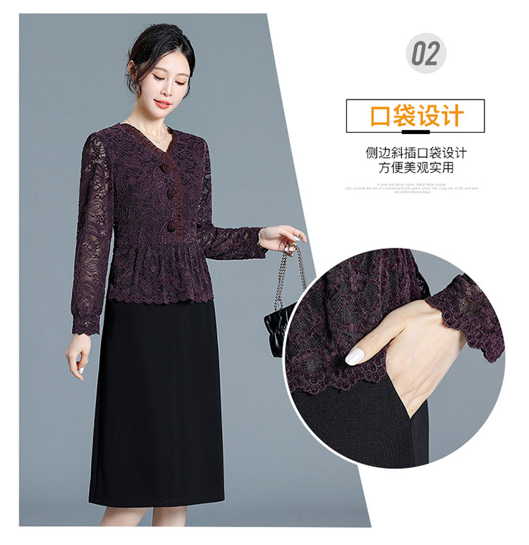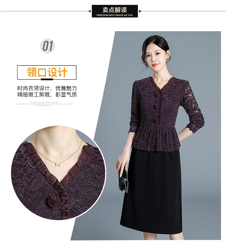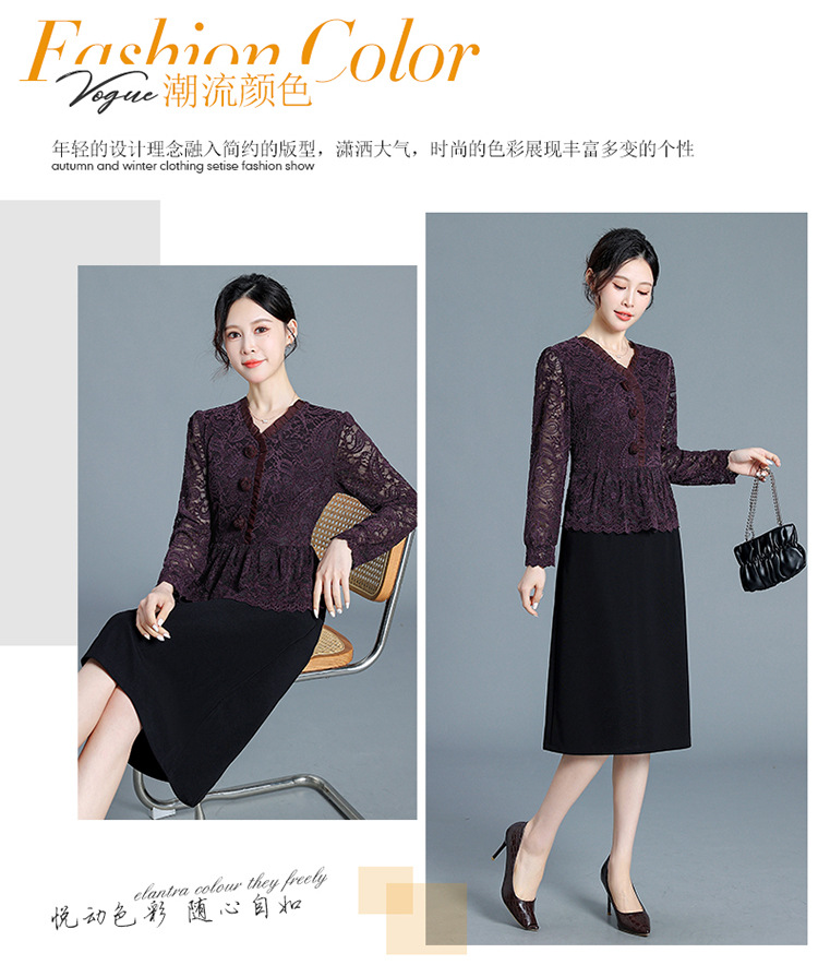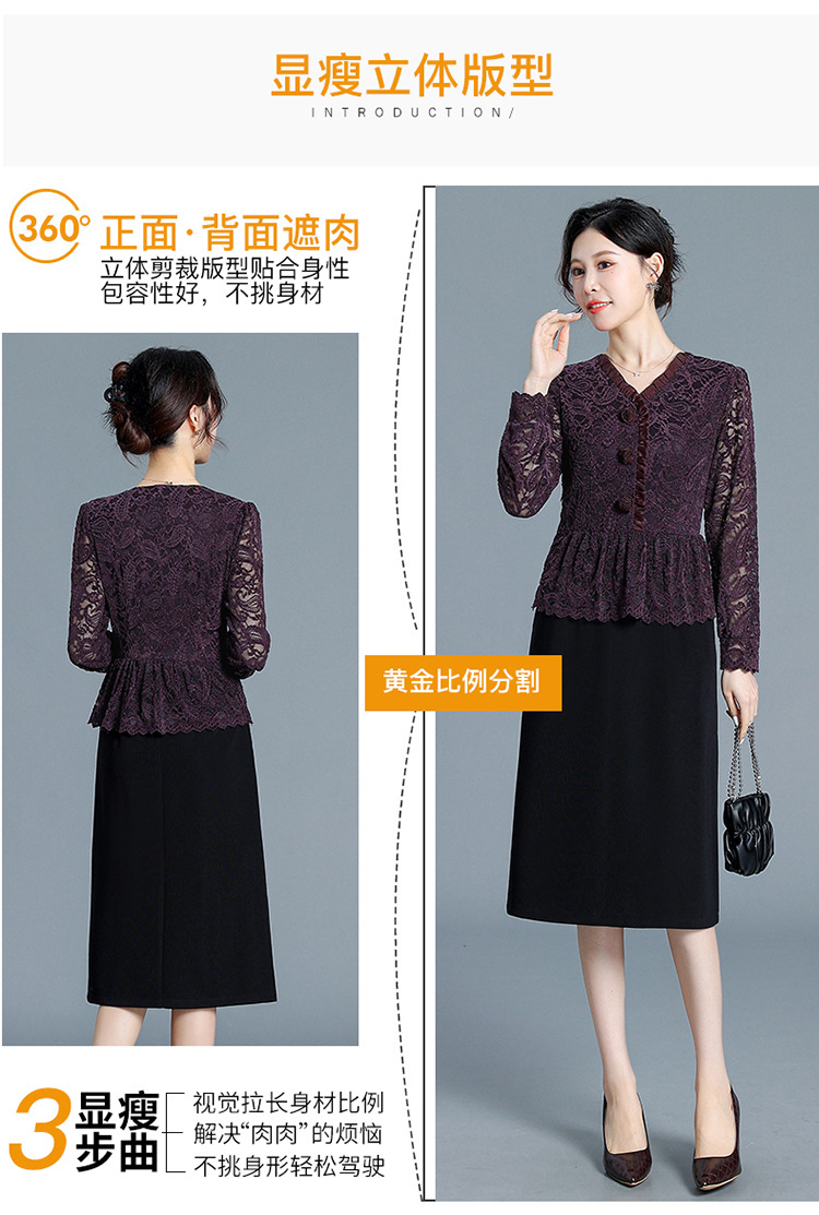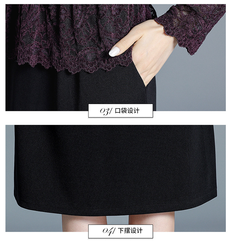 QYM 65097-Y时尚气质连衣裙网纱木耳边蕾丝拼结个两件包臀裙 商品图3