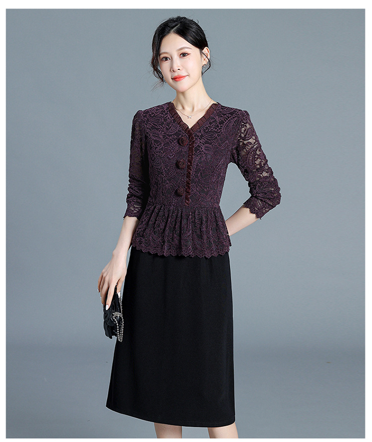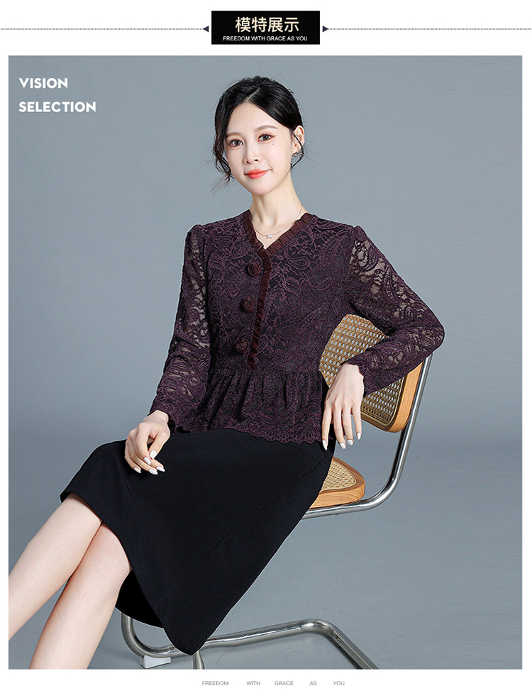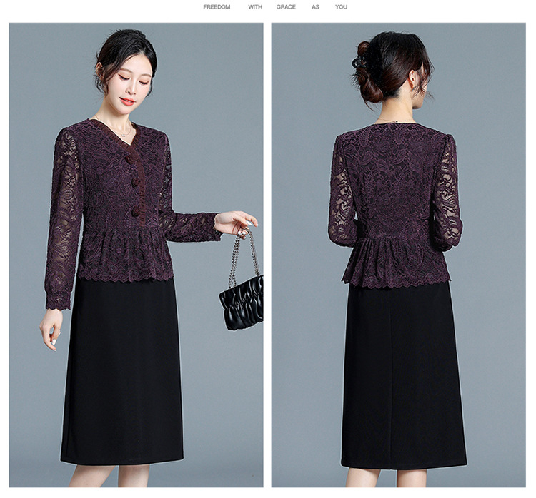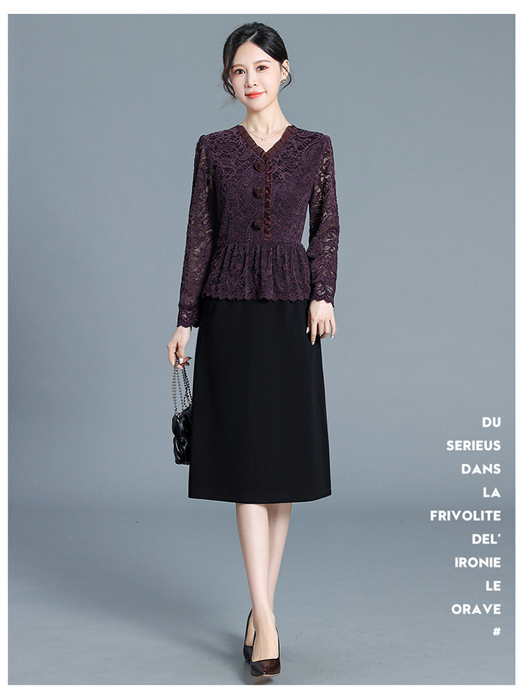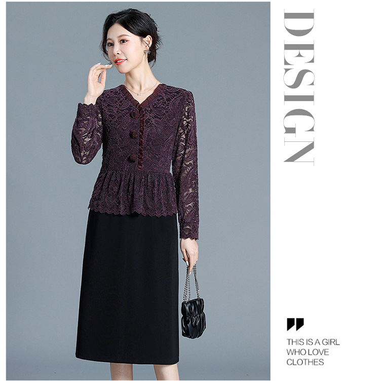 QYM 65097-Y时尚气质连衣裙网纱木耳边蕾丝拼结个两件包臀裙 商品图3