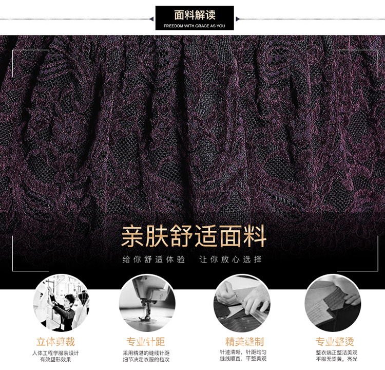 QYM 65097-Y时尚气质连衣裙网纱木耳边蕾丝拼结个两件包臀裙 商品图4