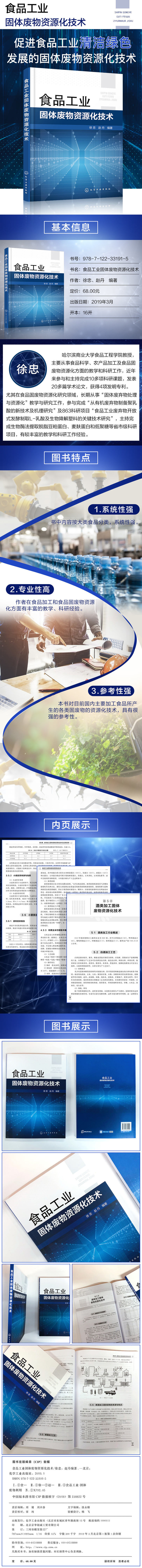 我们结合多年来的教学与研究成果,收集并参考了国内外的文献资料,编著了本书。其中,徐忠编著第1章、第2章、第4章、第7章、第10章,赵丹编著第3章、第5章、第6章、第8章、第9章。本书内容反映了国内外学者及生产企业关于食品工业固体废物资源化研究成果以及研究动态,为国内食品工业固体废物新产品的进一步研究和开发提供参考。全书共分10章,第1、第2章分别介绍了食品工业固体废物的基本概念和固体废物预处理和资源化的基本方法,第3~10章分别介绍了谷物加工固体废物、淀粉加工固体废物、酒类加工固体废物、大豆加工固体废物、餐饮加工固体废物、畜产品加工固体废物、水产品加工固体废物和农作物秸秆的资源化利用和研究实例。