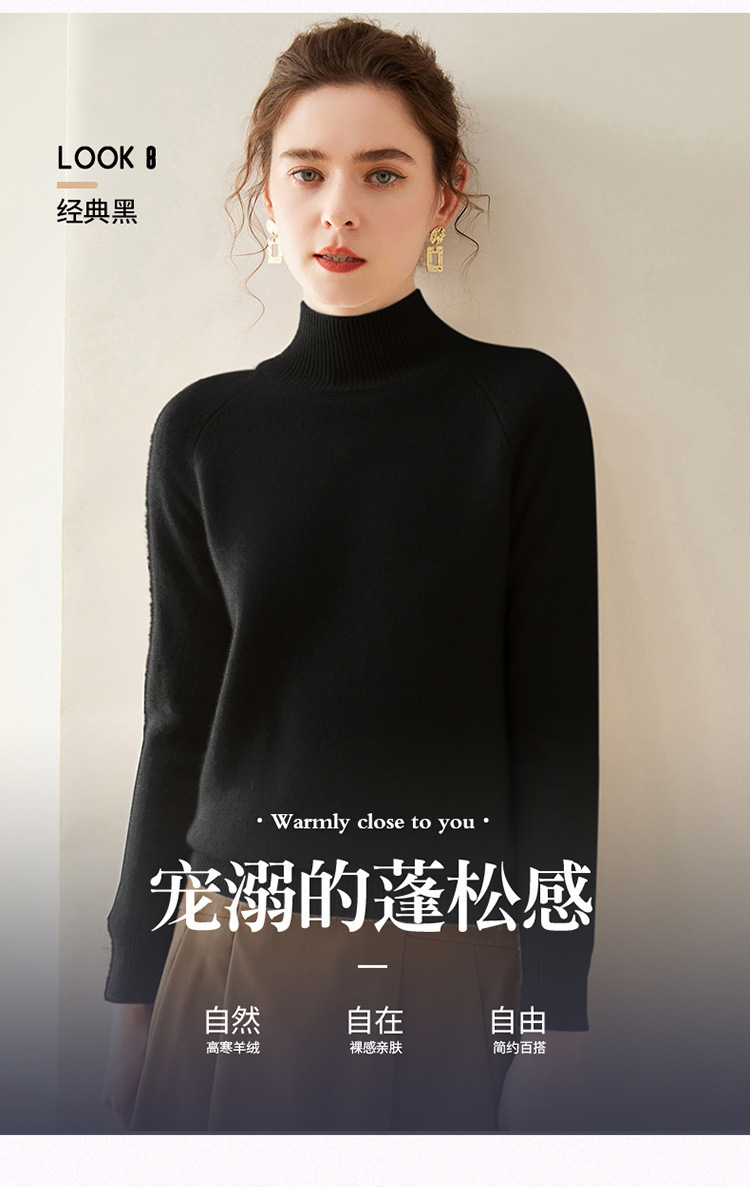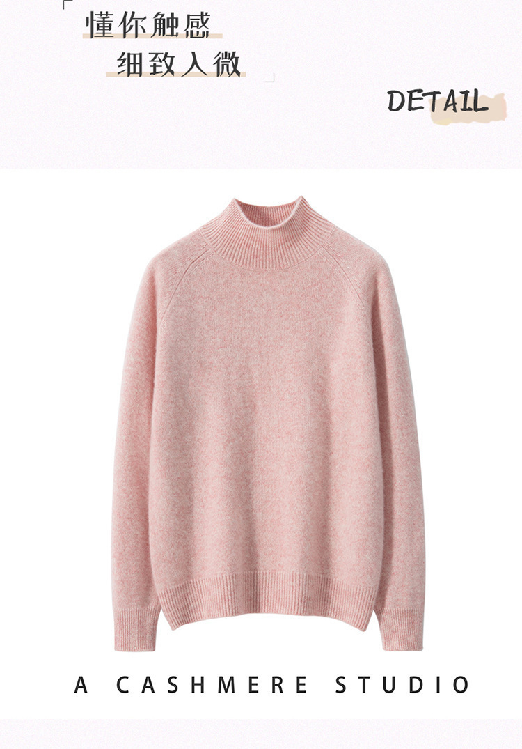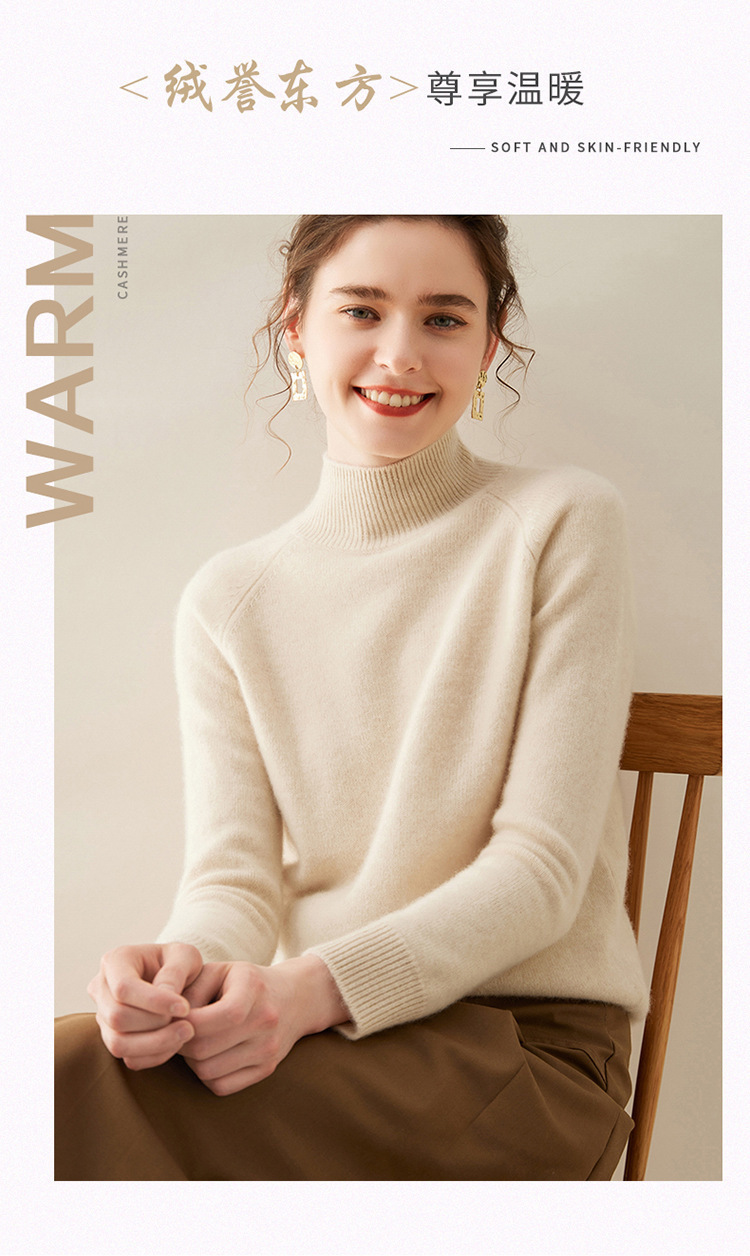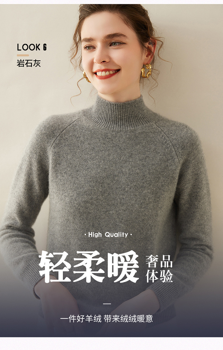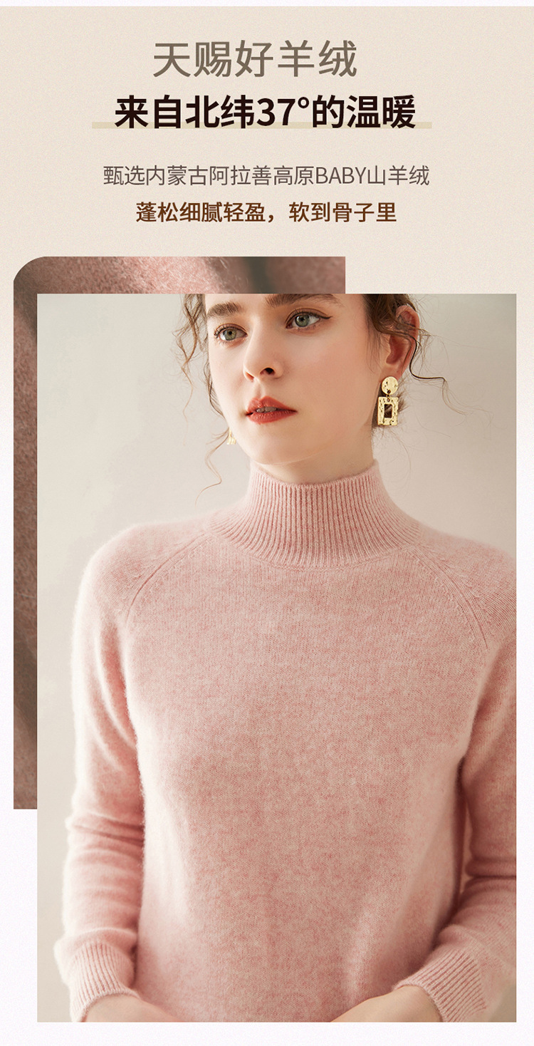 【自】全新升级【铂金会员339/天猫459/差价120】(04240) 洛诗琳秋冬山羊绒衫女半高领双股加厚插肩袖羊毛打底上衣