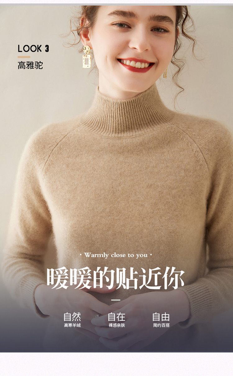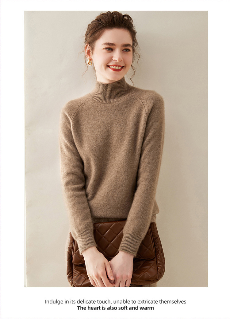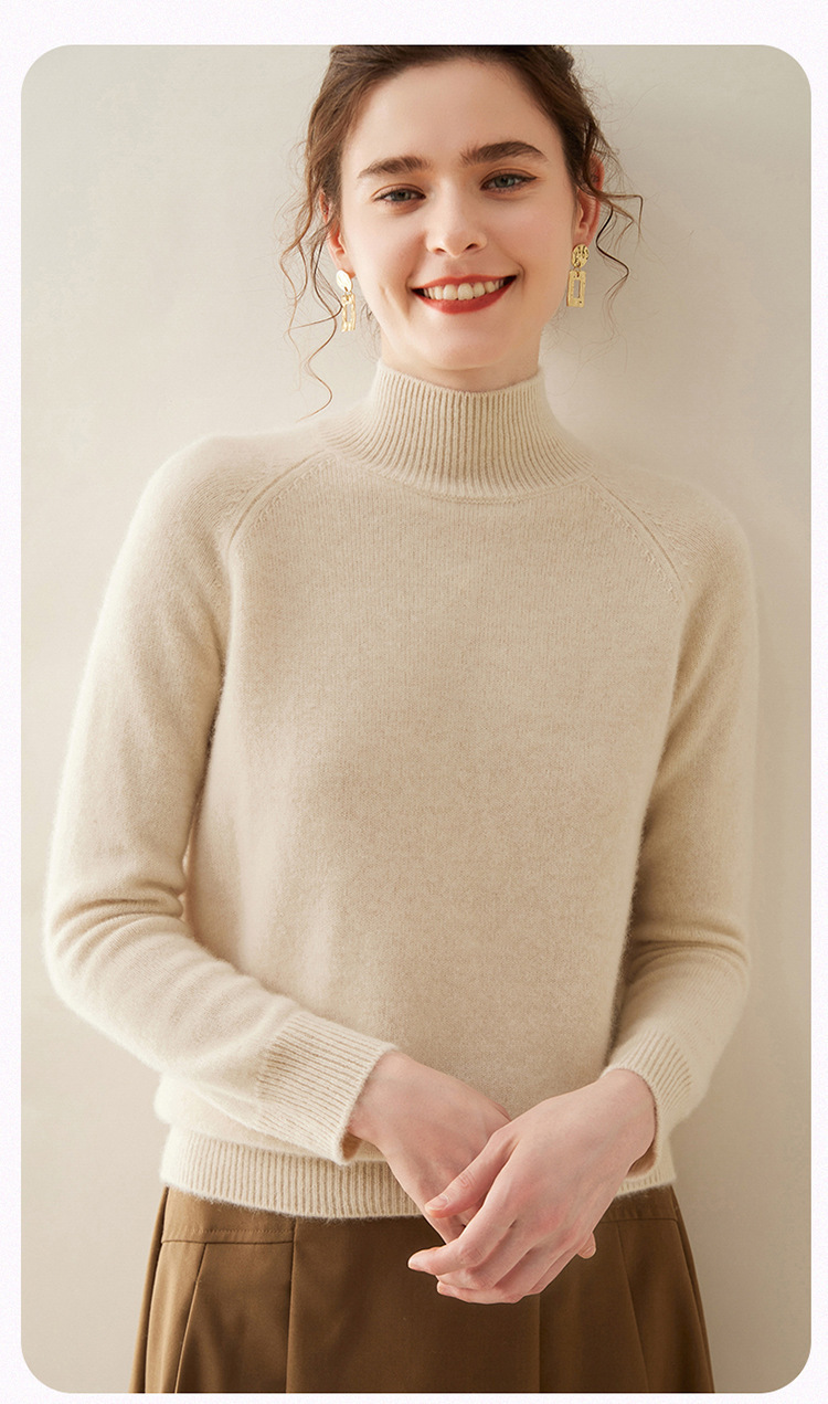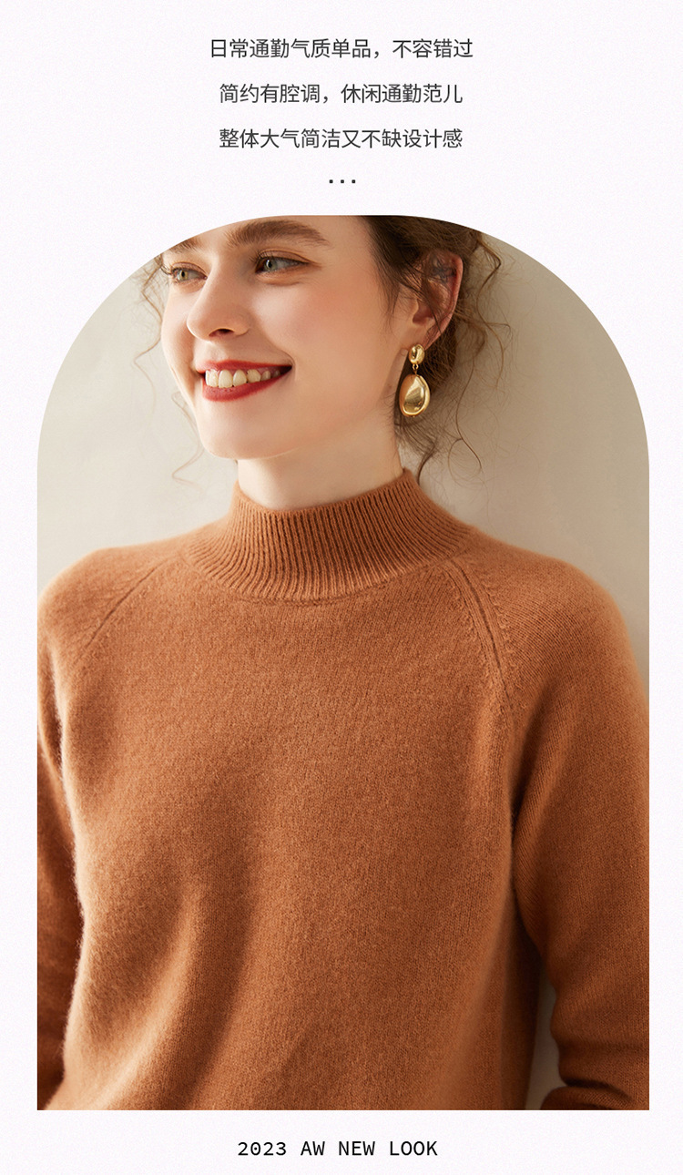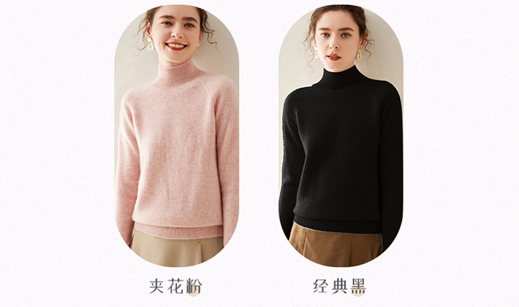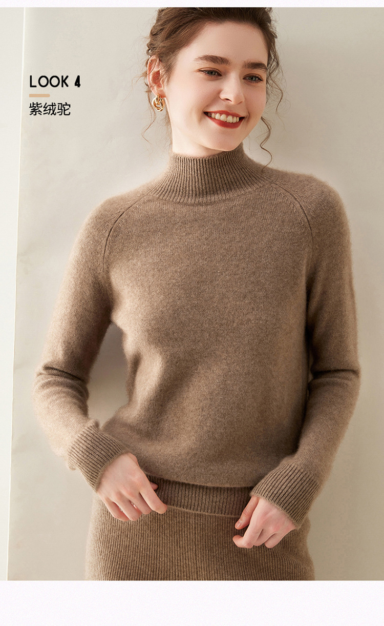 【自】全新升级【铂金会员339/天猫459/差价120】(04240) 洛诗琳秋冬山羊绒衫女半高领双股加厚插肩袖羊毛打底上衣