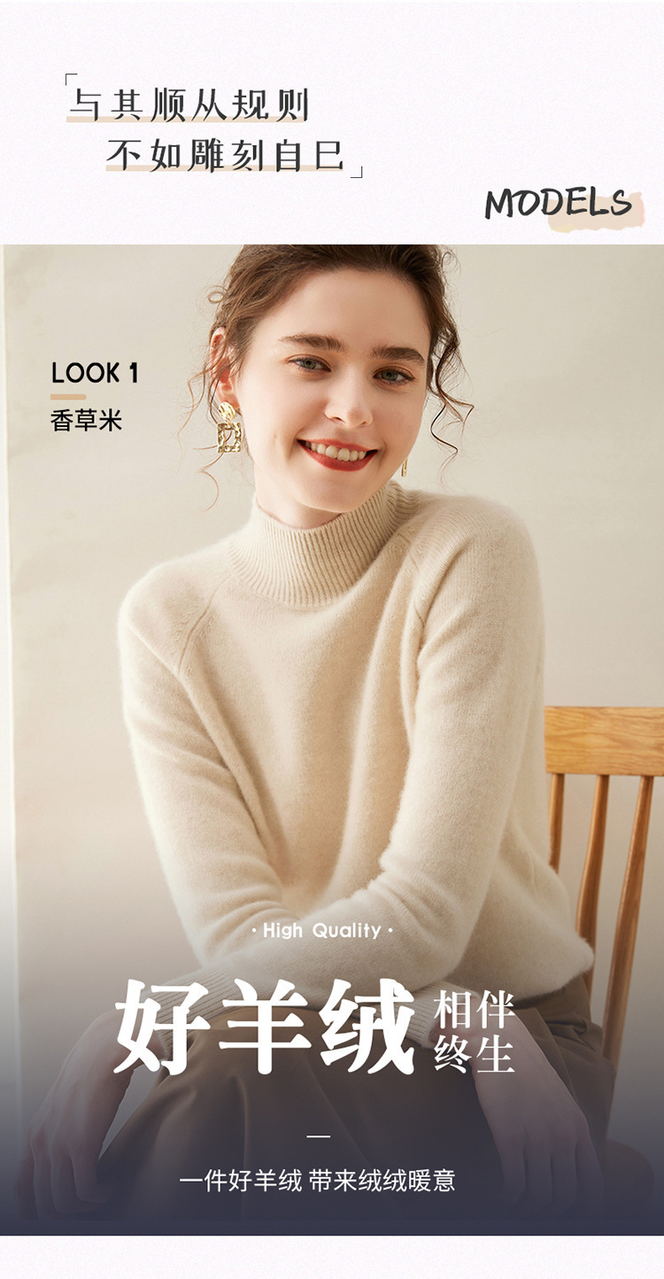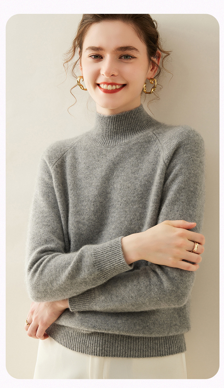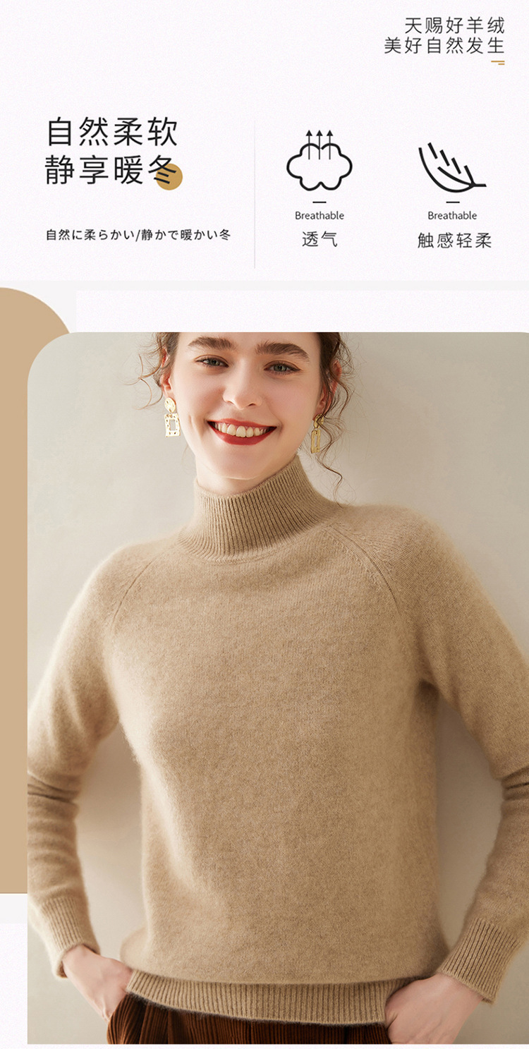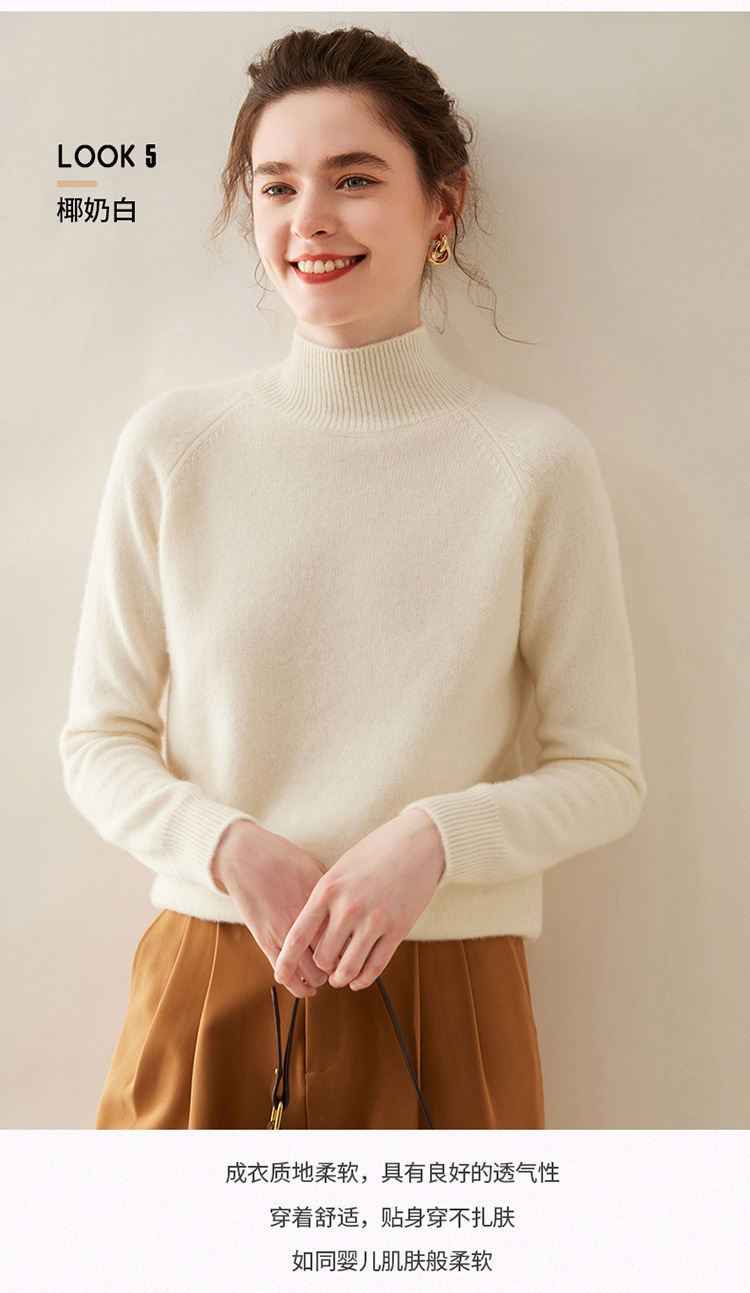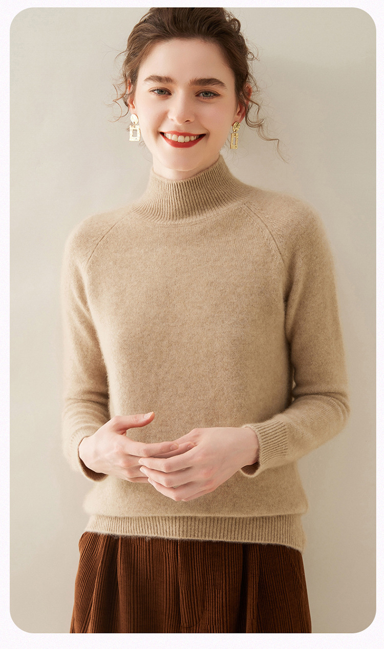【自】全新升级【铂金会员339/天猫459/差价120】(04240) 洛诗琳秋冬山羊绒衫女半高领双股加厚插肩袖羊毛打底上衣