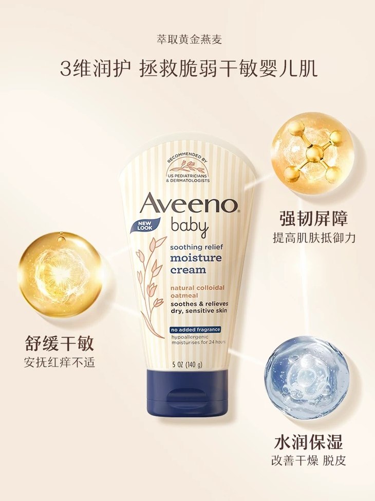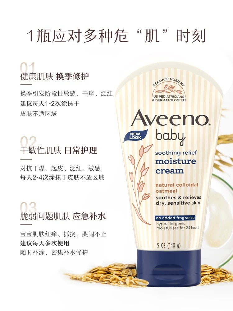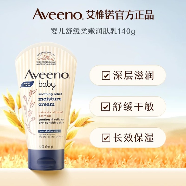 👑Aveeno 艾维诺婴儿天然燕麦舒缓柔嫩润肤乳140g 👍深层滋润,远离干燥危“肌” 💎专为婴儿干燥肌肤研发 💡含有:燕麦仁细粉、三重燕麦精华益生元 ✨有效:深层滋润、改善干燥、长效保湿、提高肌肤抵御力 🔥6大无添加、低过敏性、温和无香、PH平衡 ⭐适合:【换季时节】-干燥的宝宝肌肤