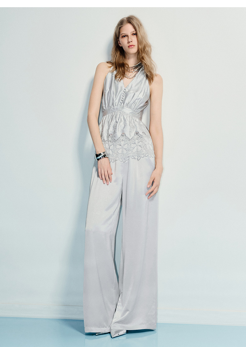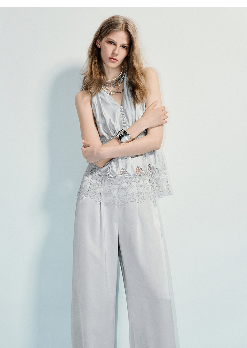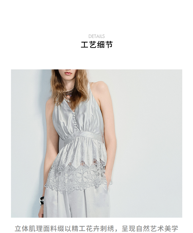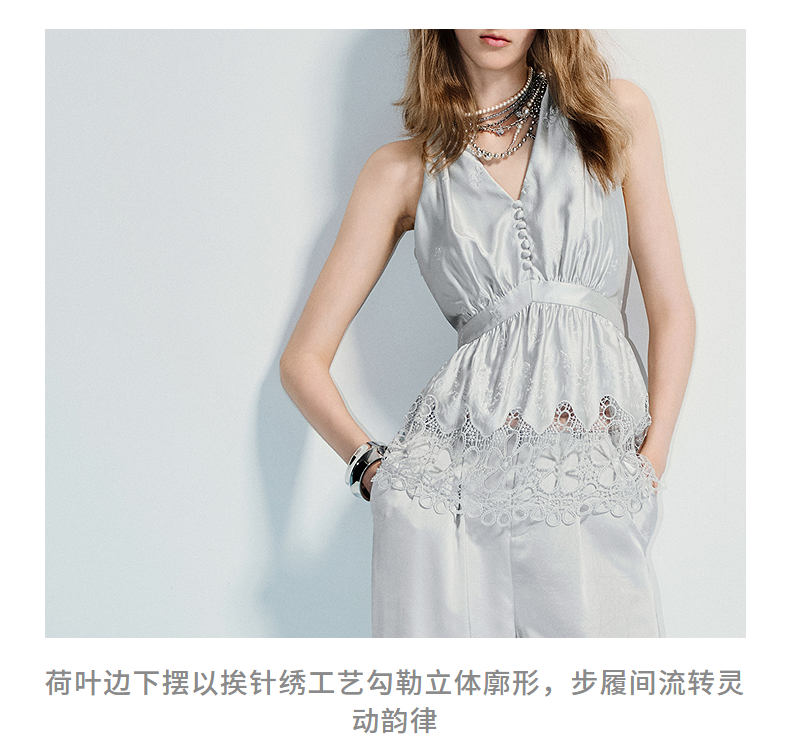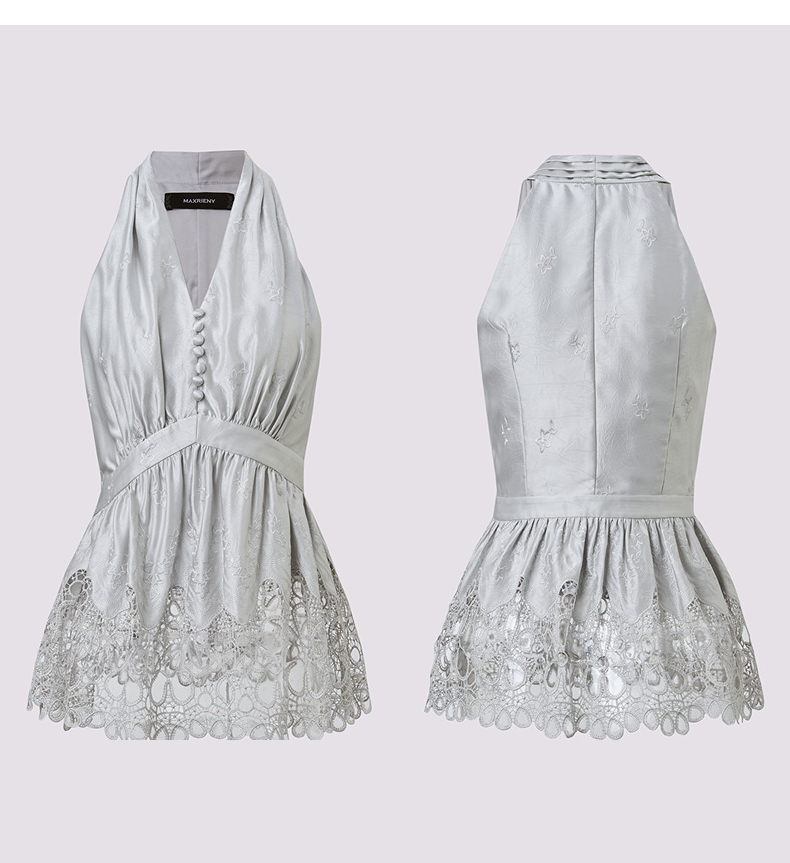 【商场同款】MAXRIENY法式优雅感无袖收腰荷叶下摆挂脖上衣25夏款(货号:MC86TP317)