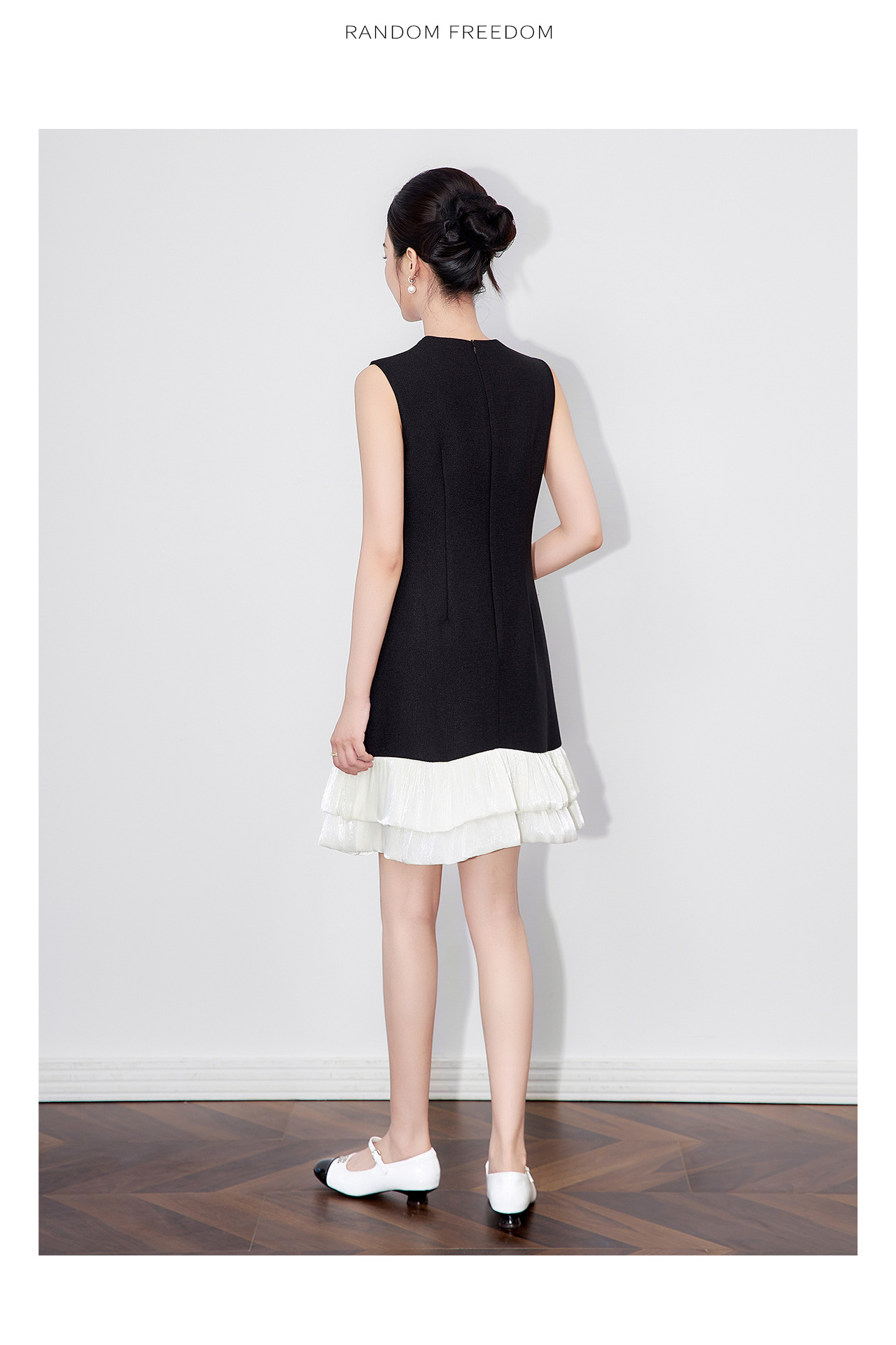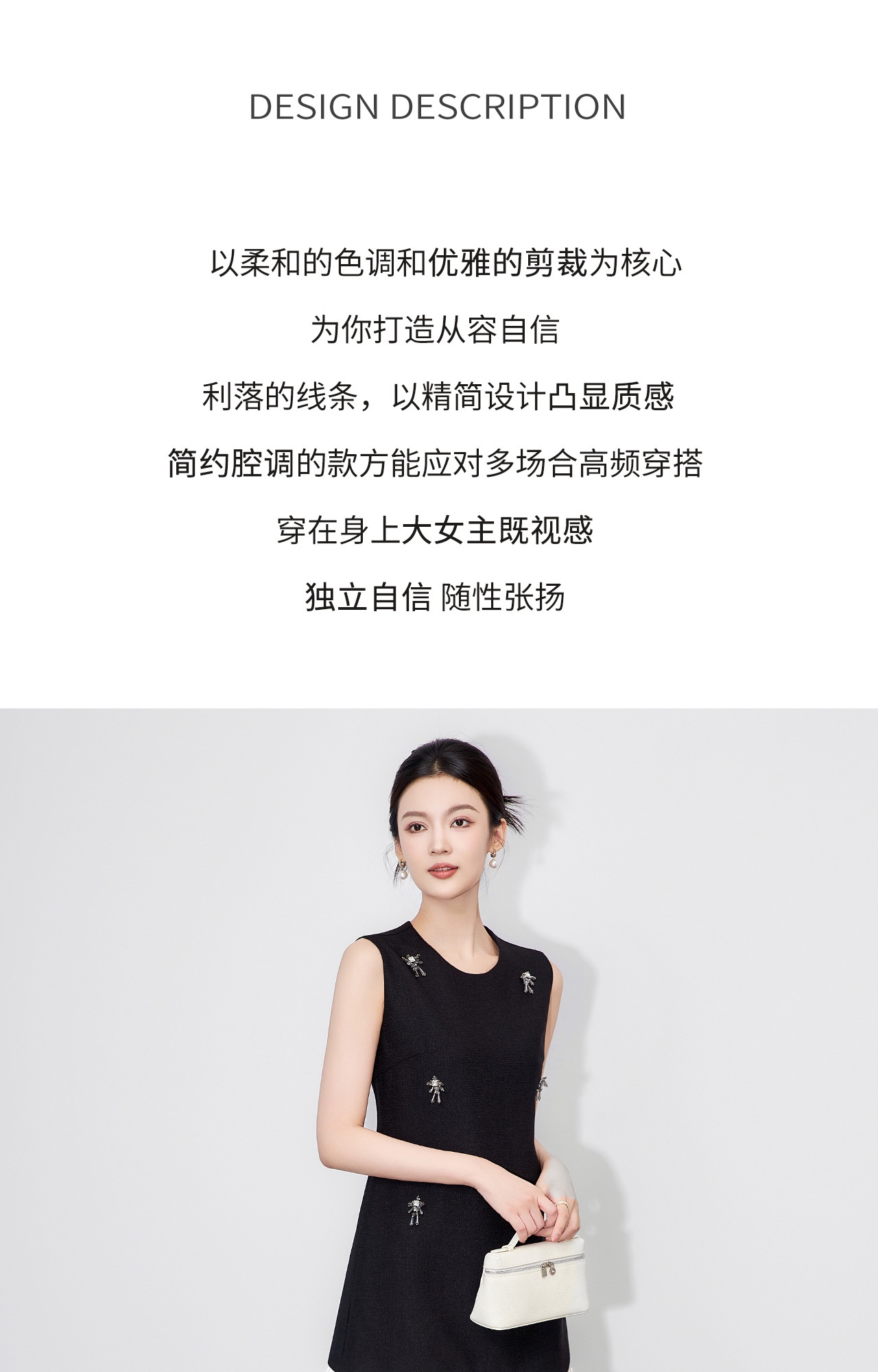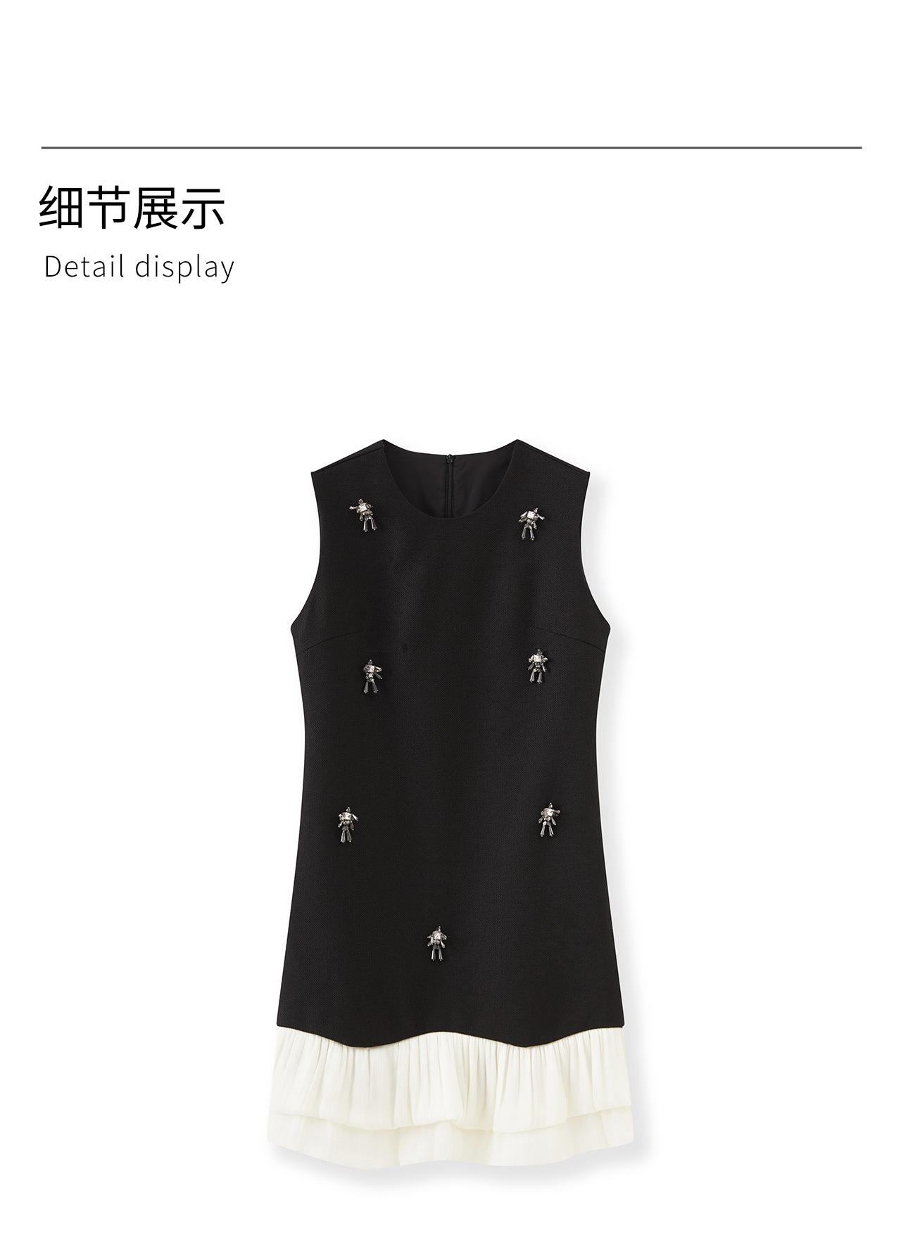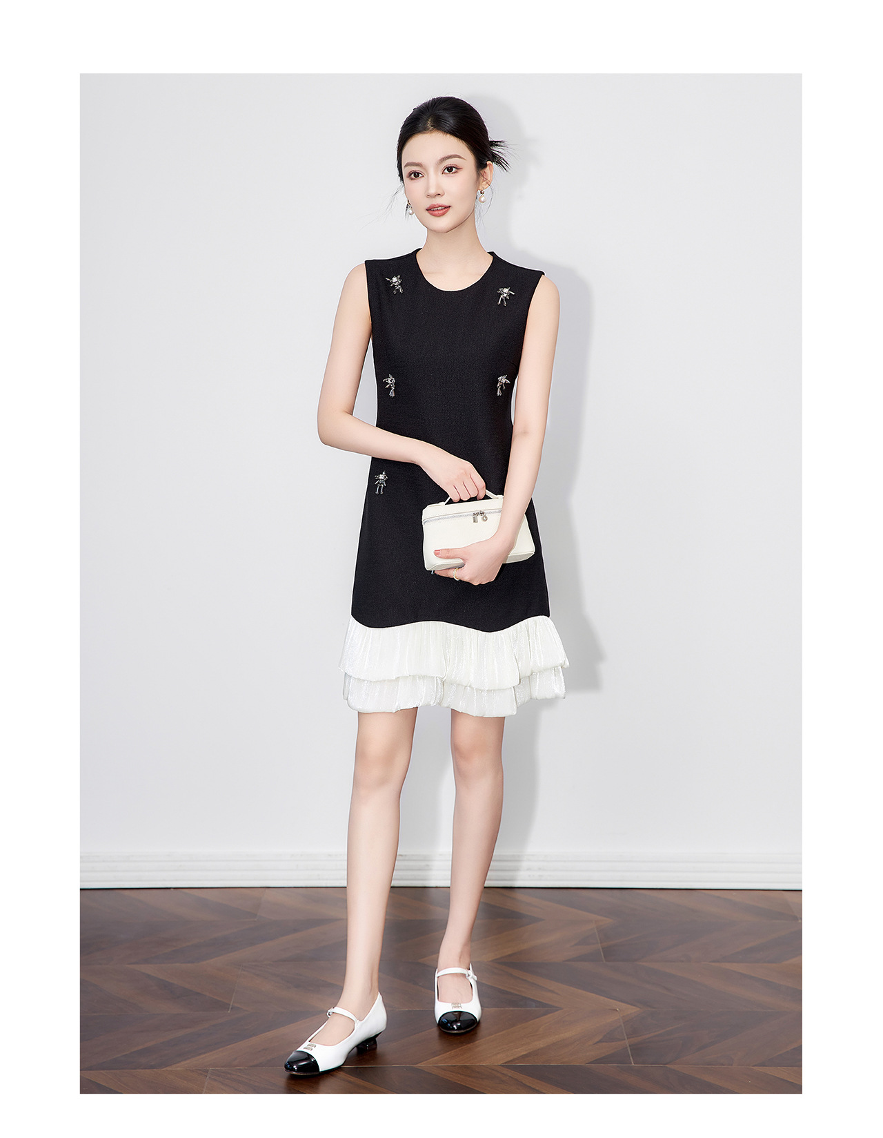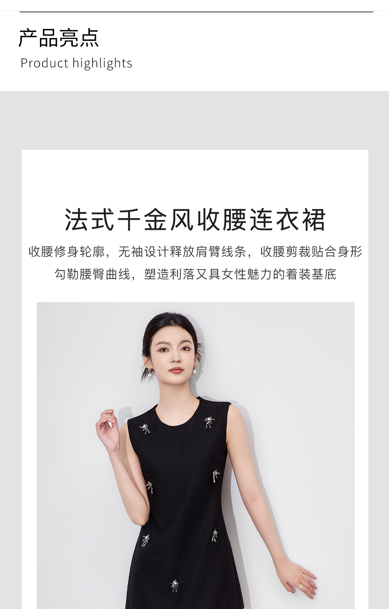 「高货wl」全新升级【铂金会员358/天猫479/差价121】(53223)洛诗琳法式无袖重工钉钻连衣裙2025秋季显瘦花边拼接A字裙