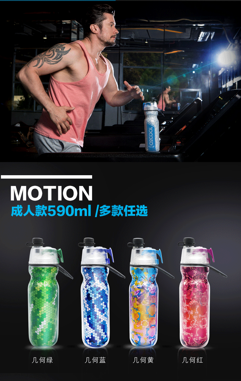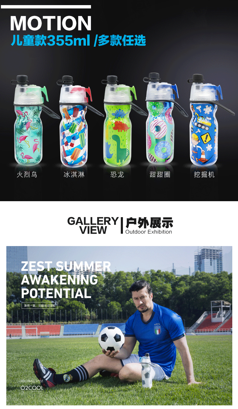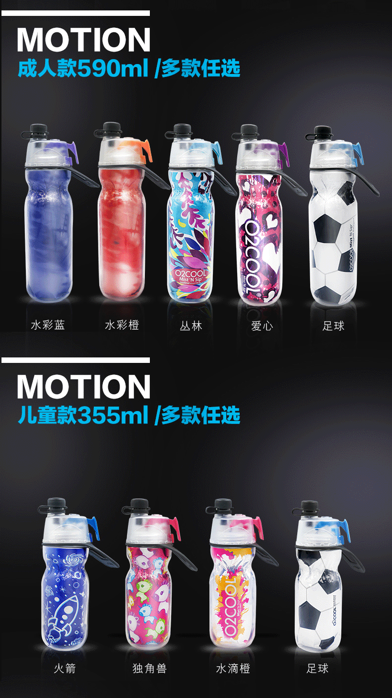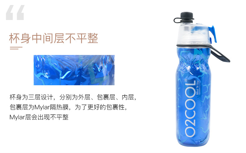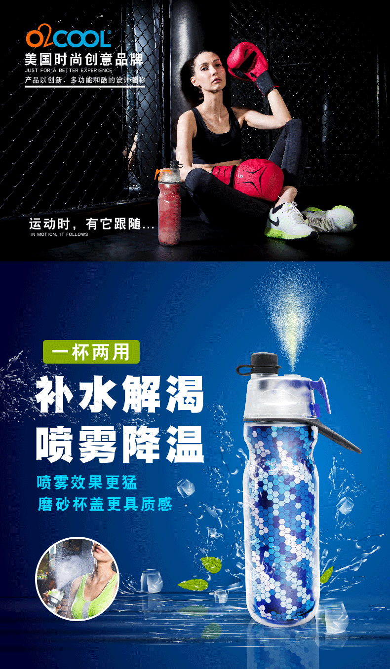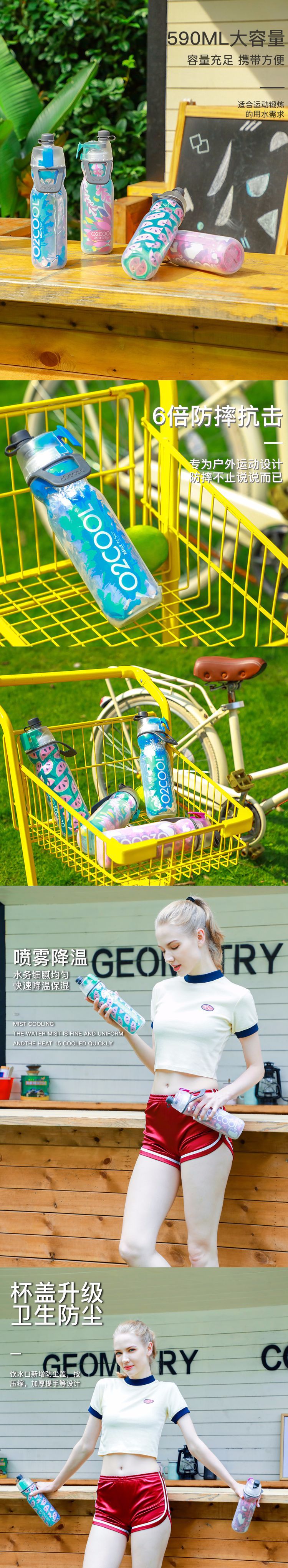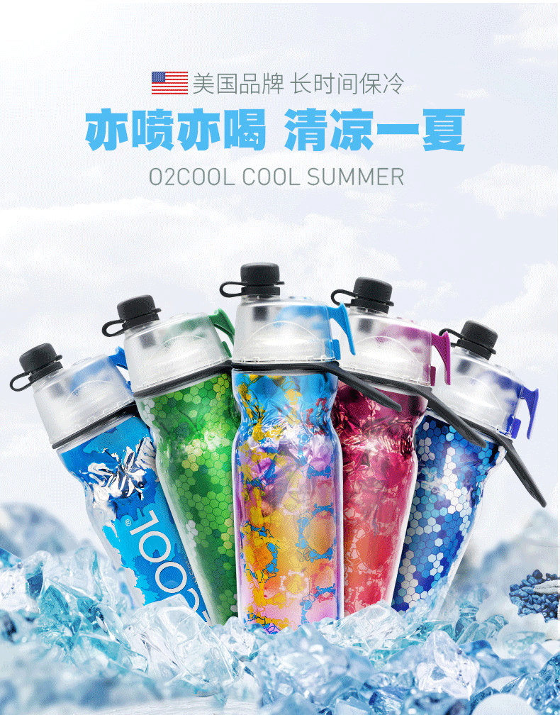 「户外健身保冷喷雾水壶」美国O2COOL运动健身喷雾水杯户外水壶杯降温消暑夏季户外保冷随身