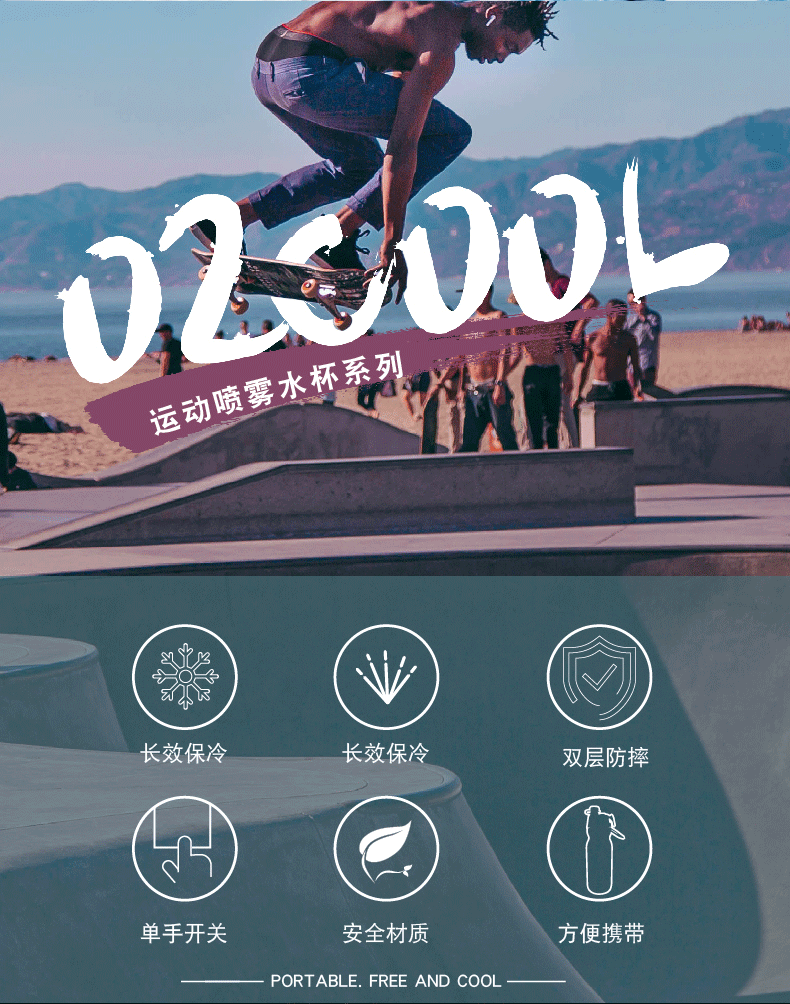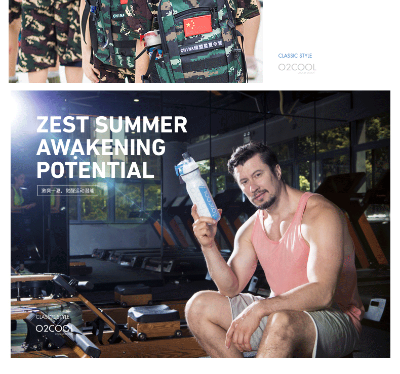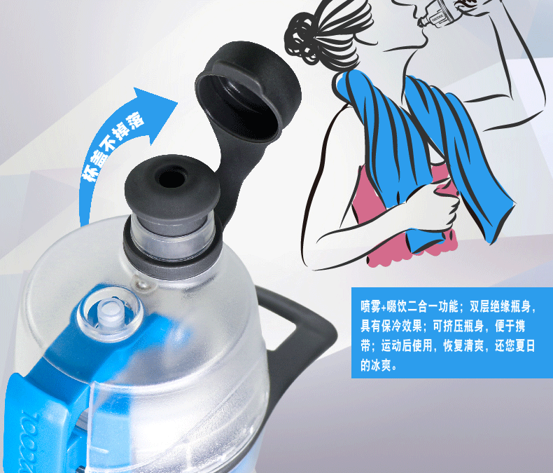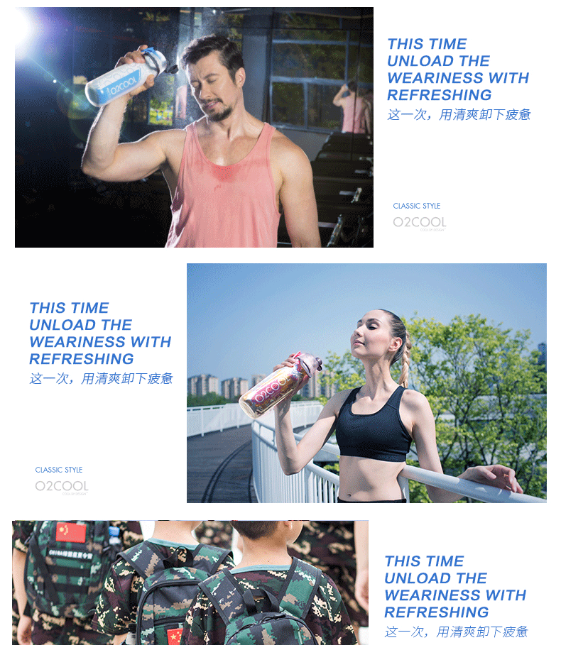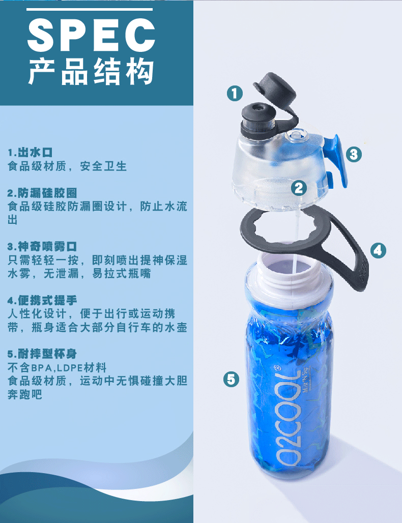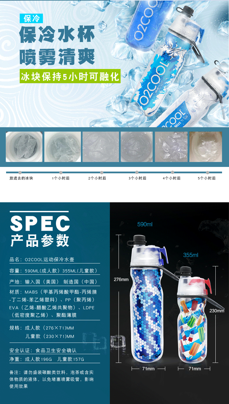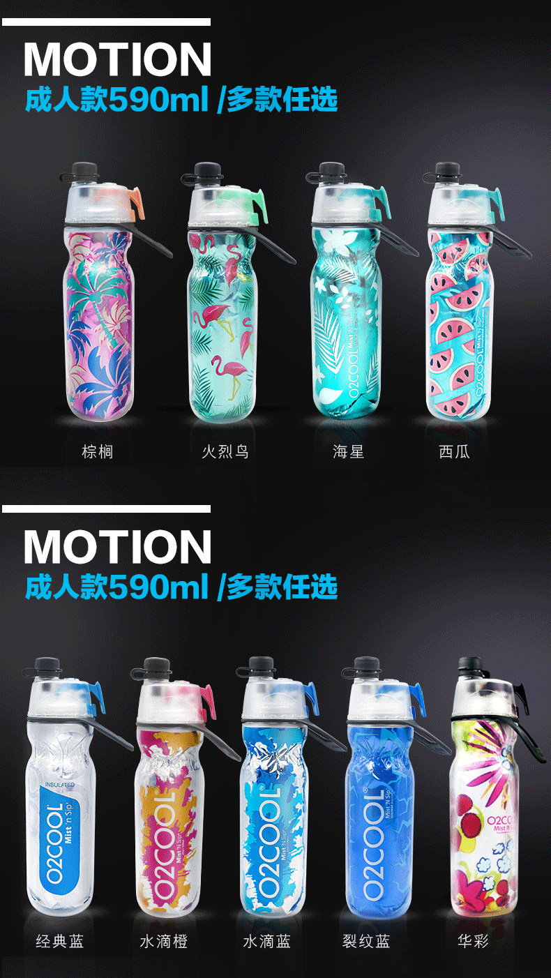 「户外健身保冷喷雾水壶」美国O2COOL运动健身喷雾水杯户外水壶杯降温消暑夏季户外保冷随身