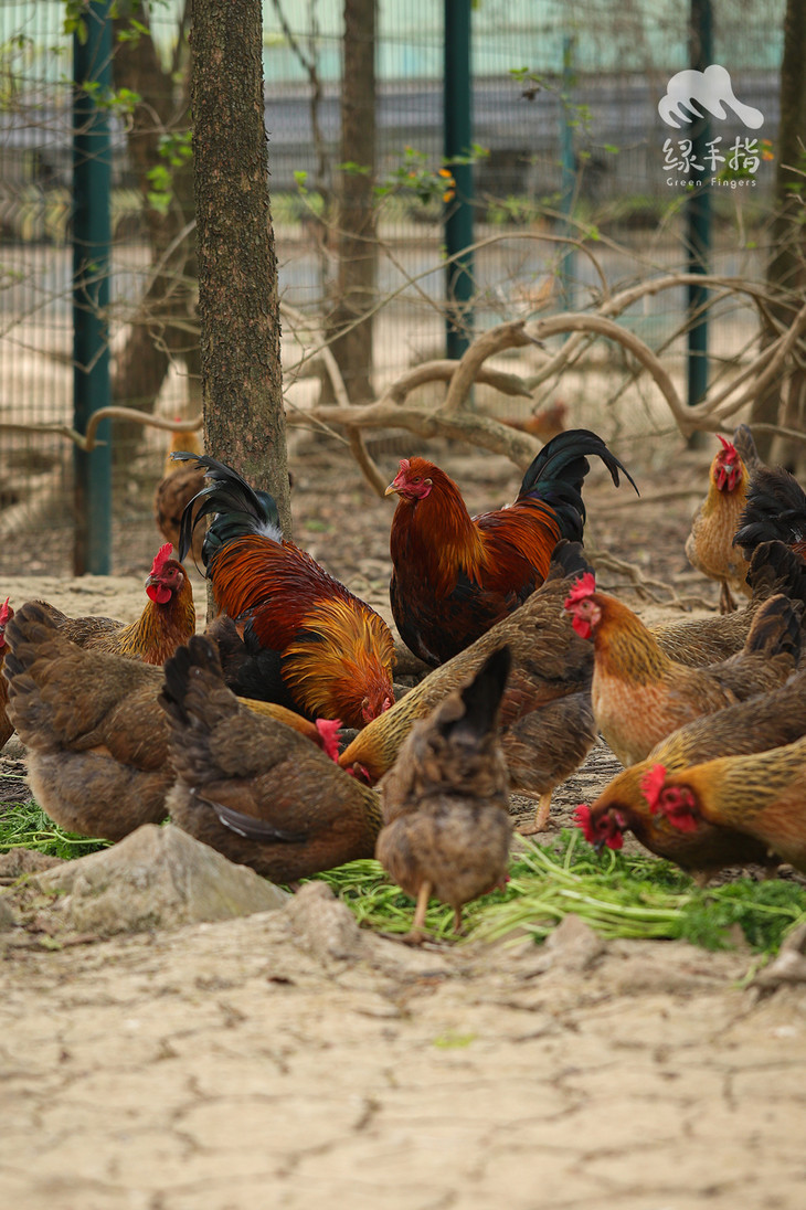 清远鸡们在农场的小树林里面放养,喂养农场的有机蔬菜下脚料,补饲非转基因的玉米、稻谷、花生麸、麦麸、贝壳粉,不使用商品饲料。使用鱼腥草,板蓝根,白头翁,黄连,黄柏,鸡屎藤这些植物来防治疫病,不使用任何的抗生素、激素。生态养殖的鸡给家人和孩子们吃都是非常放心的。