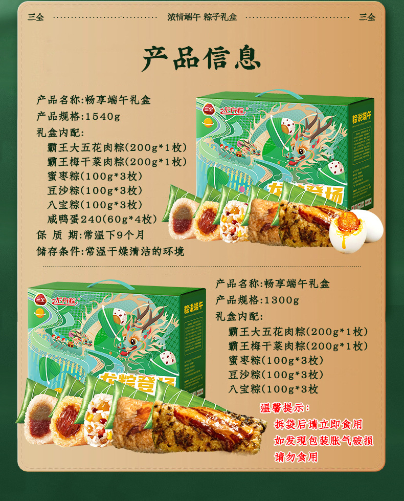 【畅享端午,粽子礼盒~】三全粽子端午礼盒装1300g 端午粽子礼盒装 嘉兴粽子礼盒款粽子 团购好礼 员工福利-QQ