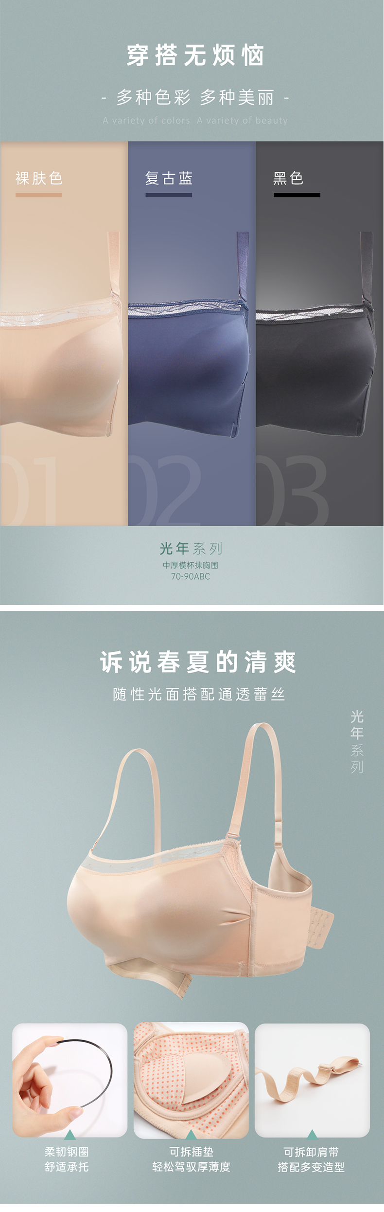 贝佳人文胸新款“心悦”深V全罩背心拼棉围-BW982221