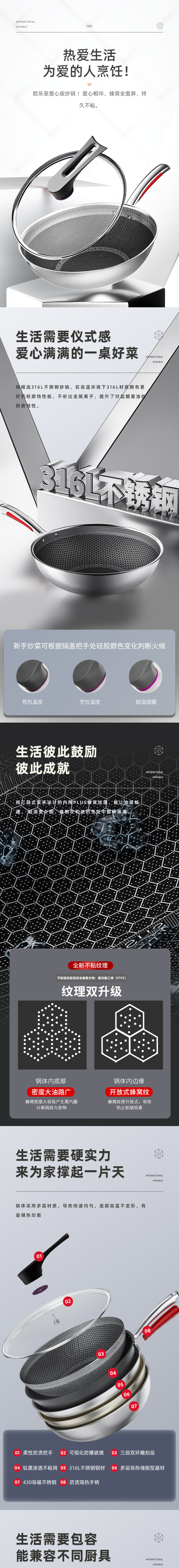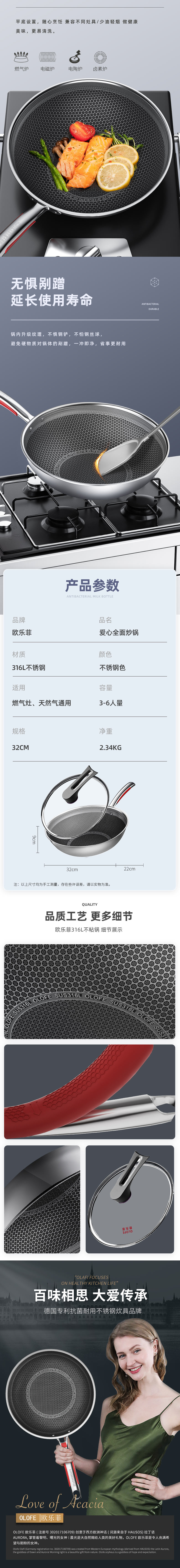 欧乐菲米力士蜂巢316不锈钢炒锅全面屏爱心版32cm