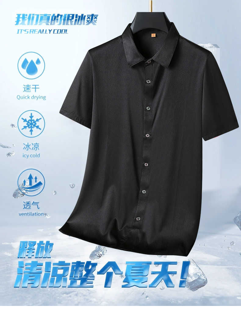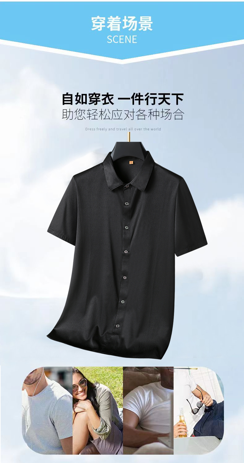 【顺丰】桑蚕丝【新款DWP】大依优型大码高品质短袖衬衫翻领加肥加大男士大号弹力透气舒适