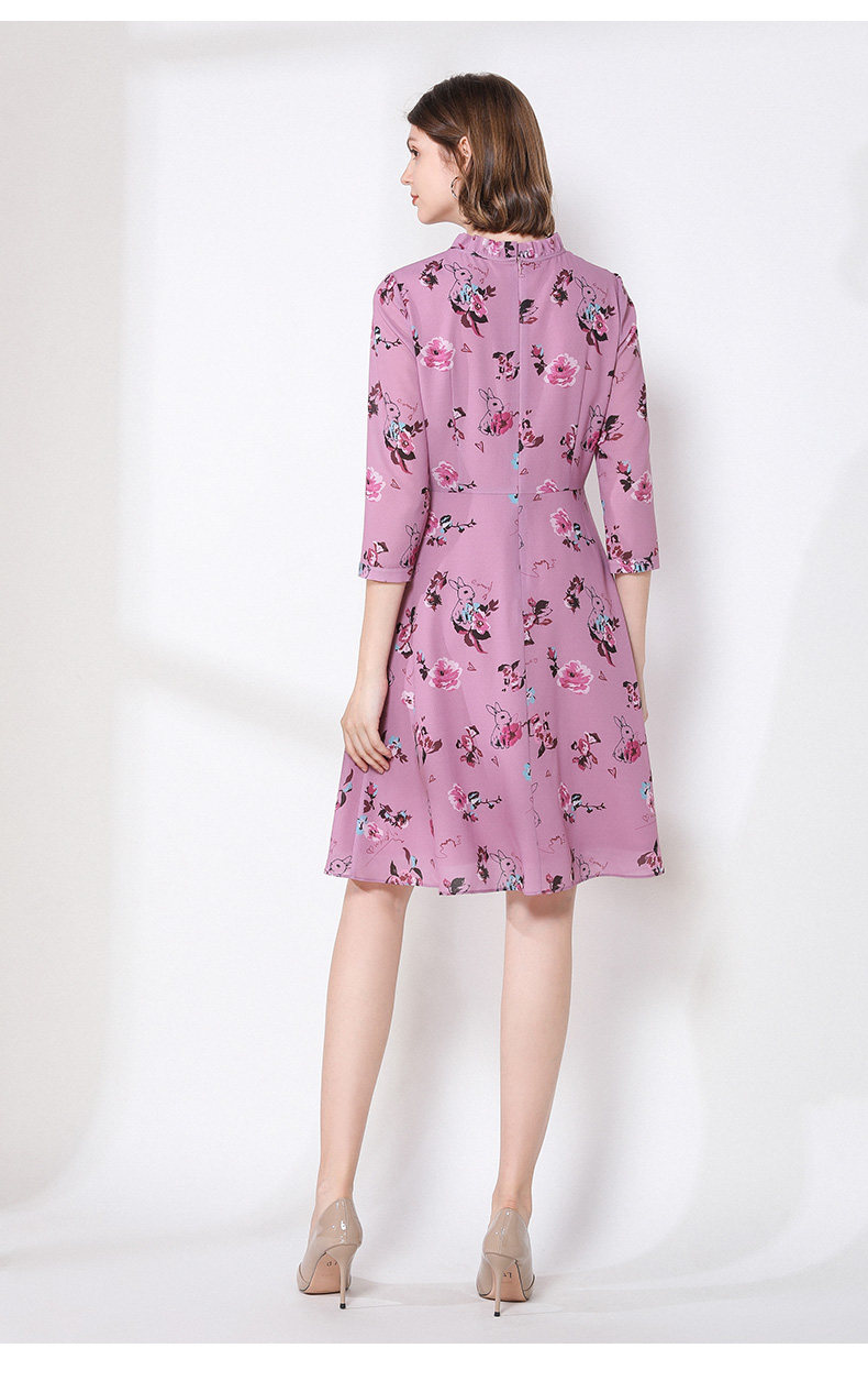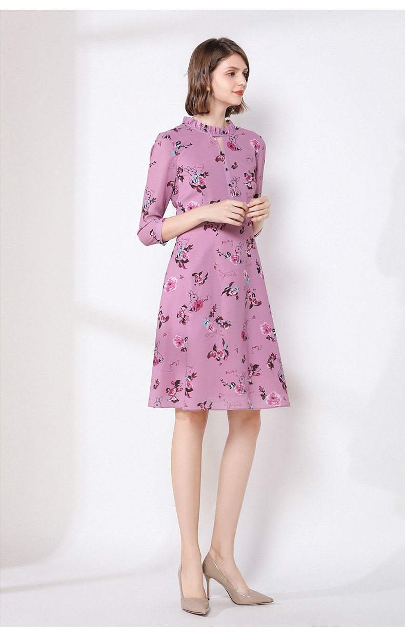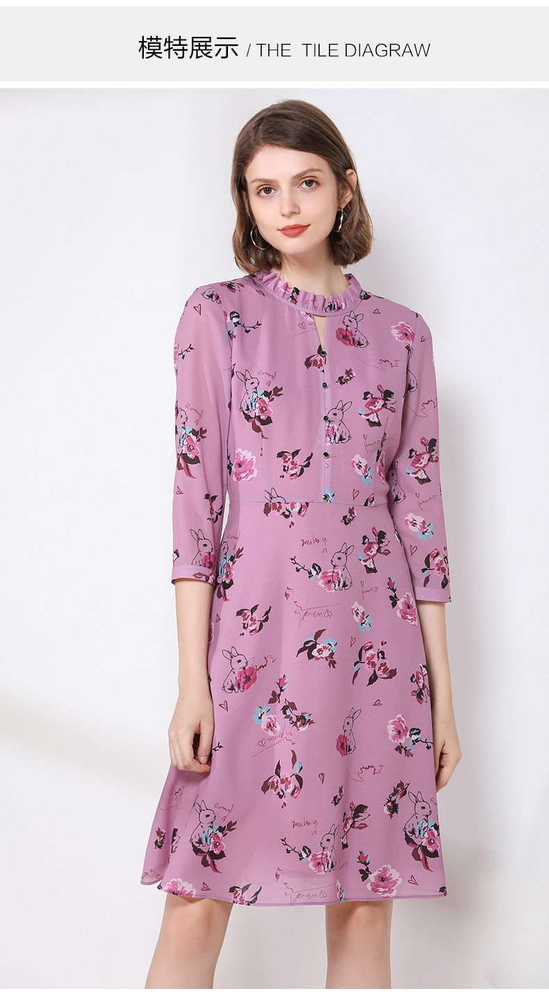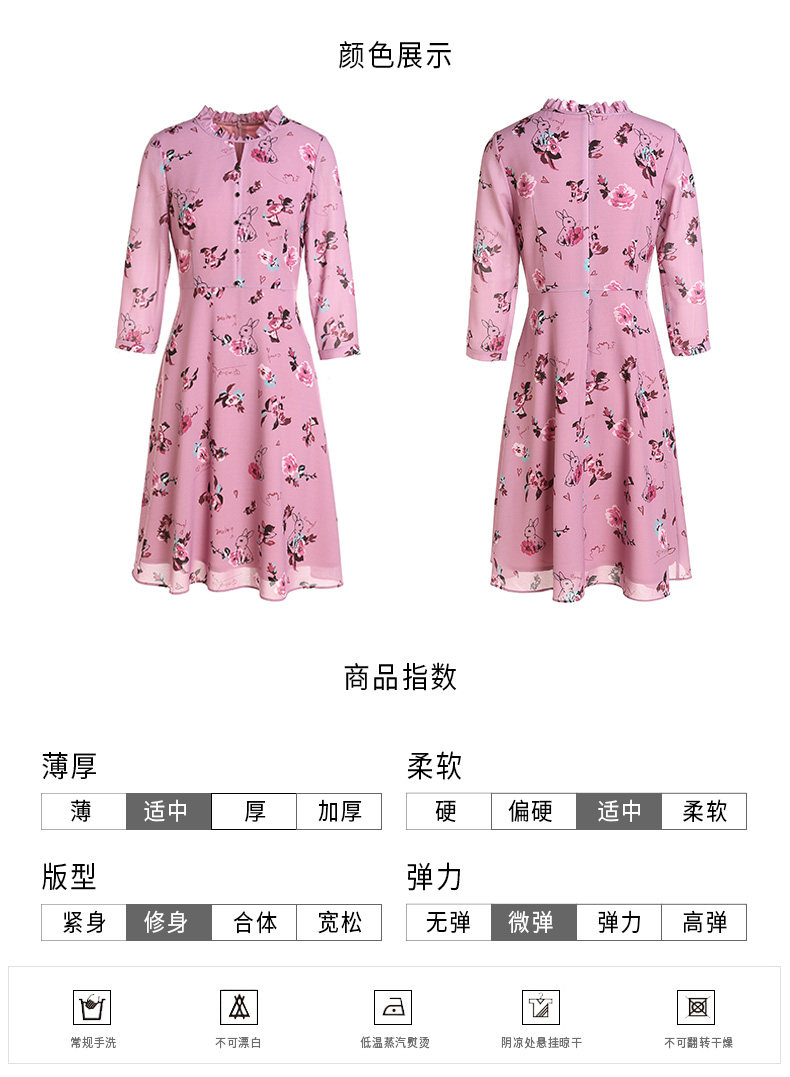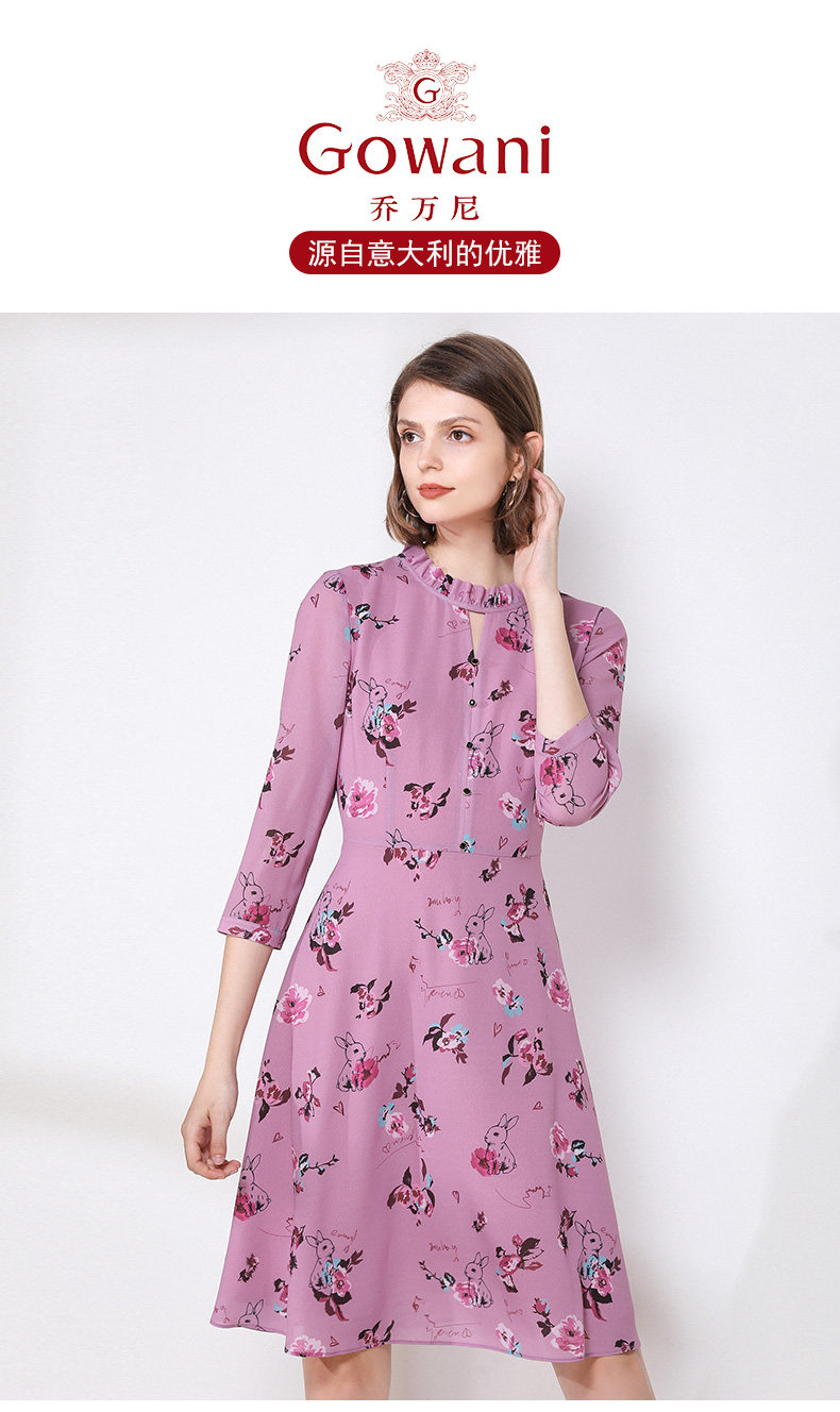 乔万尼秋装修身气质显瘦印花七分袖欧货连衣裙女中长款EN3E418