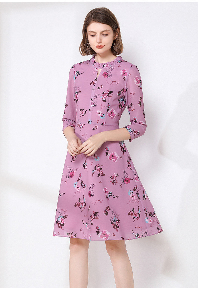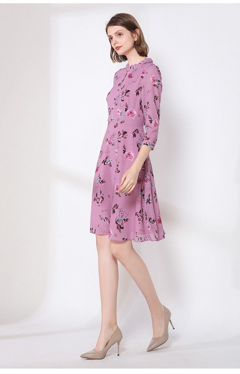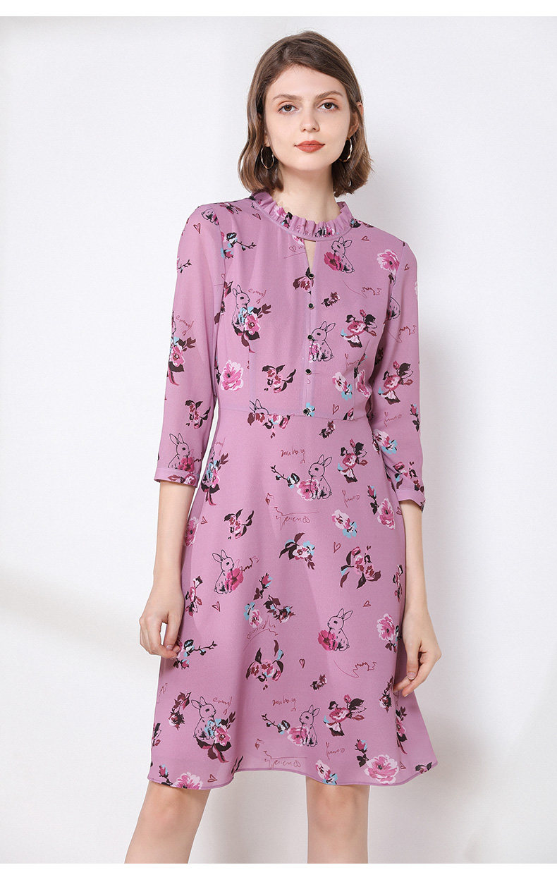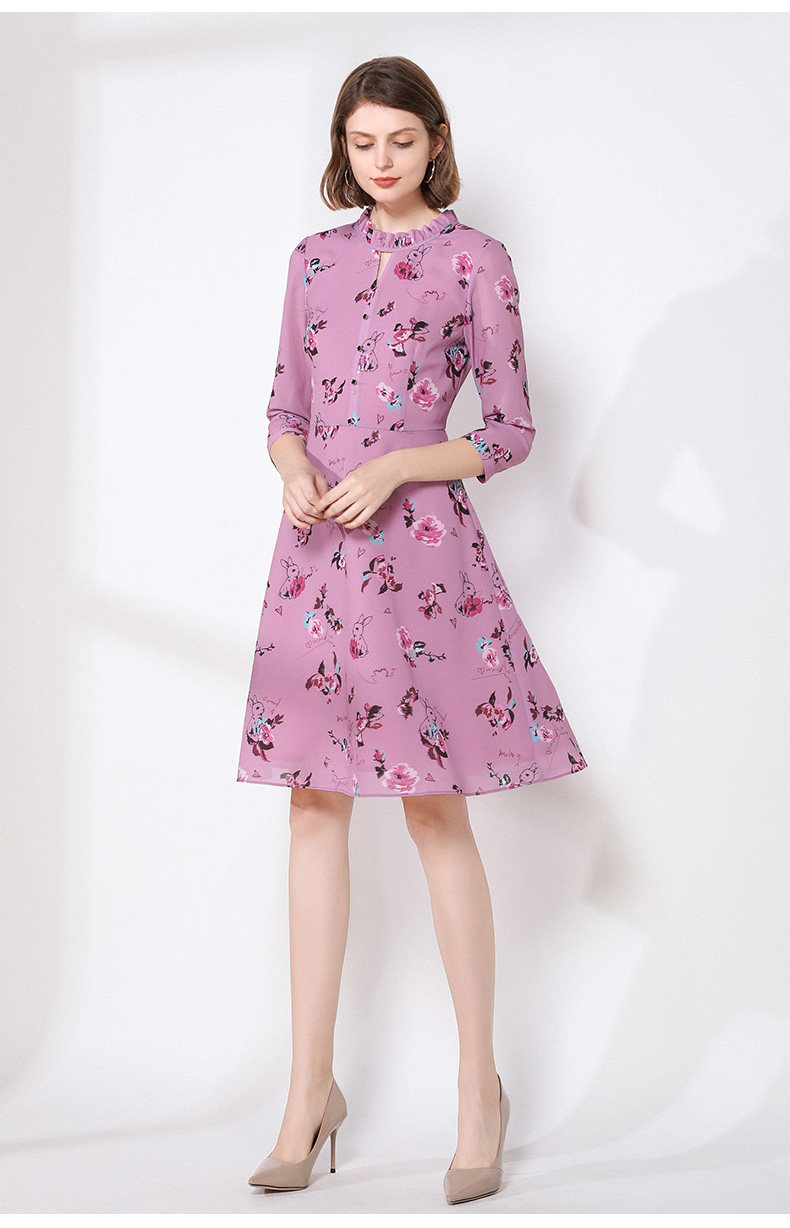 乔万尼秋装修身气质显瘦印花七分袖欧货连衣裙女中长款EN3E418
