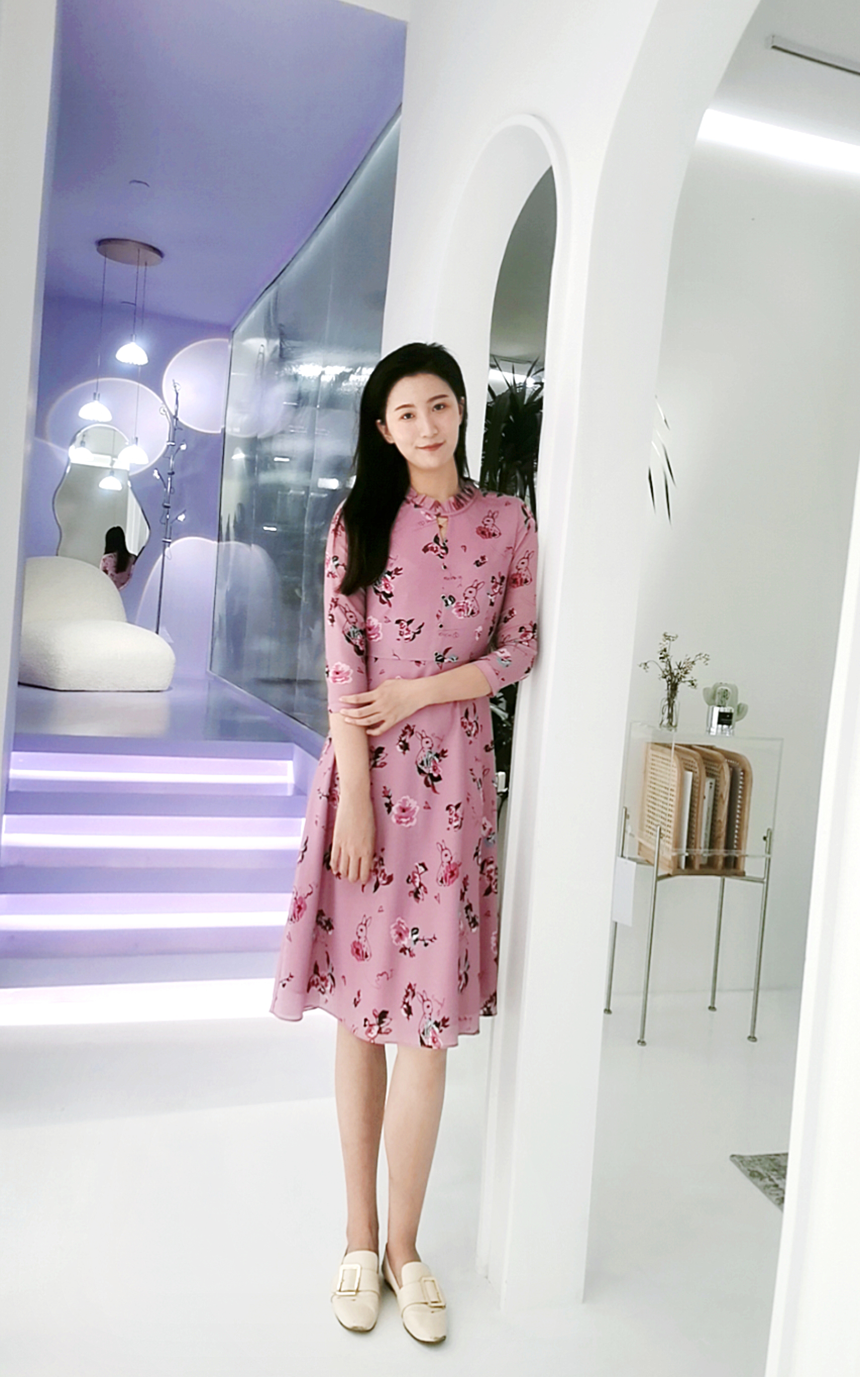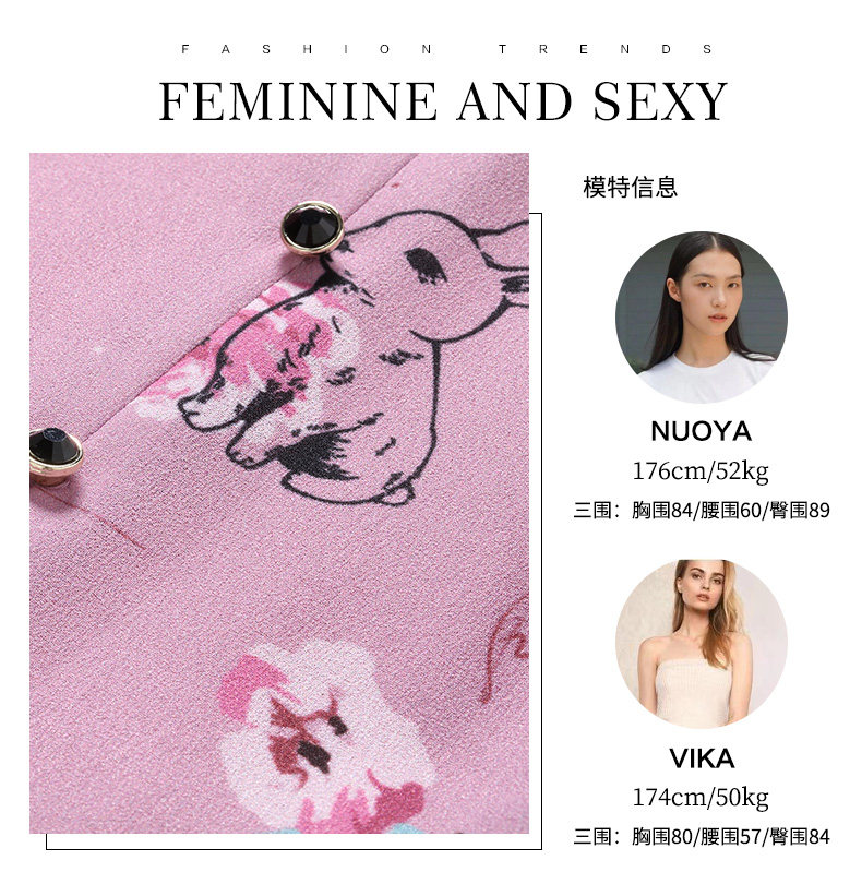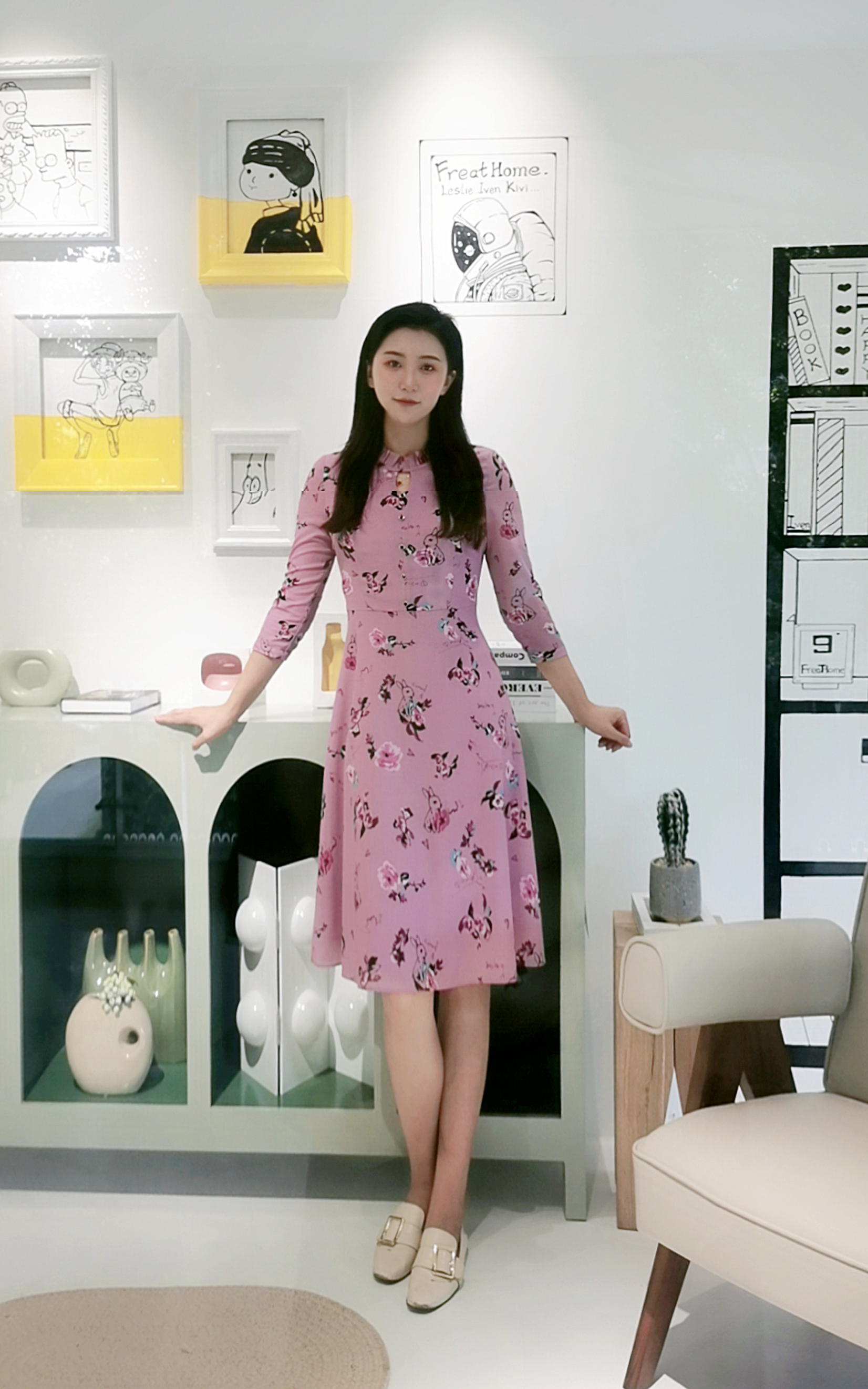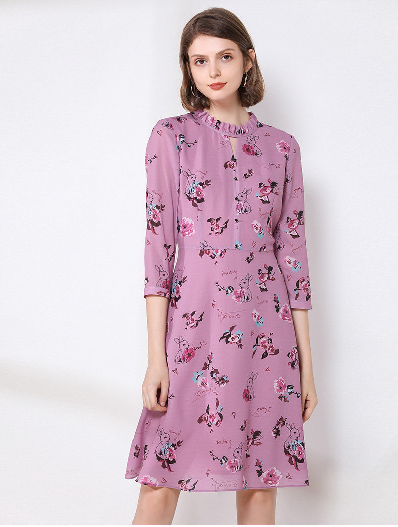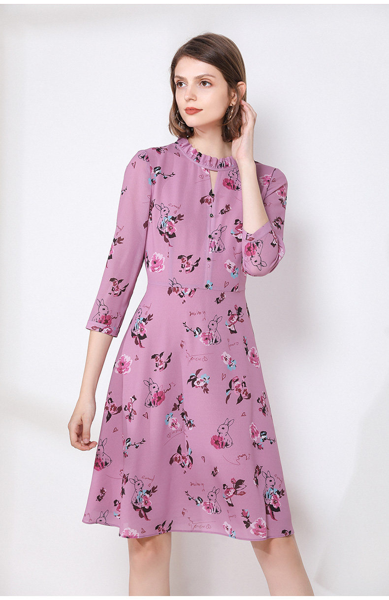 乔万尼秋装修身气质显瘦印花七分袖欧货连衣裙女中长款EN3E418