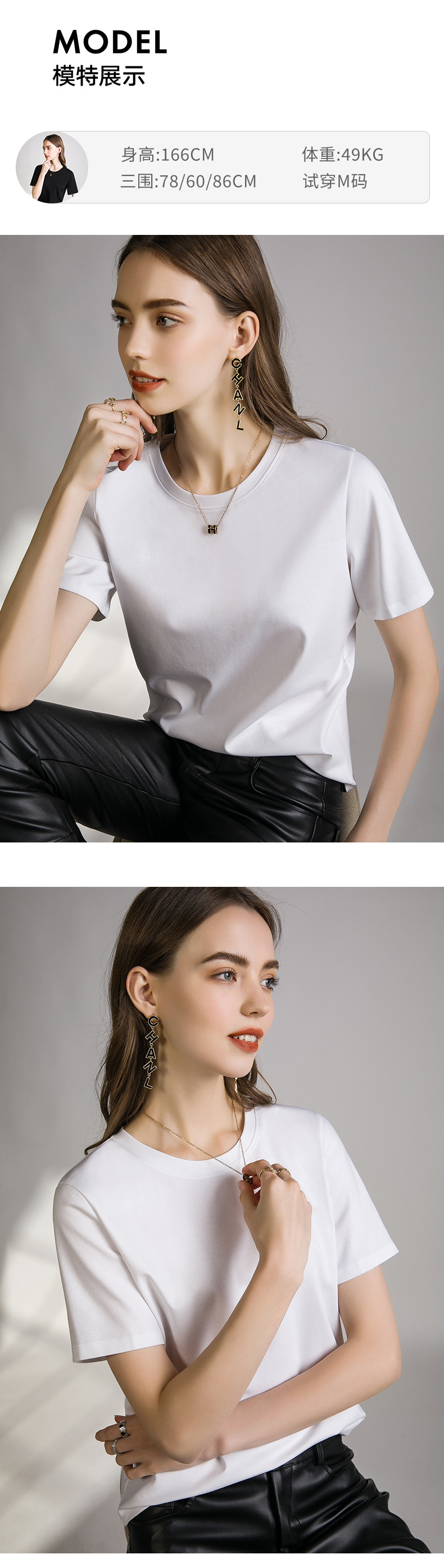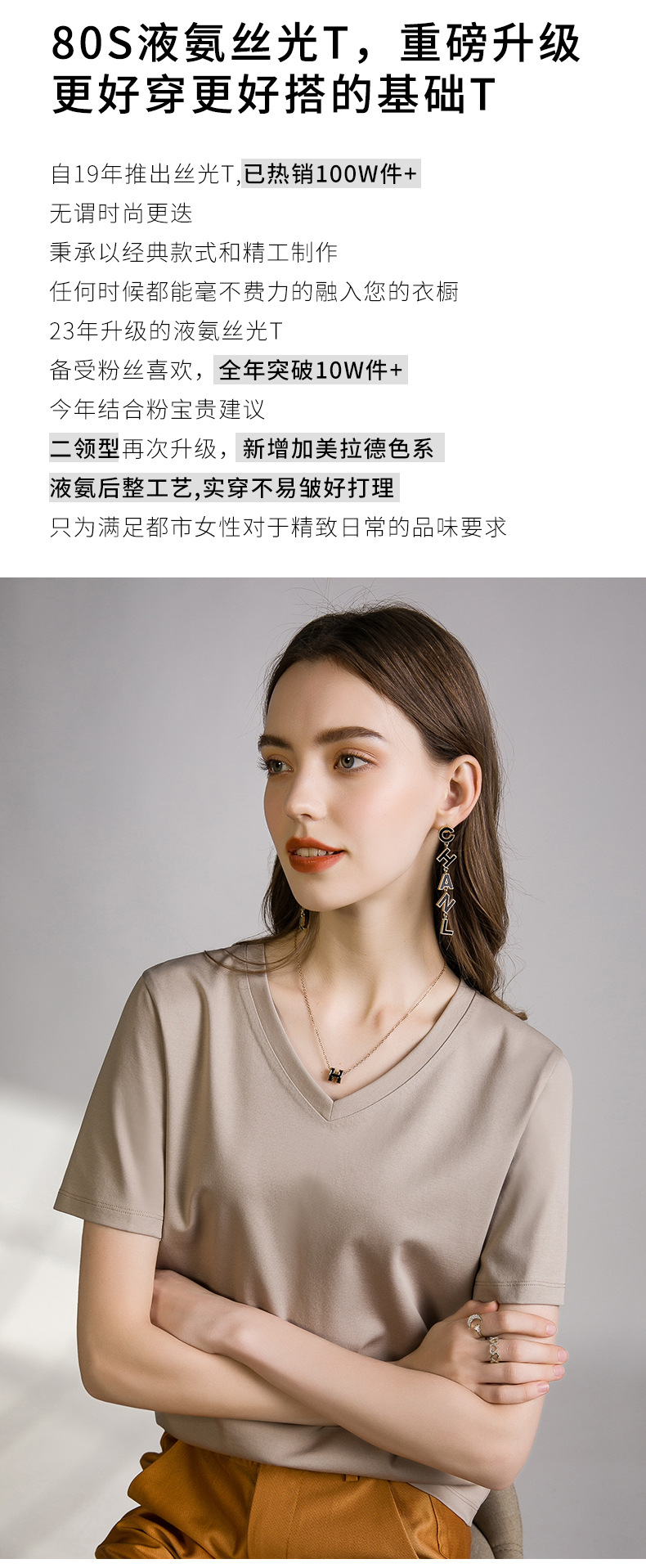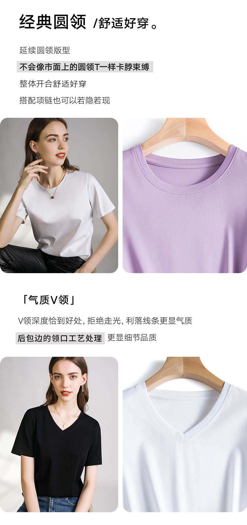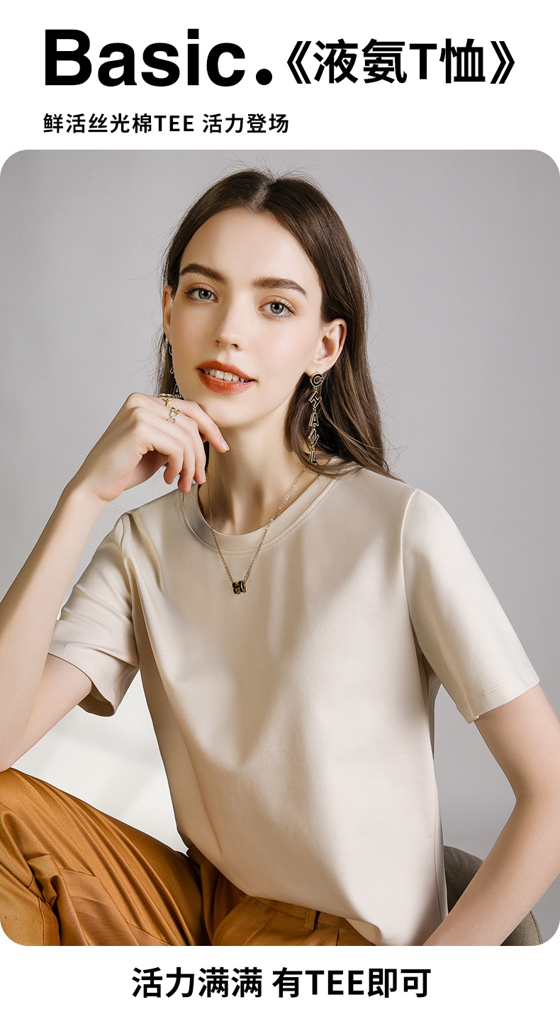 丁摩 口碑B入80s液氨白色短袖正肩t恤女夏季丝光棉V圆领打底衫体恤5ZF-A01