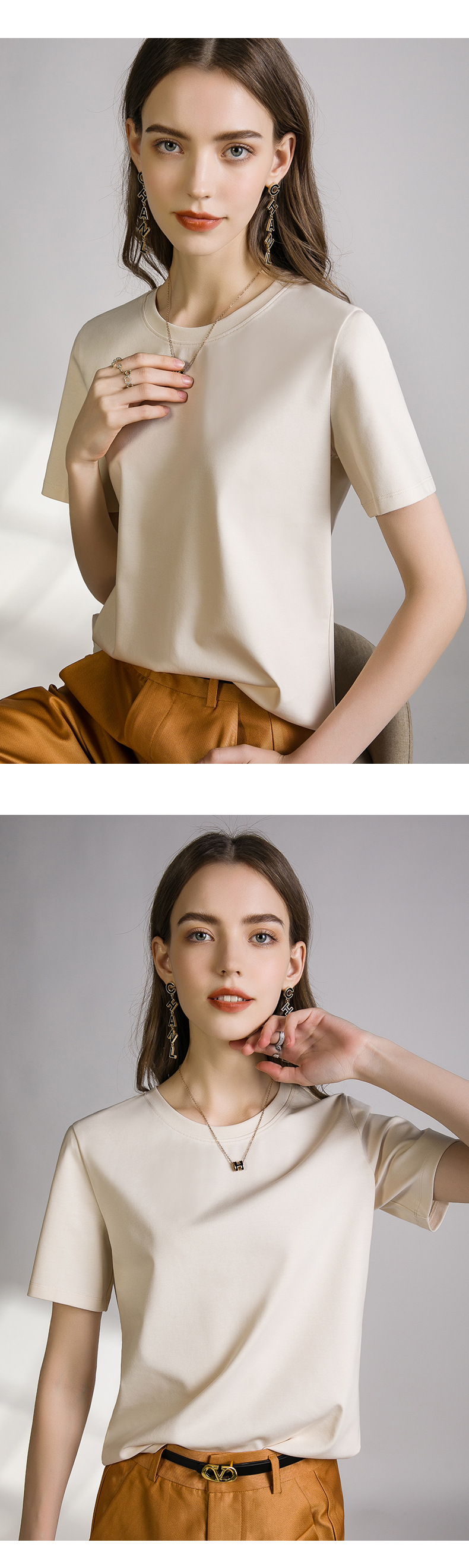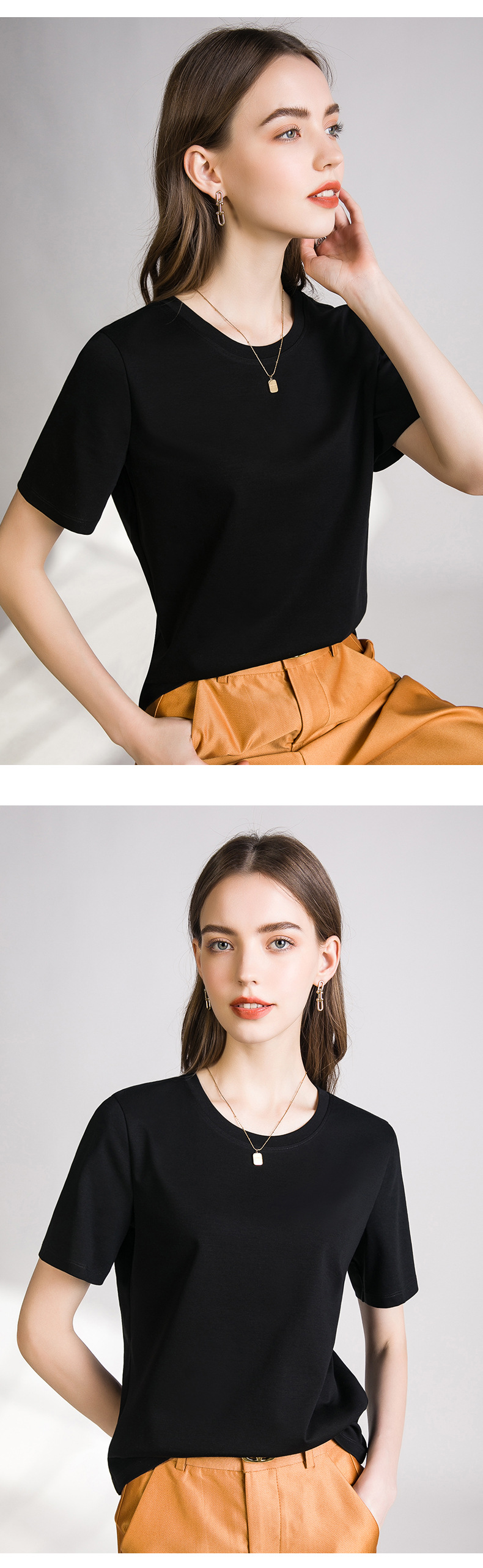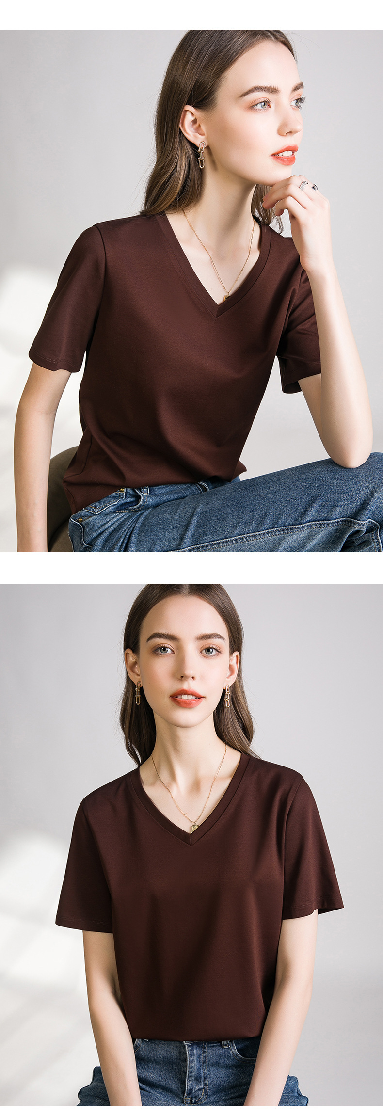 丁摩 口碑B入80s液氨白色短袖正肩t恤女夏季丝光棉V圆领打底衫体恤5ZF-A01