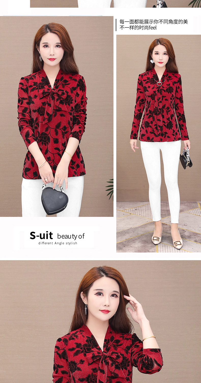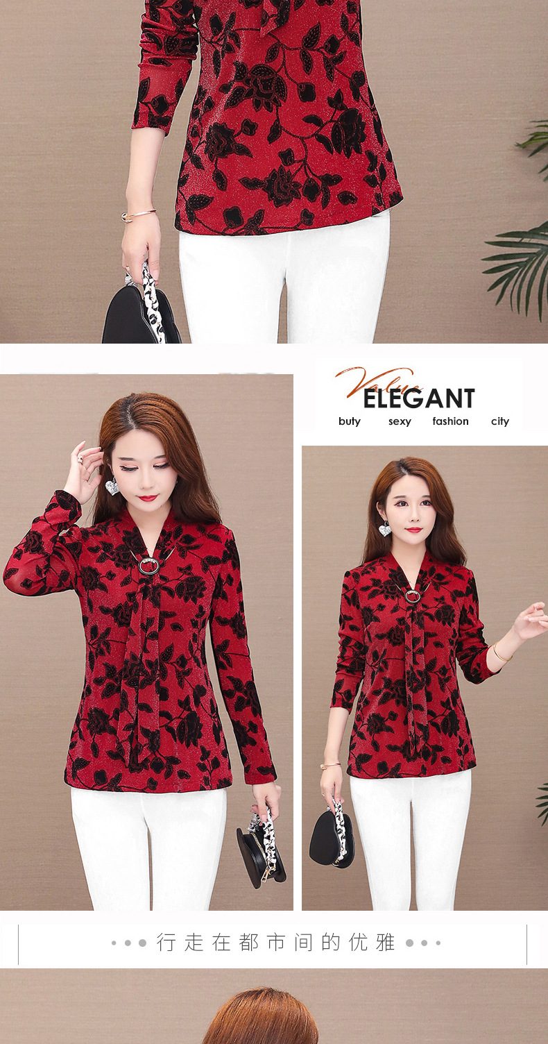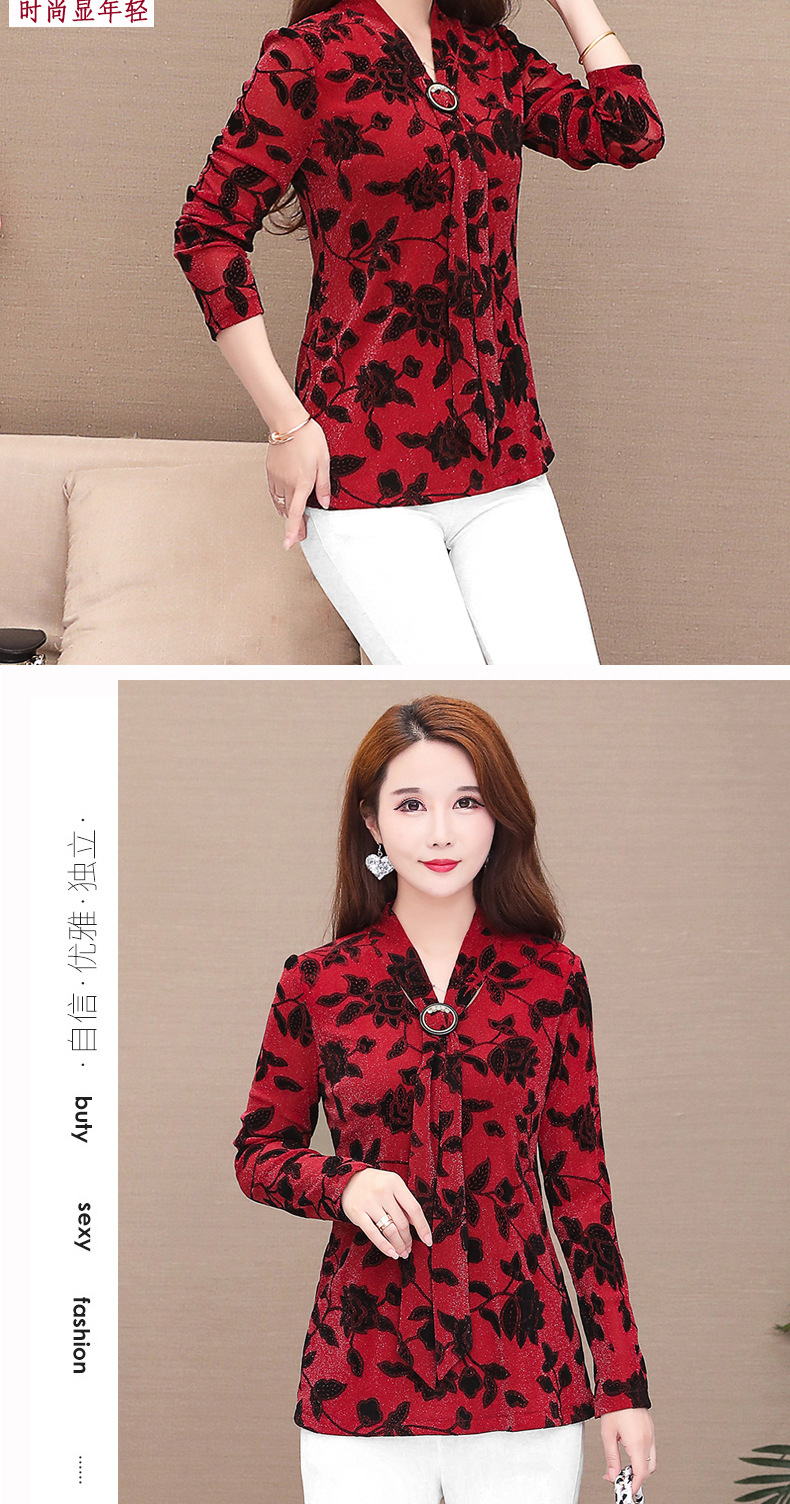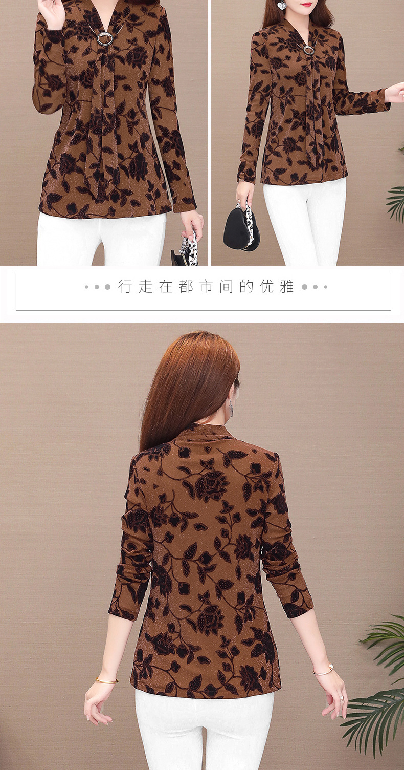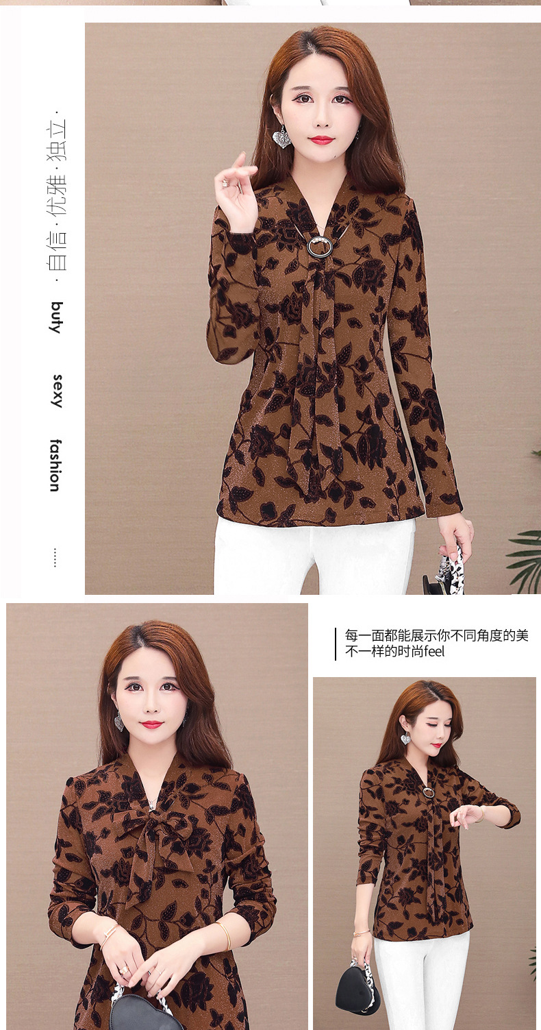 MQ-RL9959新款遮肚子时尚洋气长袖宽松豹纹雪纺衫