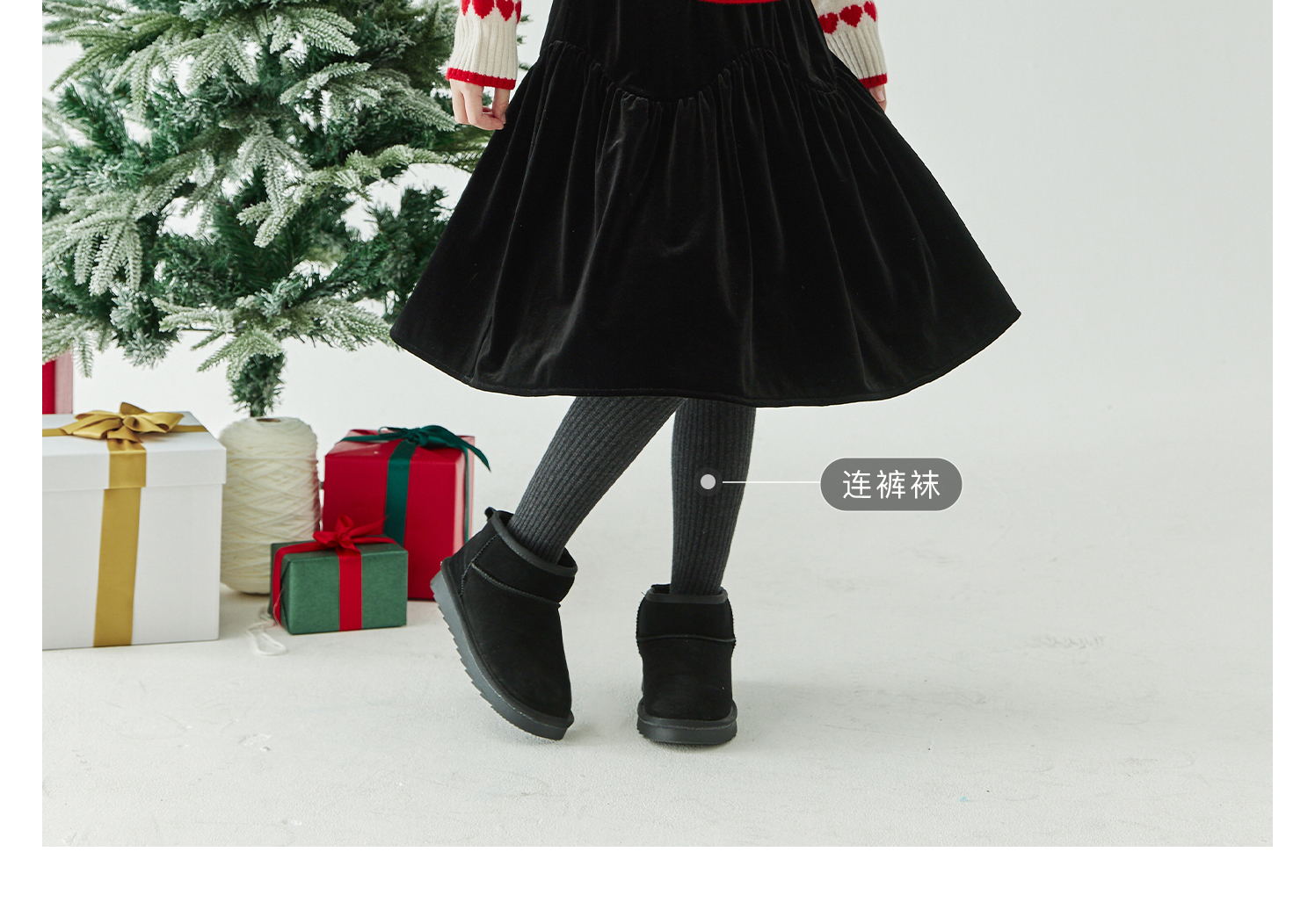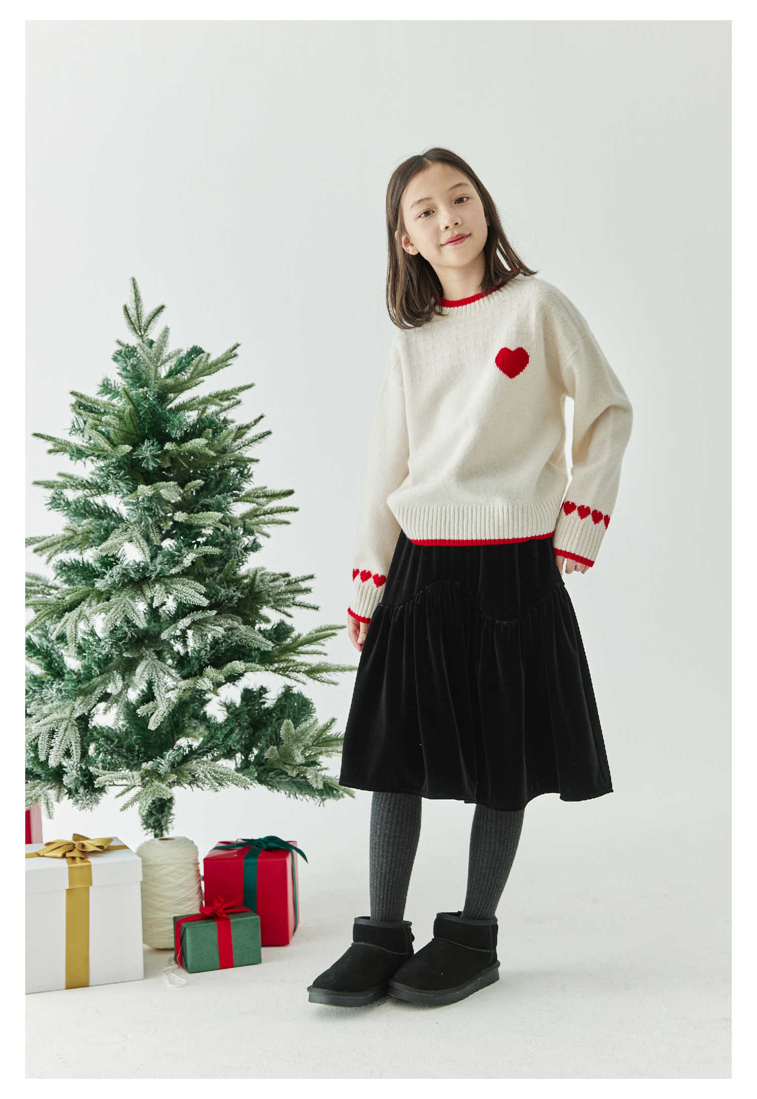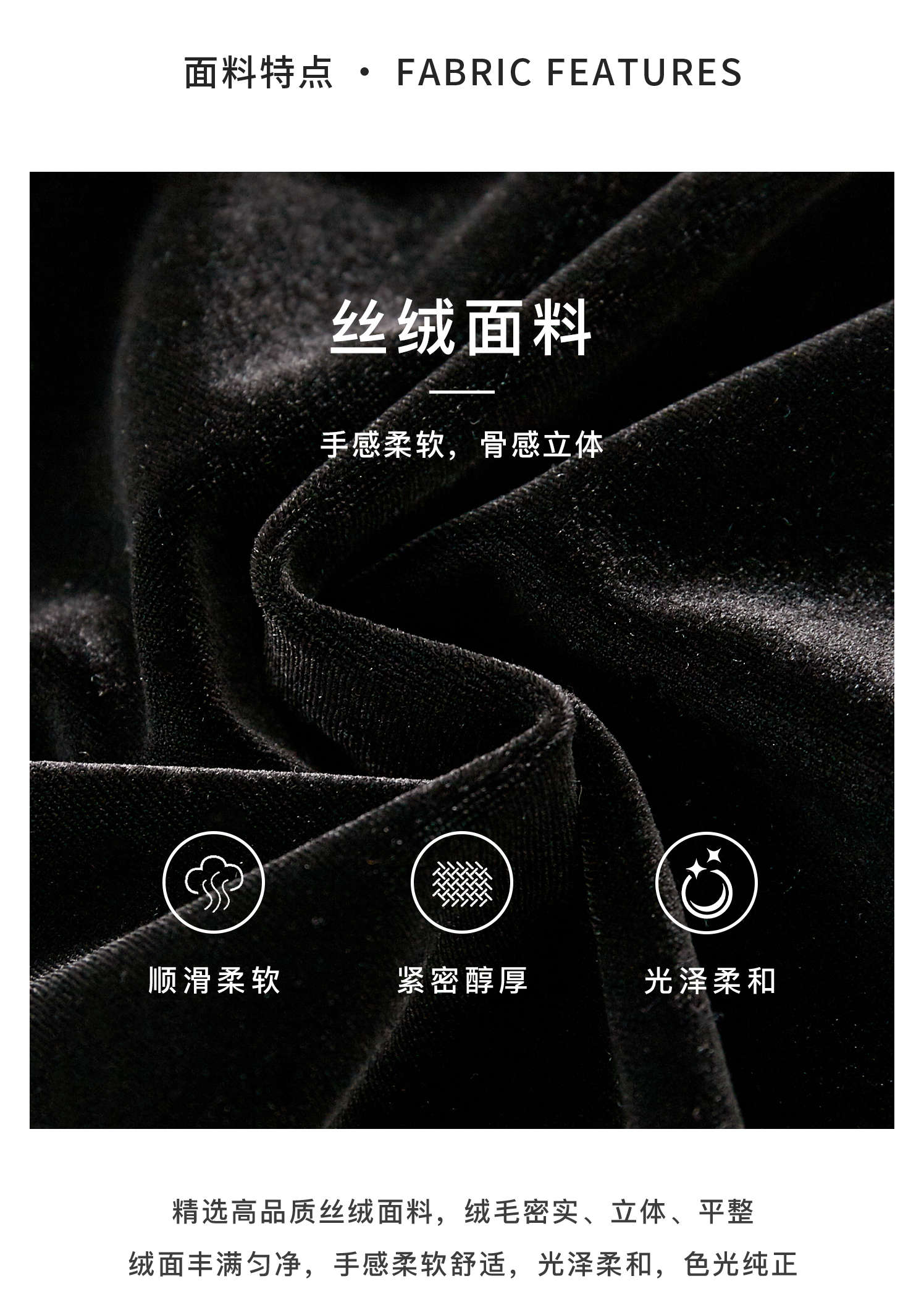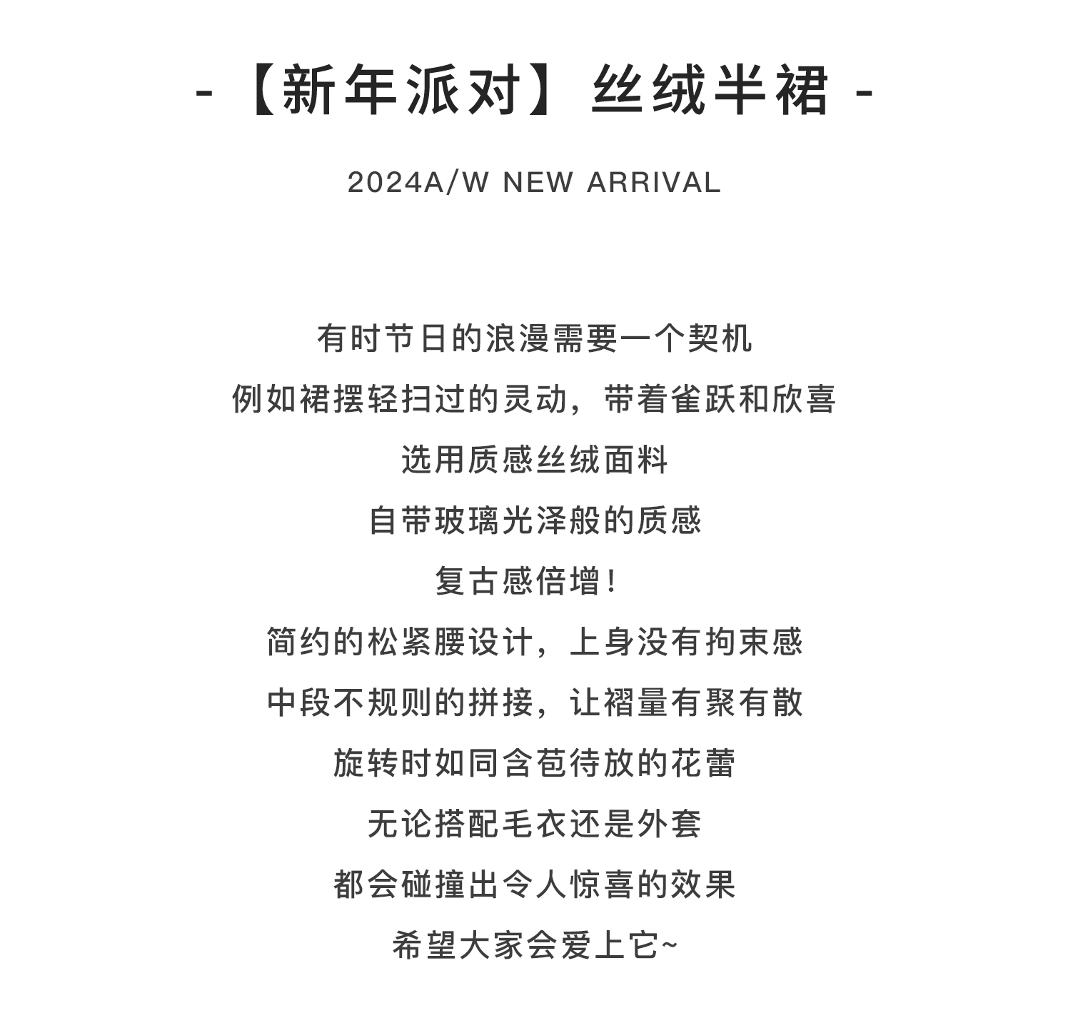 棵初2024年冬季新款女童丝绒半裙黑色复古简约不规则压褶半身裙