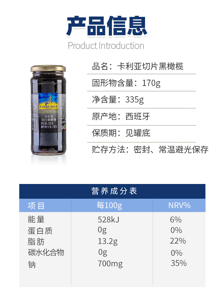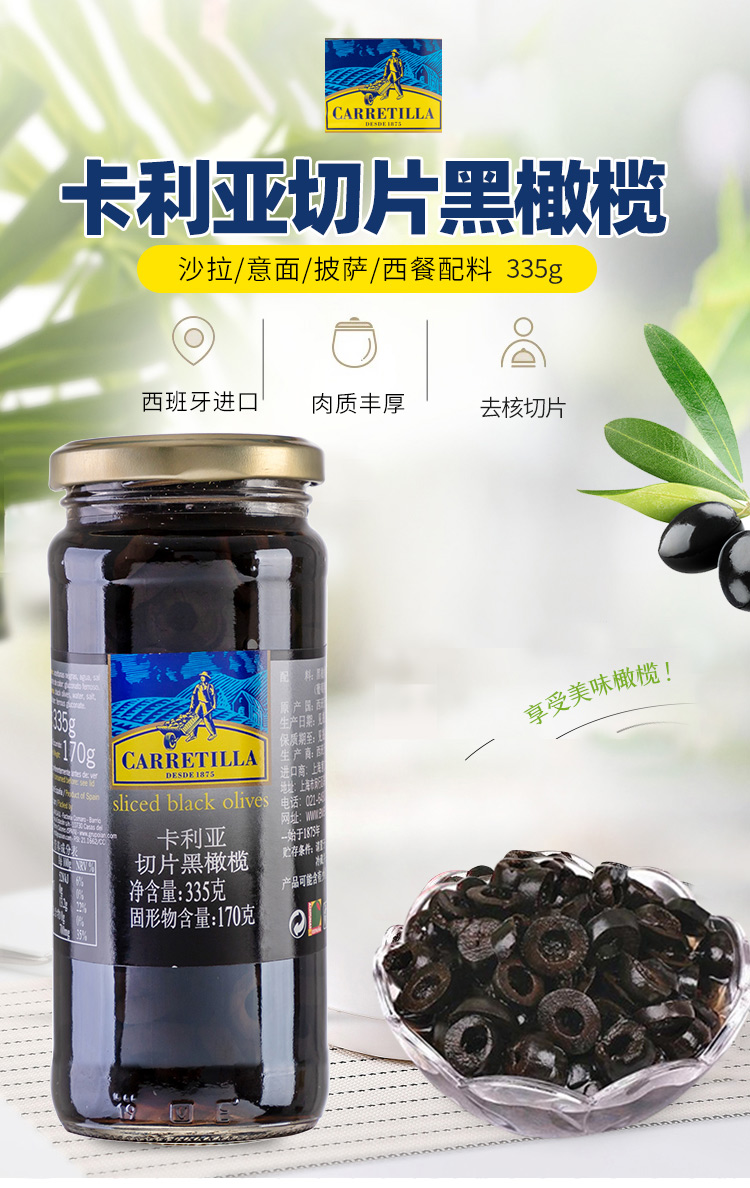 卡利亚切片黑橄榄335g 西班牙进口