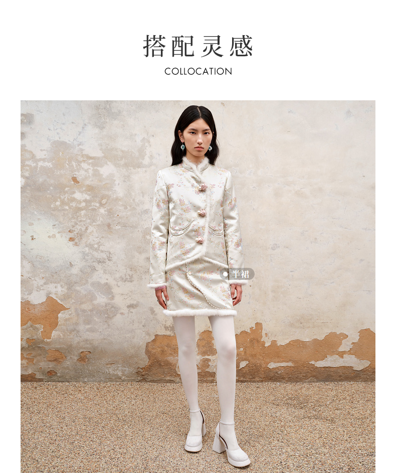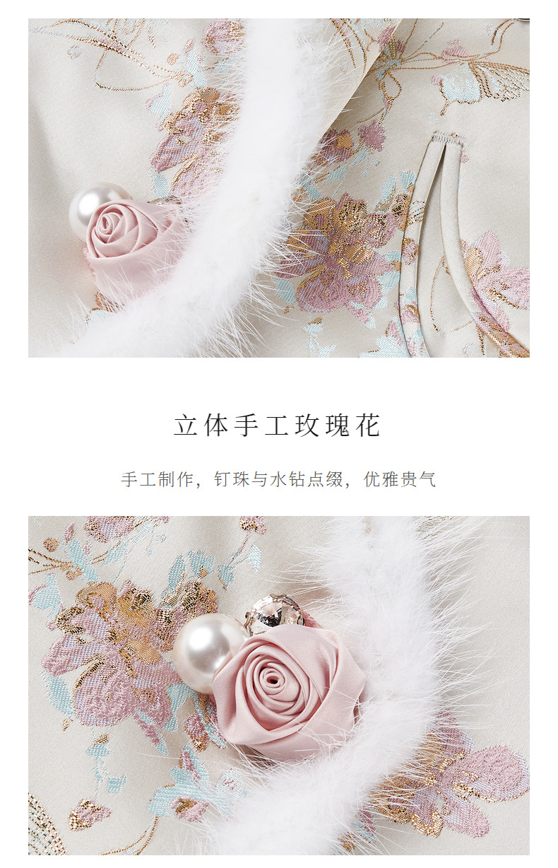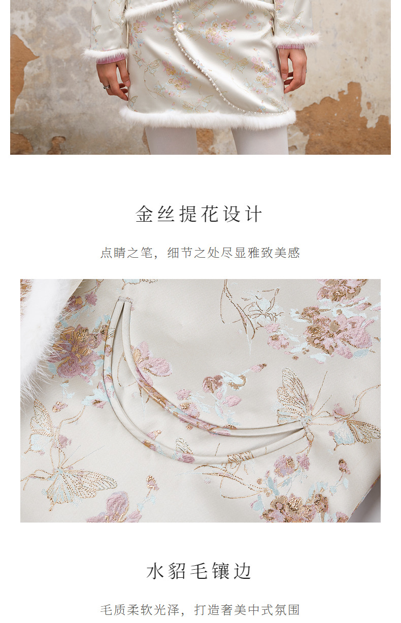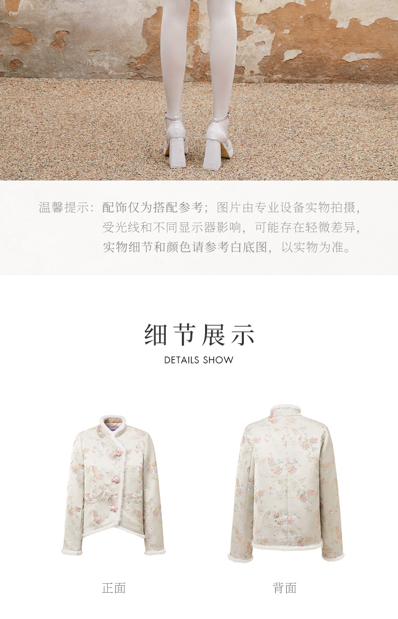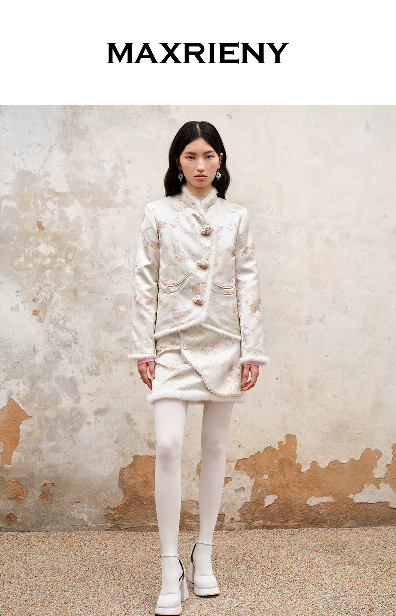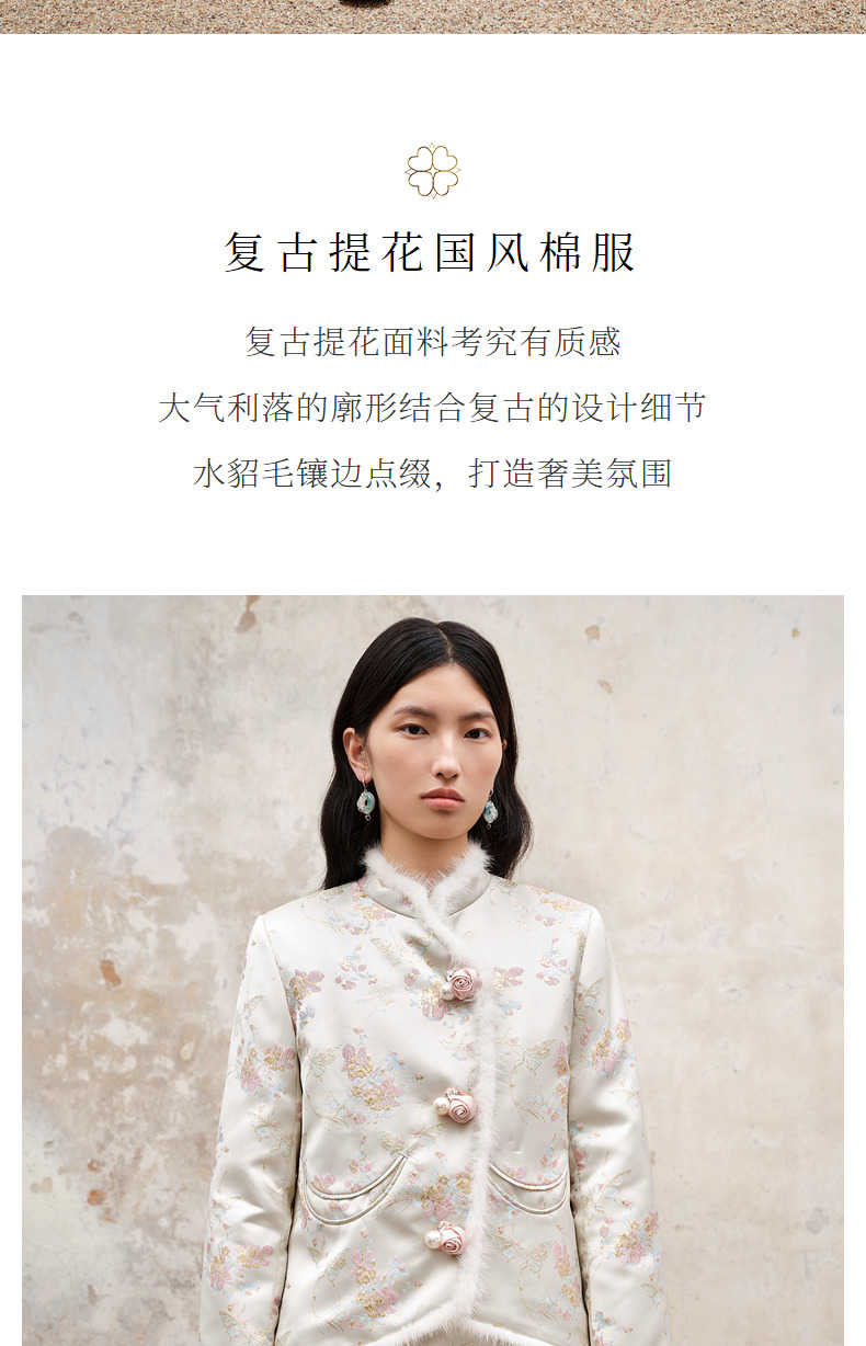 MAXRIENY国风复古提花棉服2023冬款新年年服精致宫廷感粉金外套女(货号:MS88CP501)