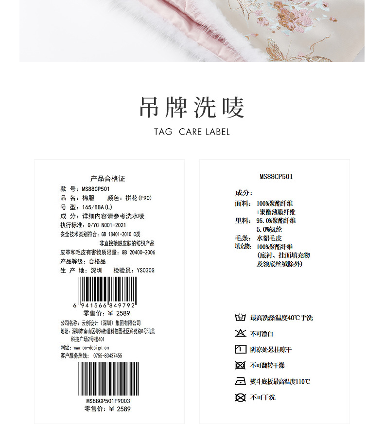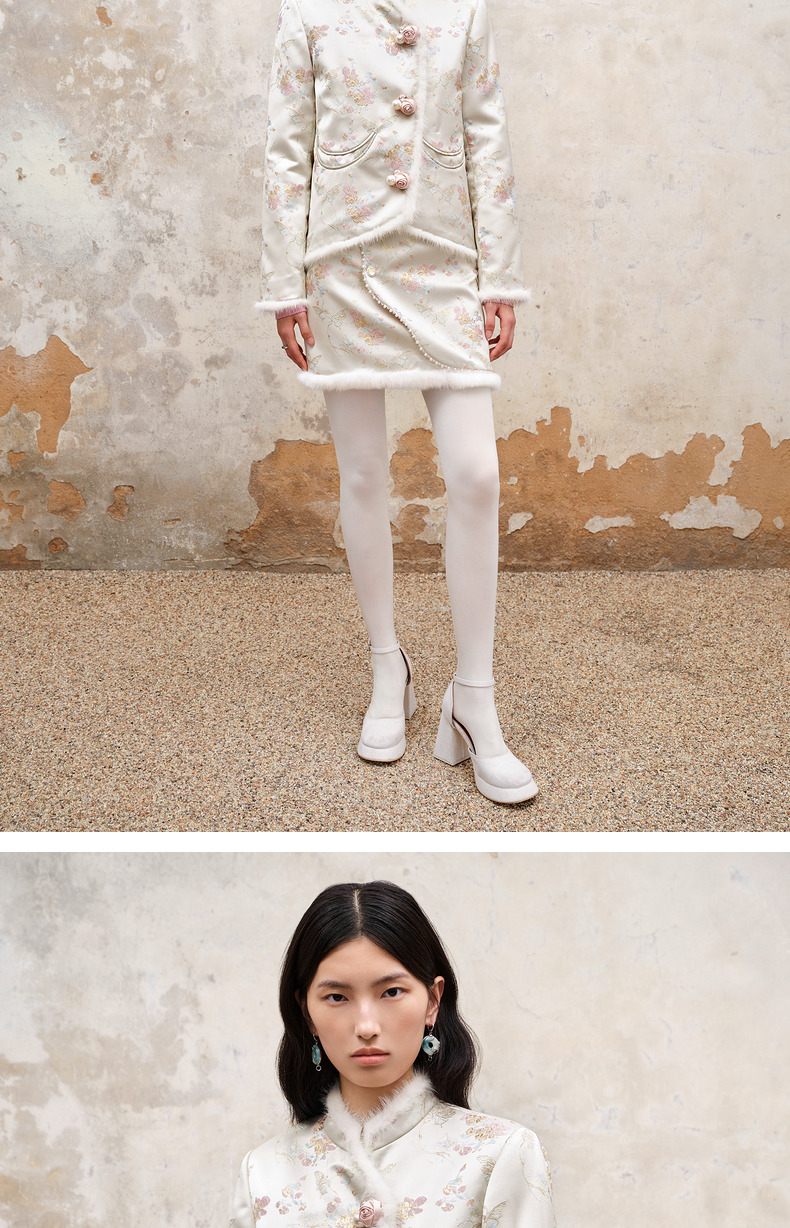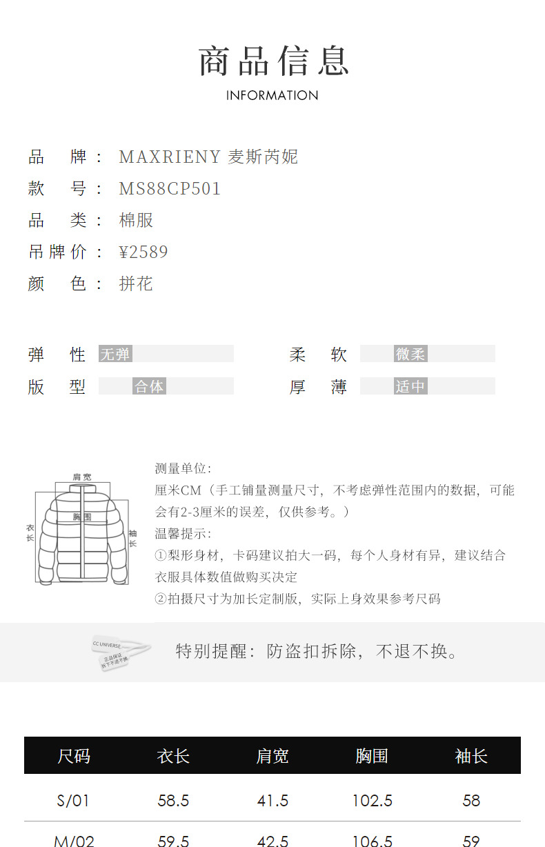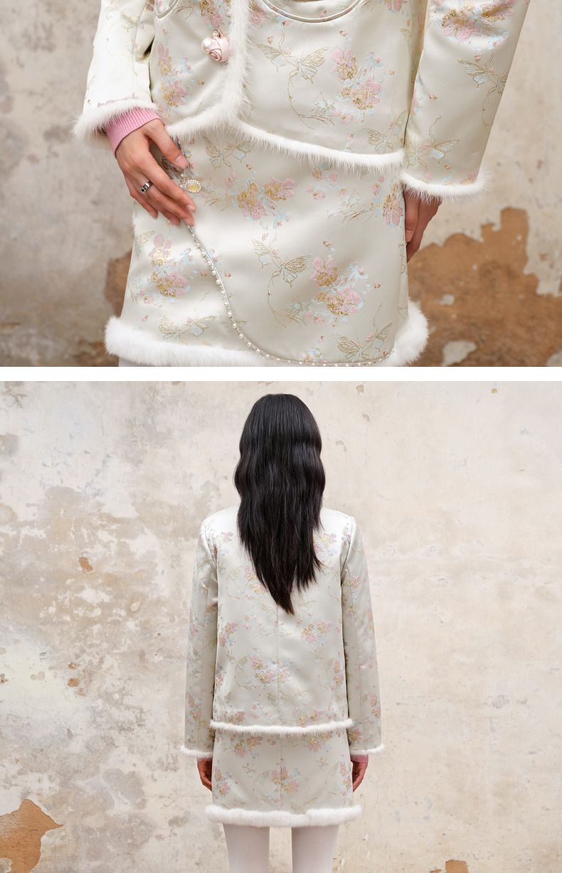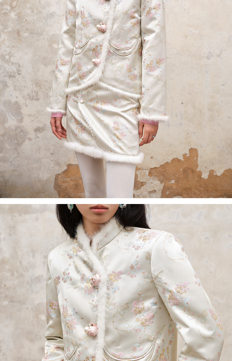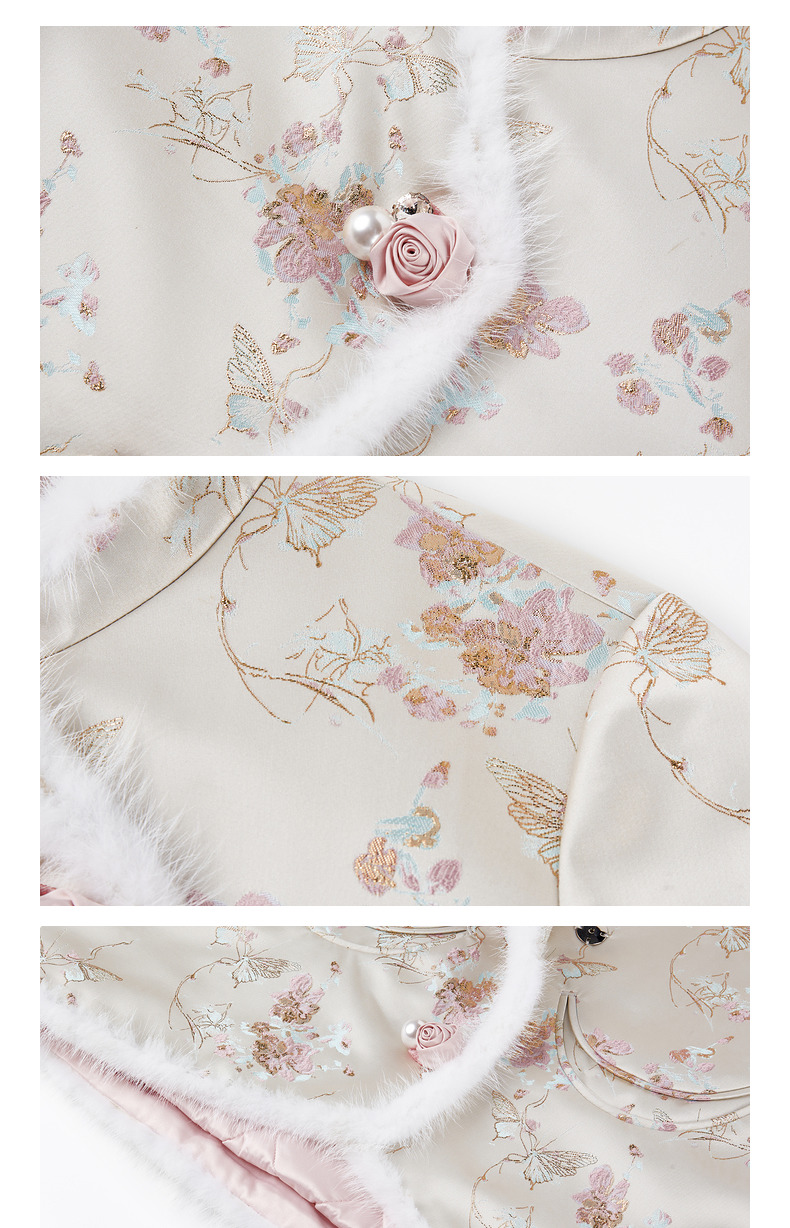 MAXRIENY国风复古提花棉服2023冬款新年年服精致宫廷感粉金外套女(货号:MS88CP501)