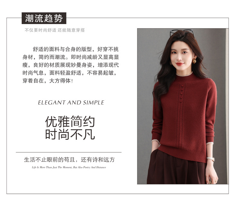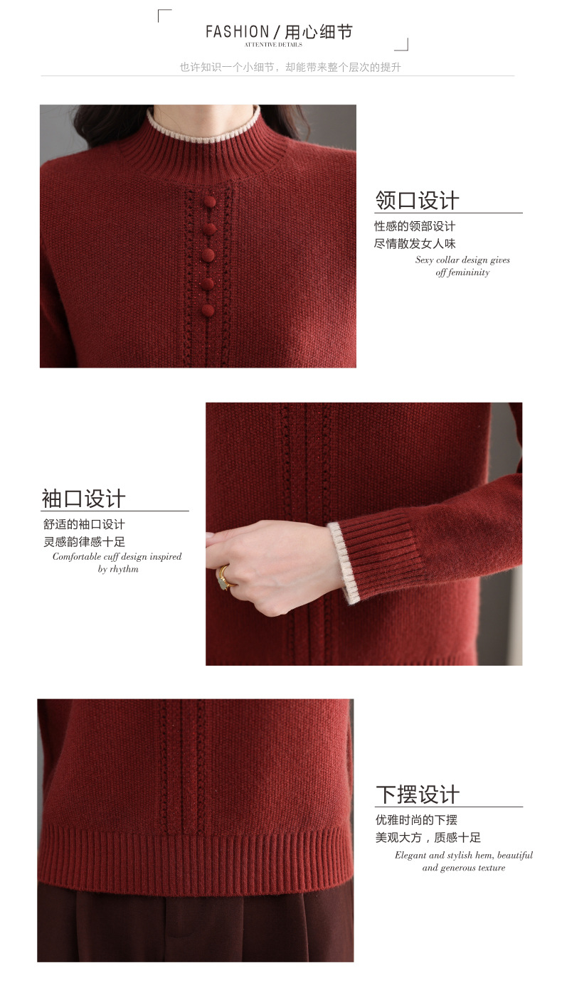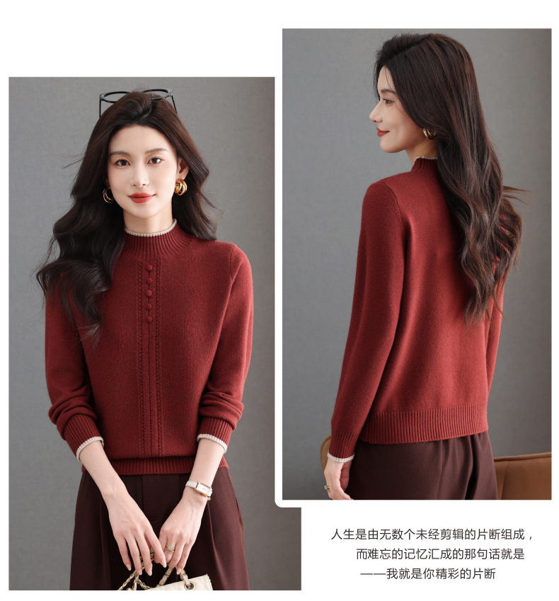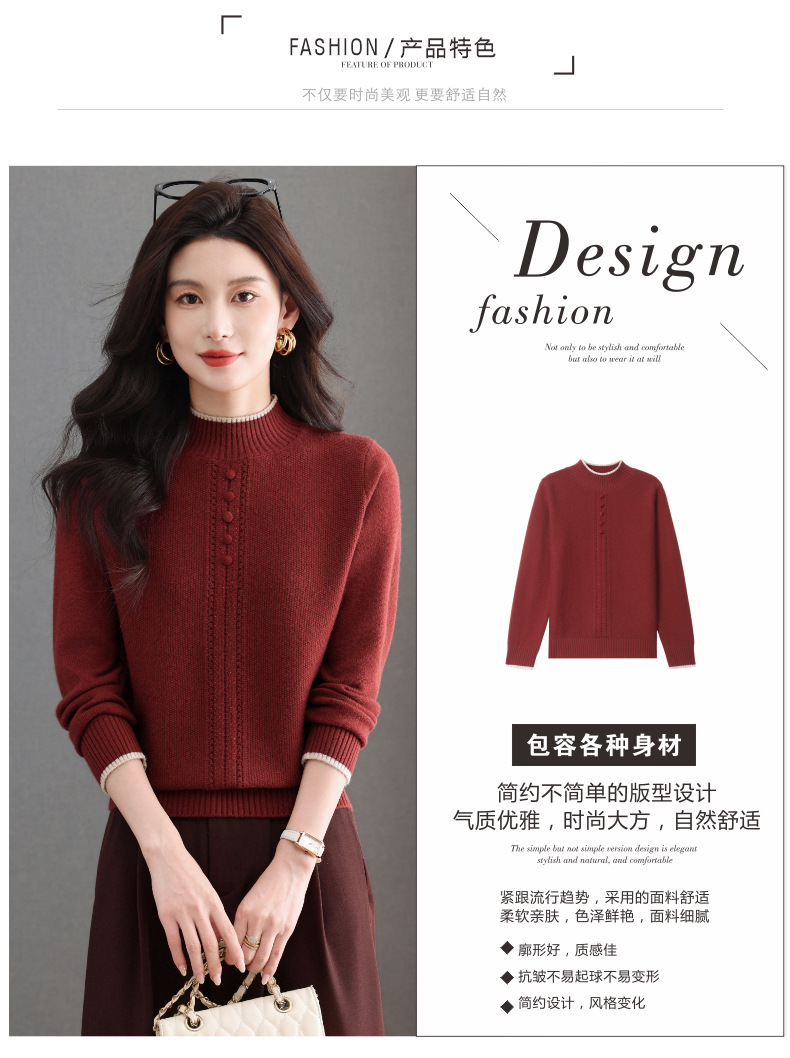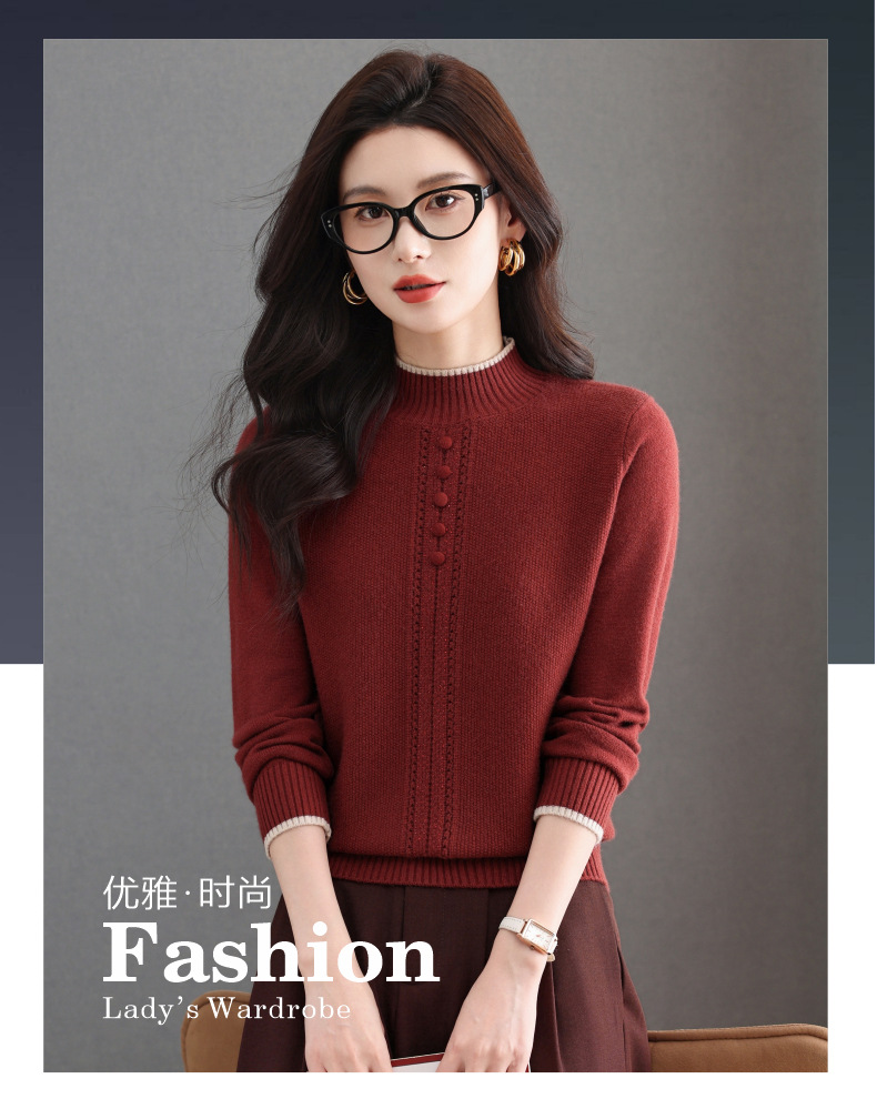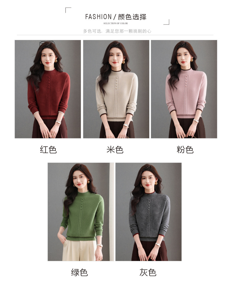 CC半高领毛衣女秋冬短款妈妈装上衣2025新款洋气厚款保暖内搭针织衫