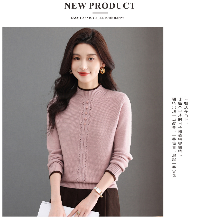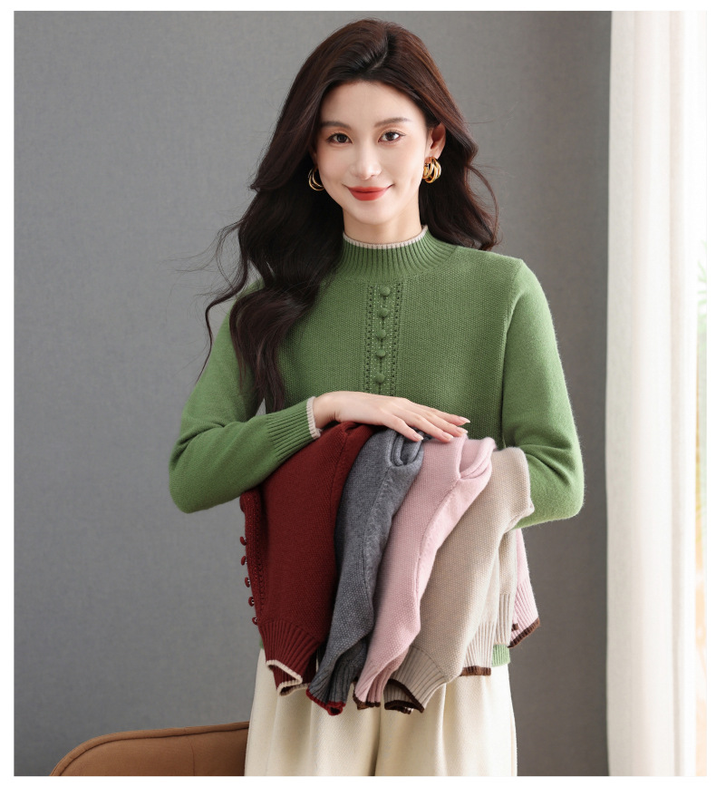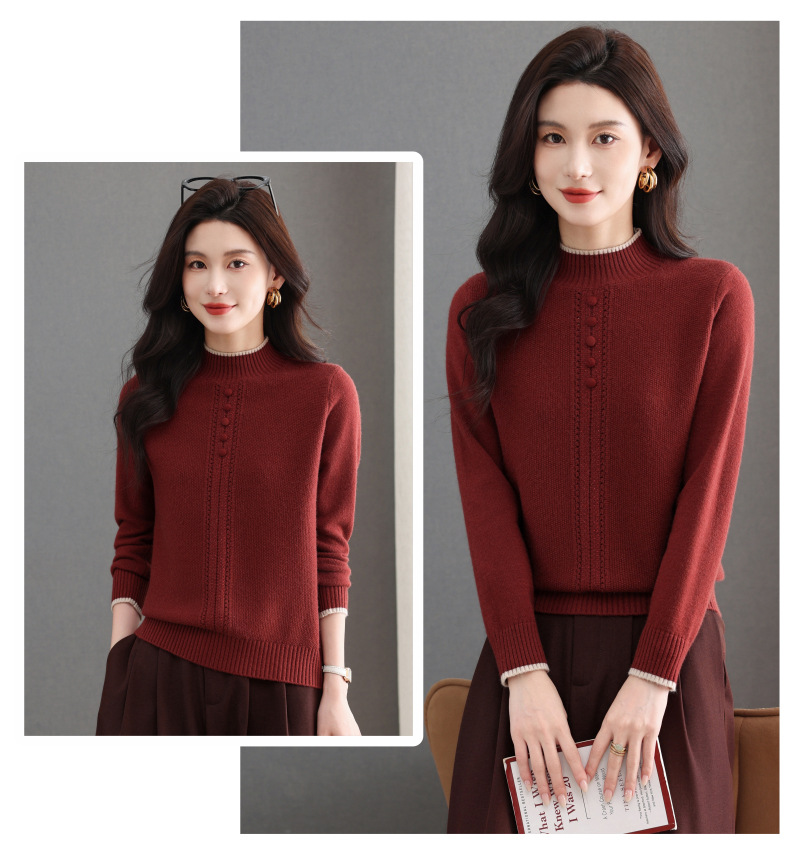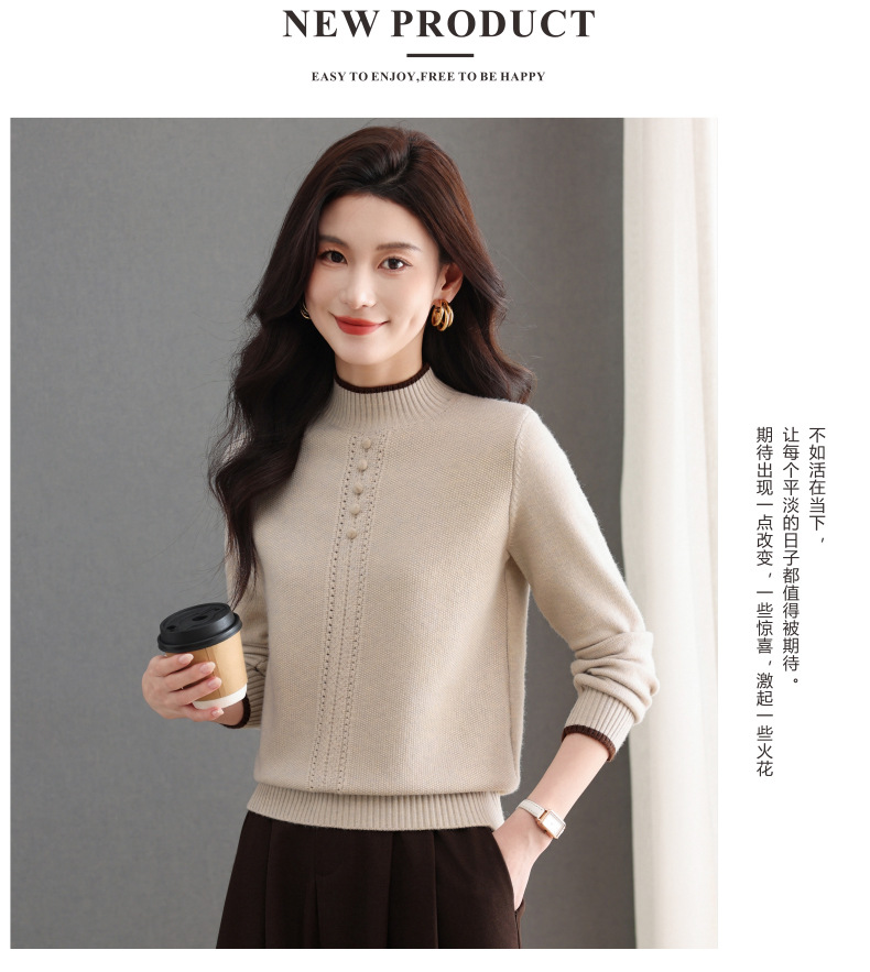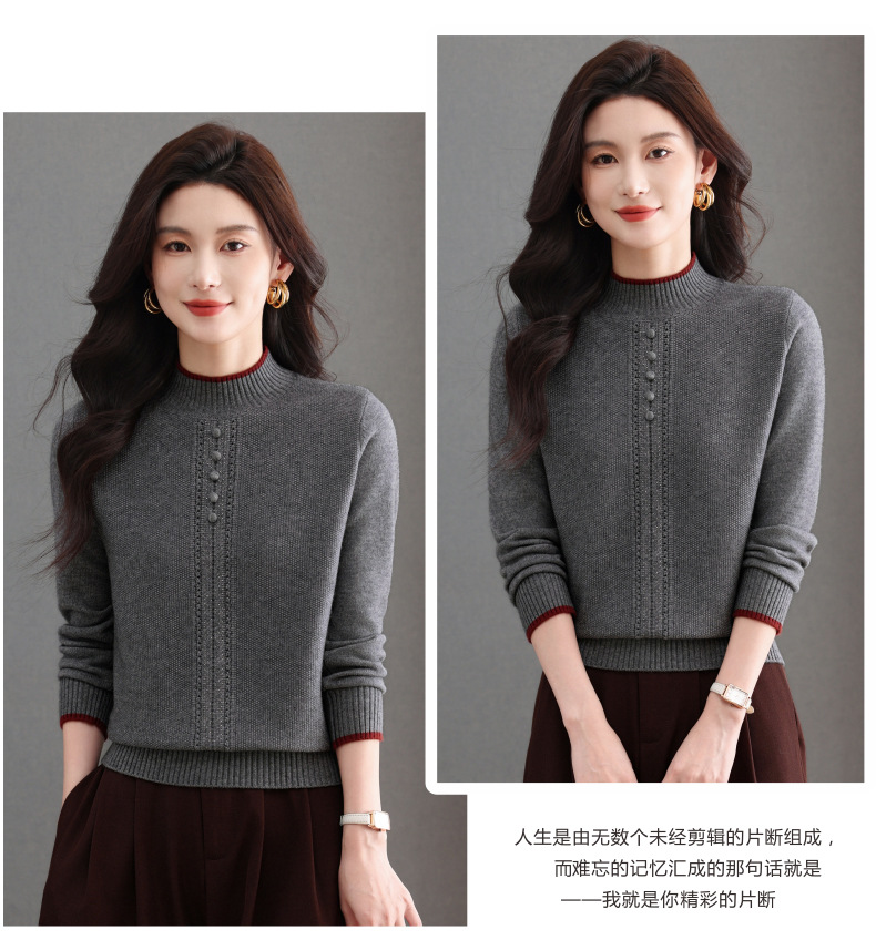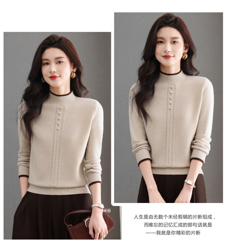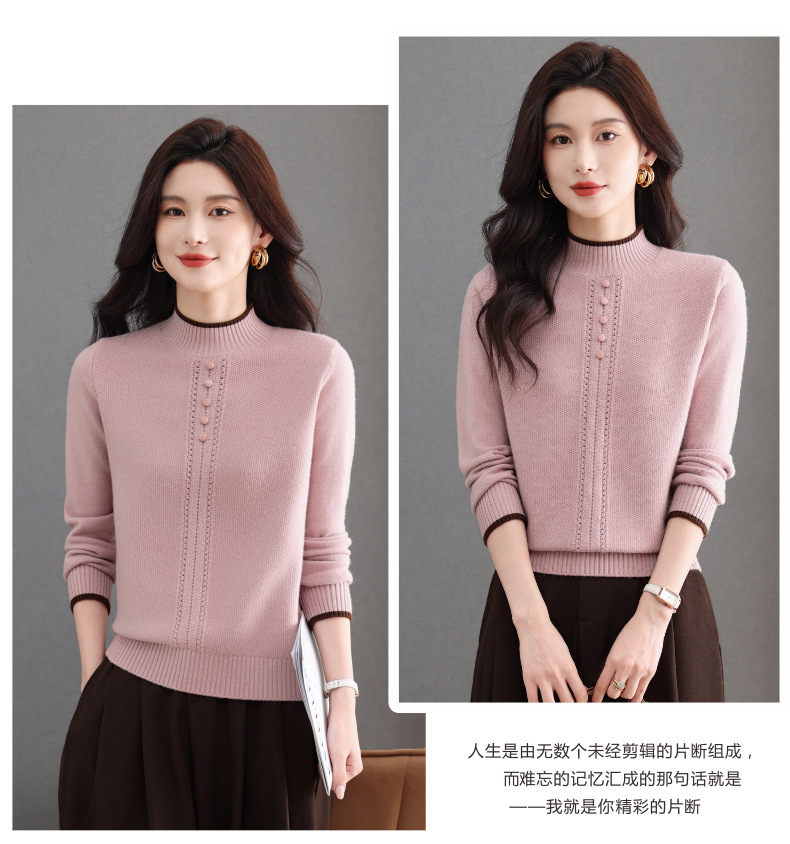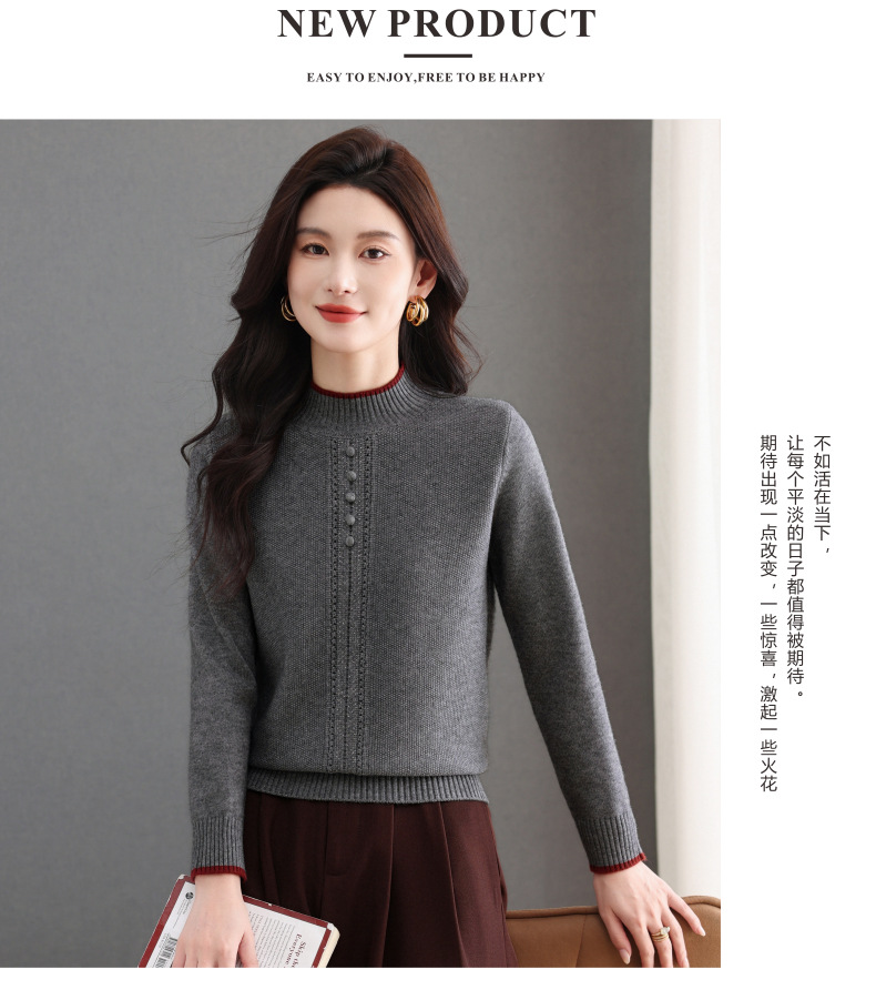 CC半高领毛衣女秋冬短款妈妈装上衣2025新款洋气厚款保暖内搭针织衫