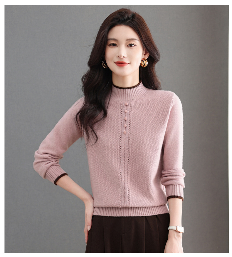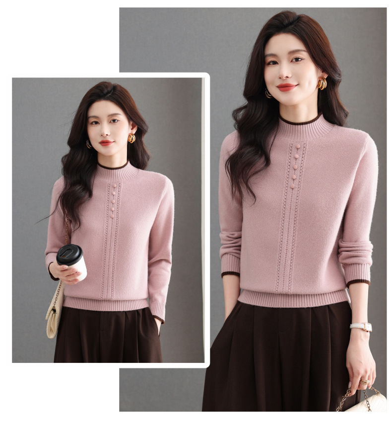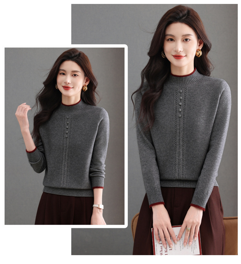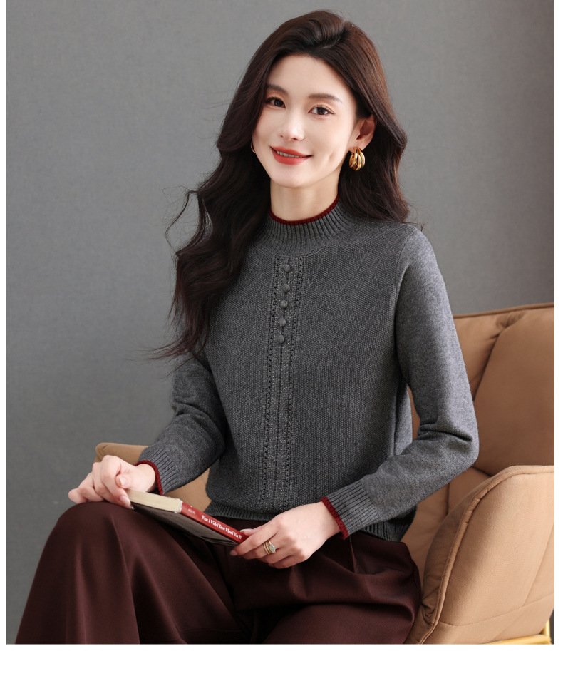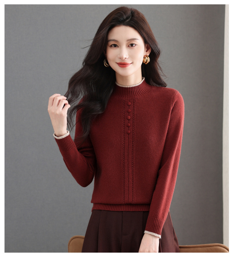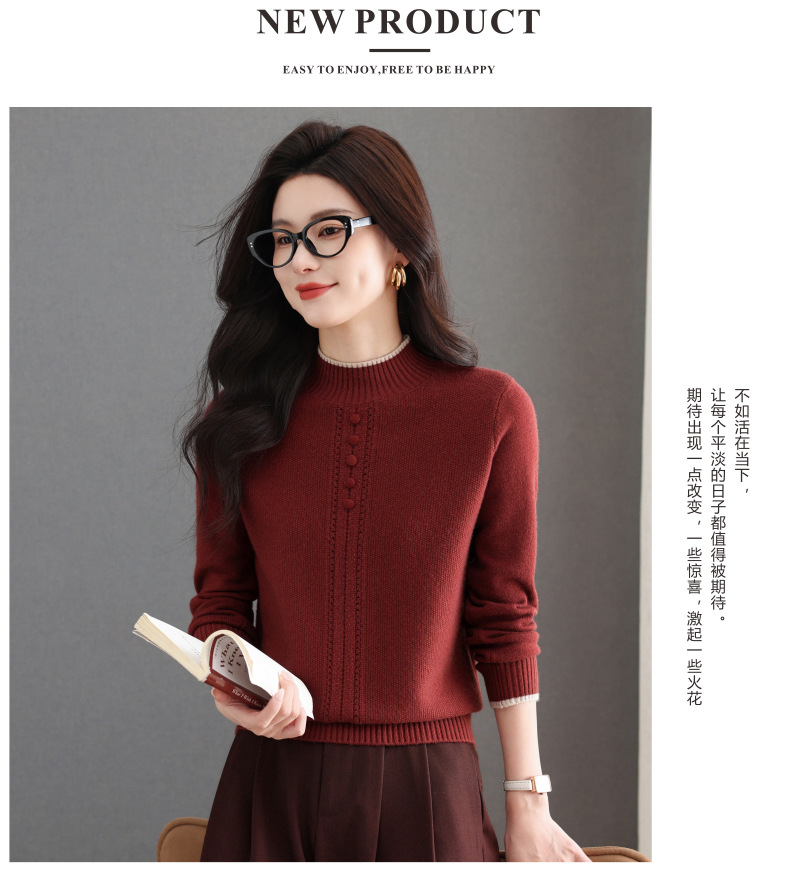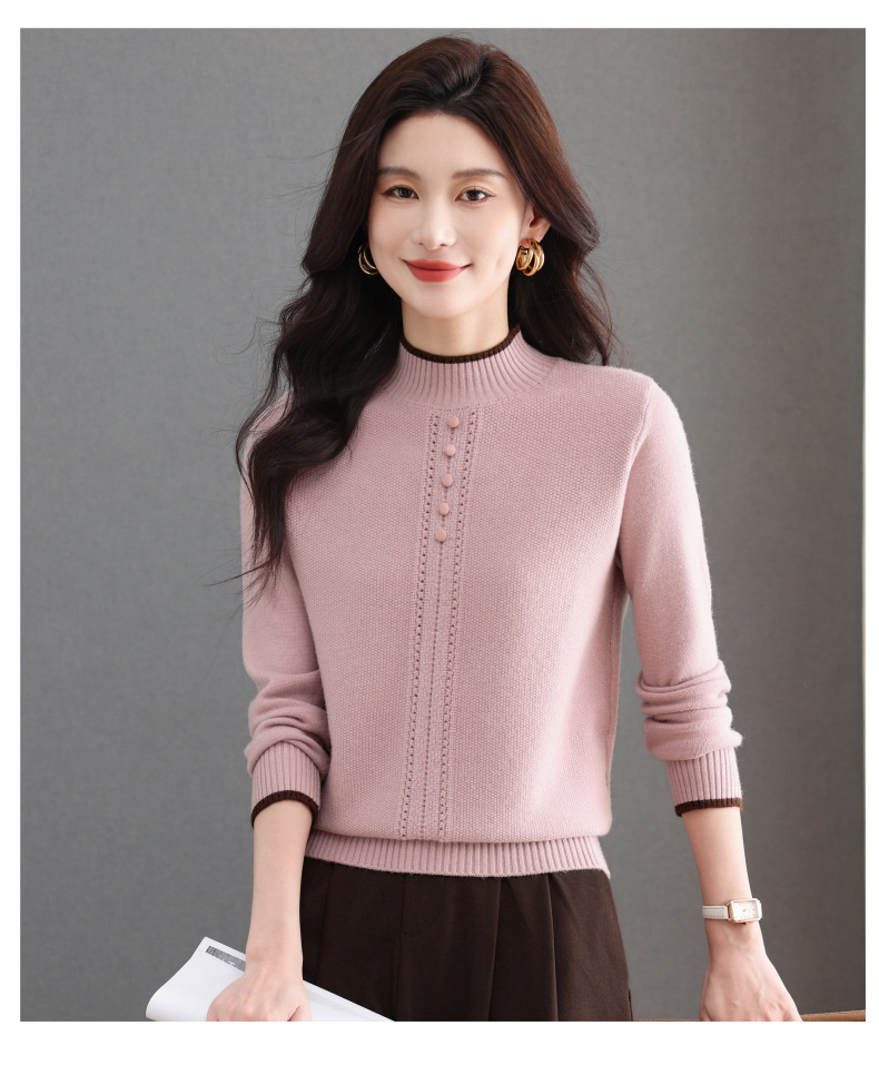 CC半高领毛衣女秋冬短款妈妈装上衣2025新款洋气厚款保暖内搭针织衫