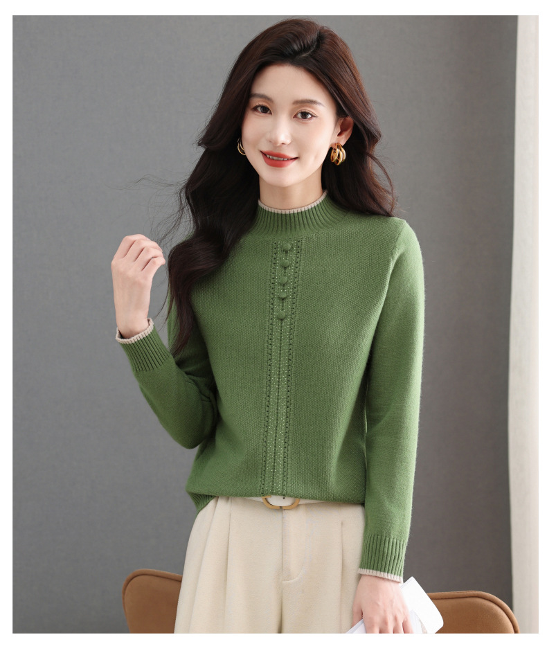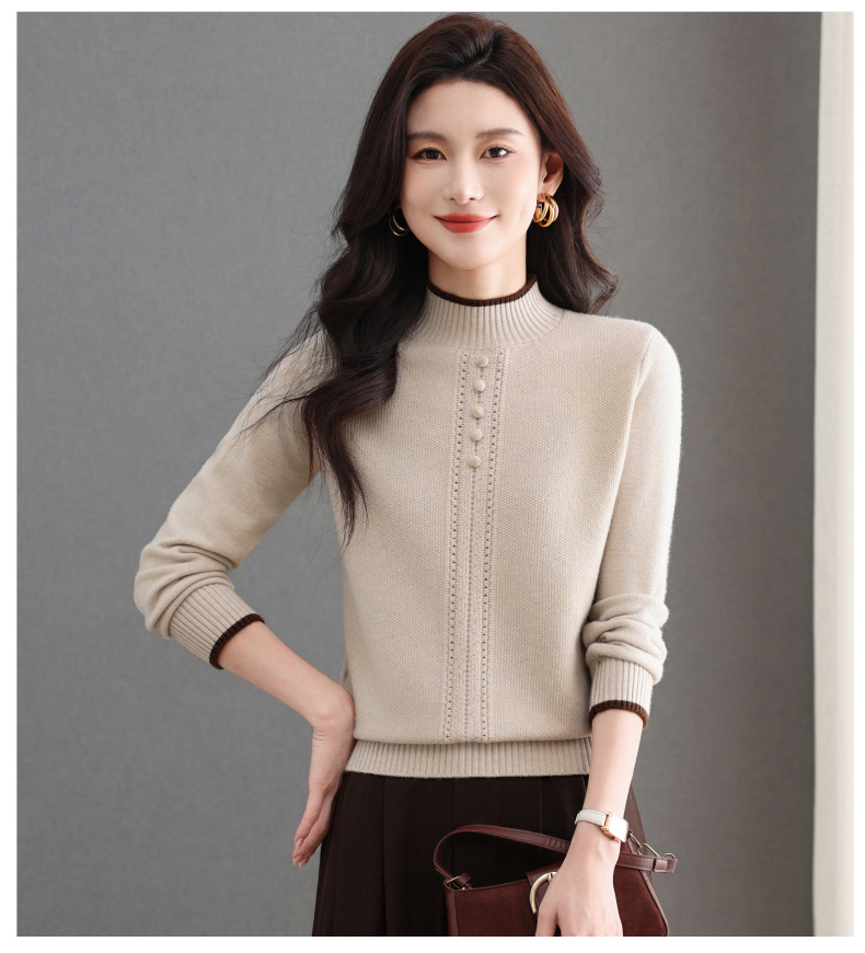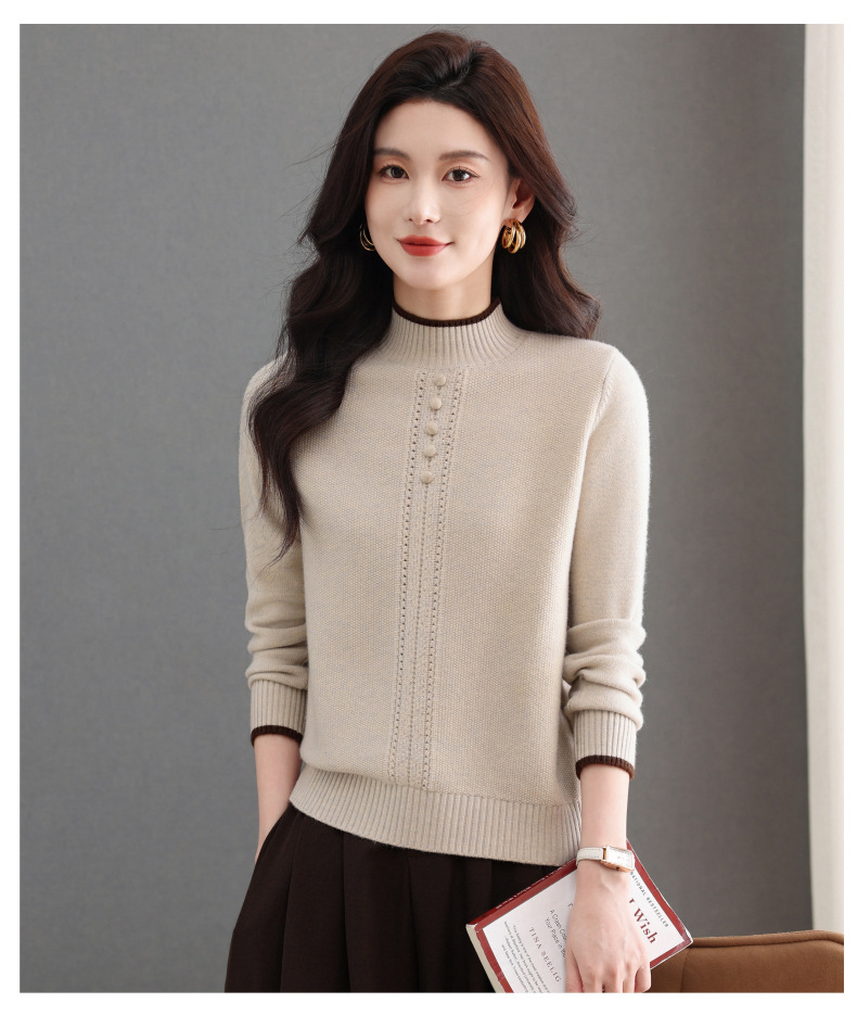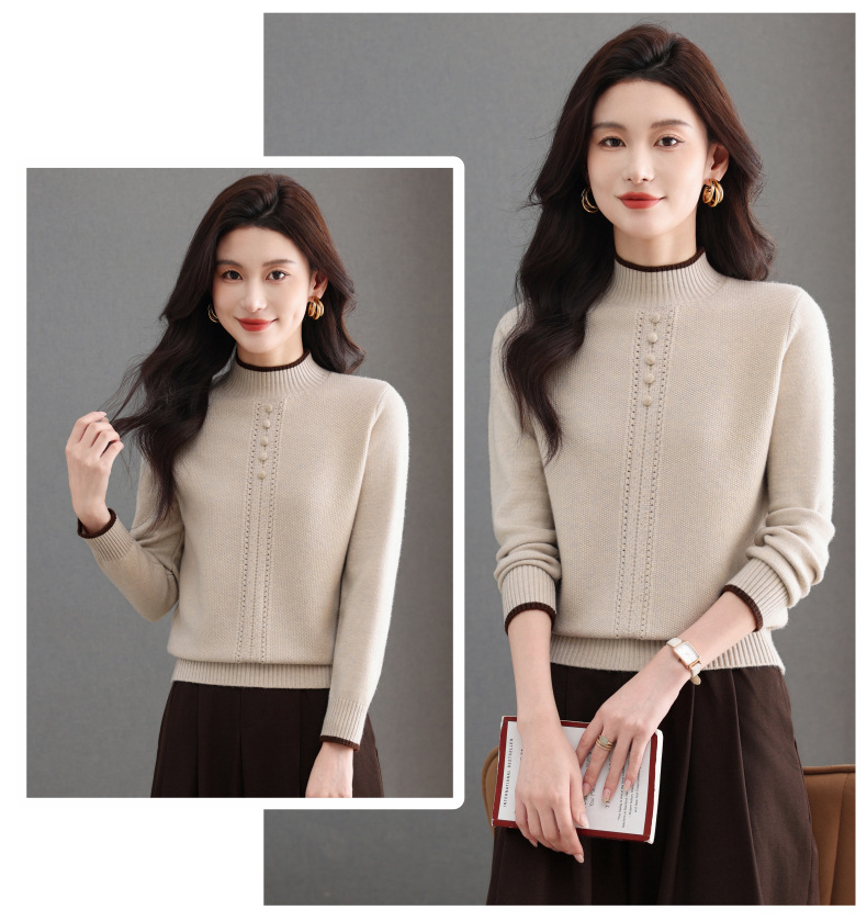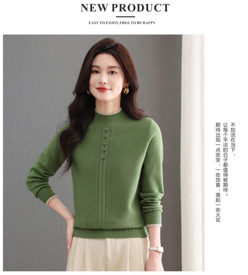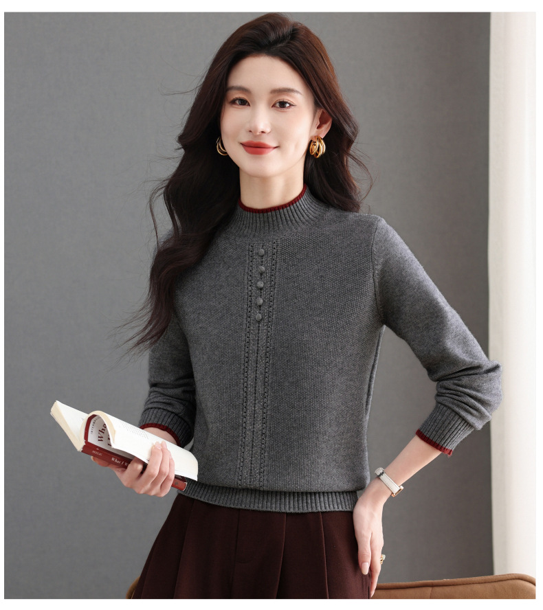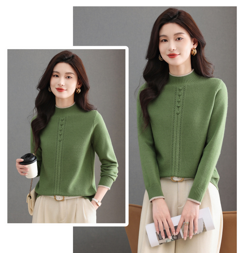 CC半高领毛衣女秋冬短款妈妈装上衣2025新款洋气厚款保暖内搭针织衫