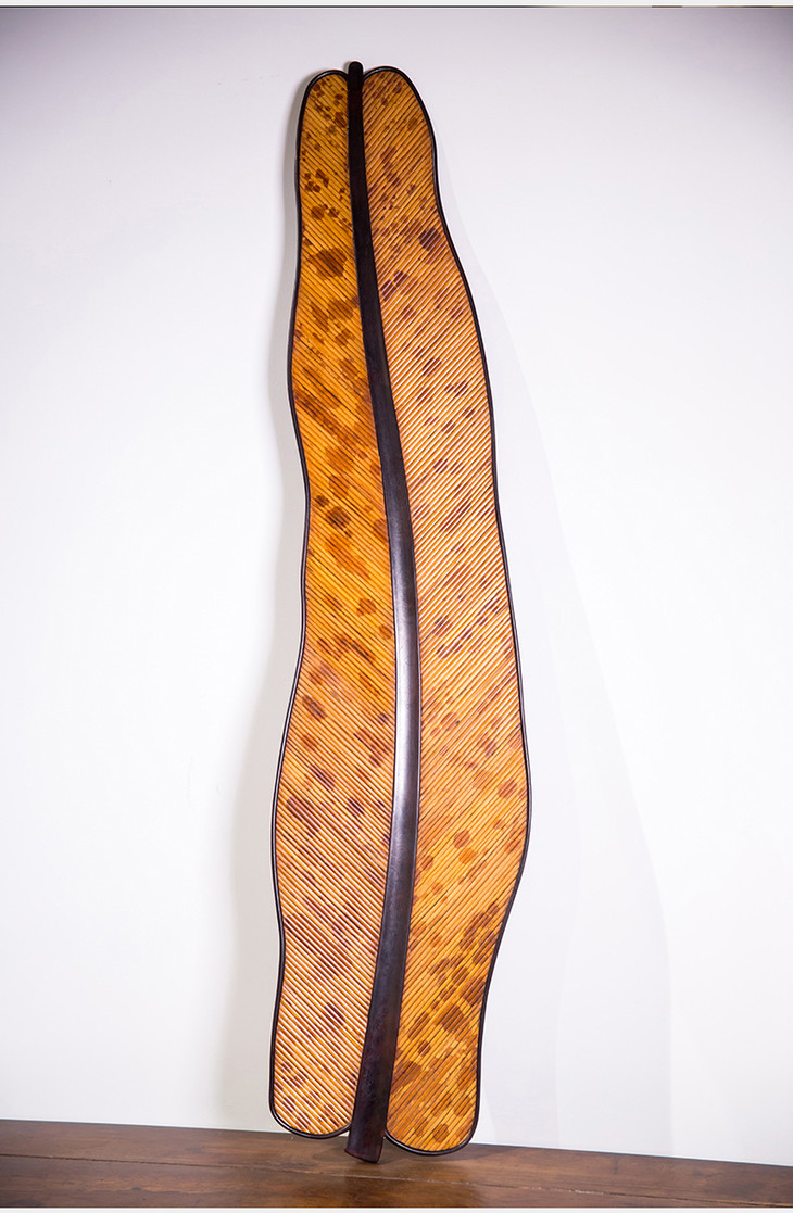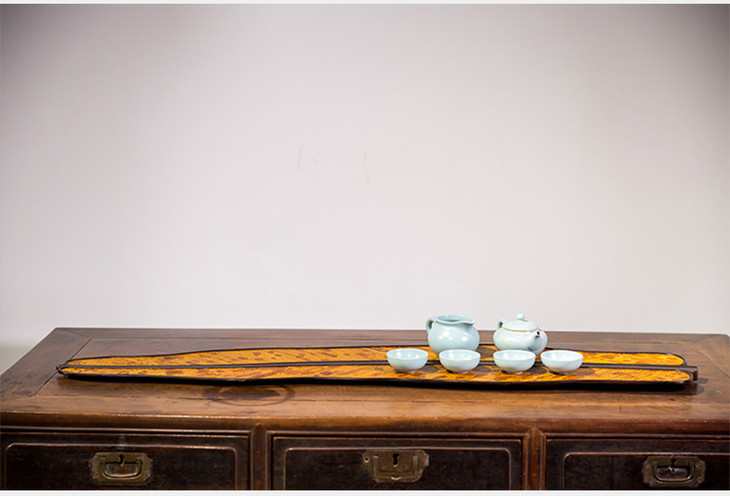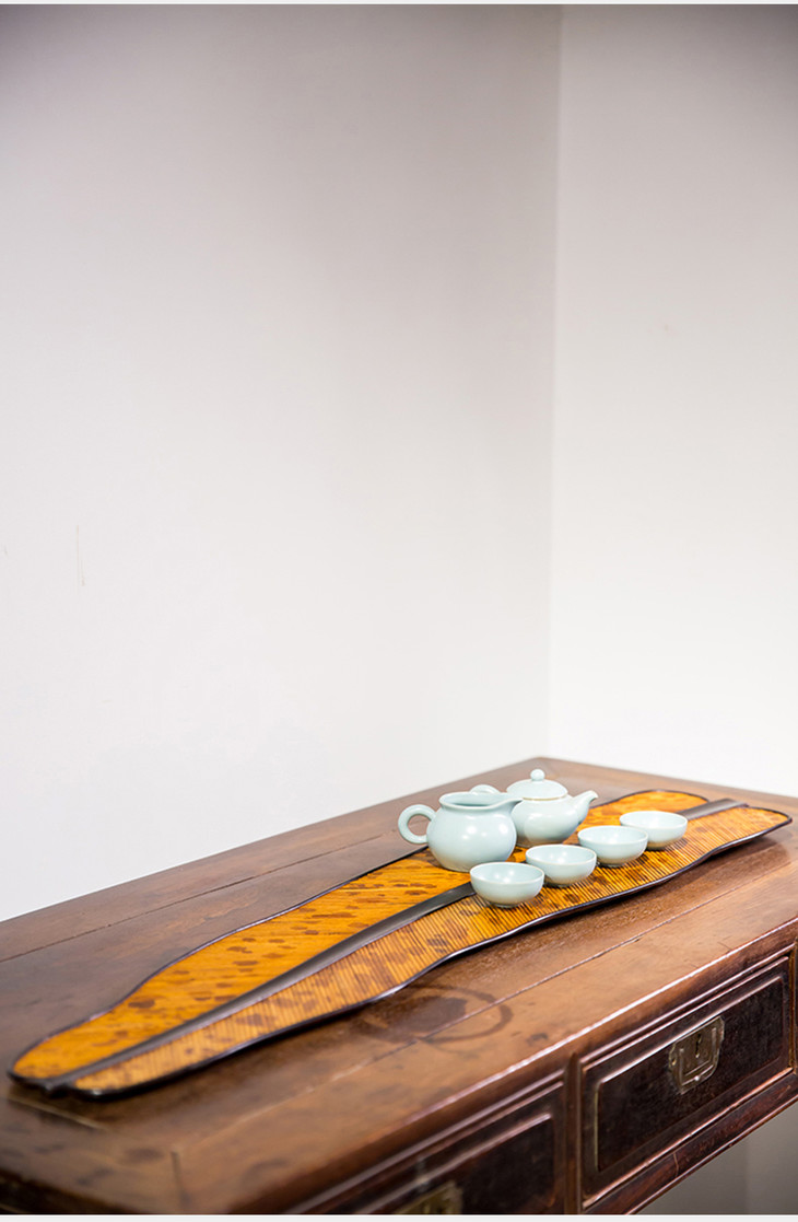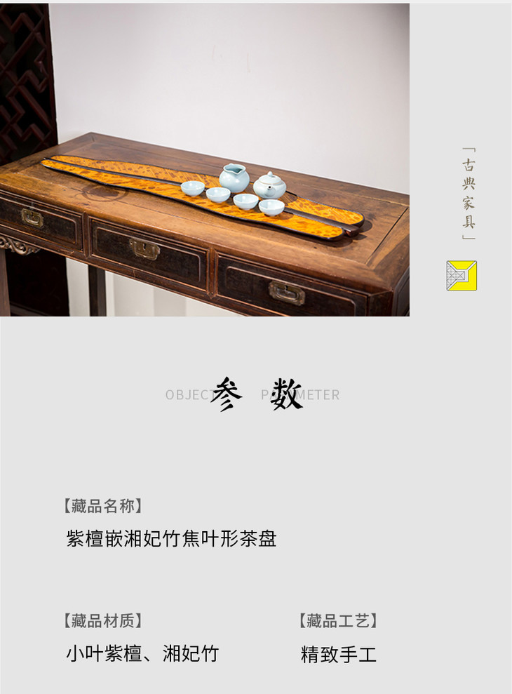 紫檀嵌湘妃竹焦叶形茶盘