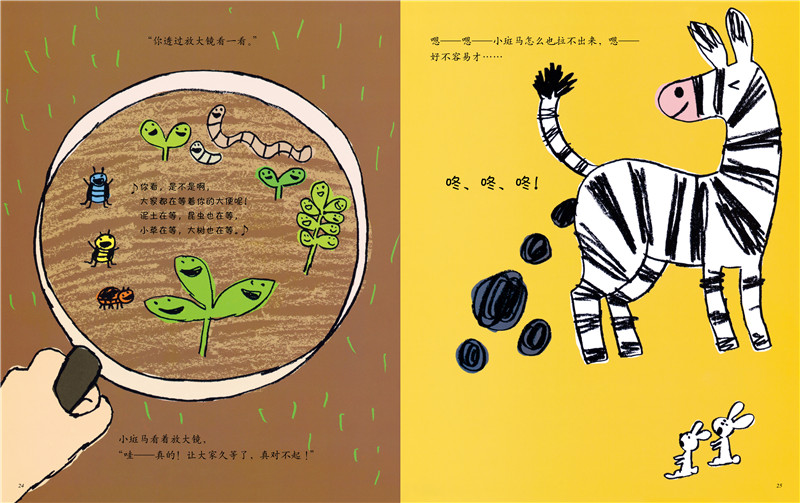 ★ 小斑马便秘了,它拉呀拉呀,怎么都拉不出来。没有大便,泥土就没有养分,小草只好等啊等,大树等啊等,昆虫也等啊等……小朋友们,要好好吃饭、好好喝水,才能好好大便哦!日本学校图书馆协会选定图书