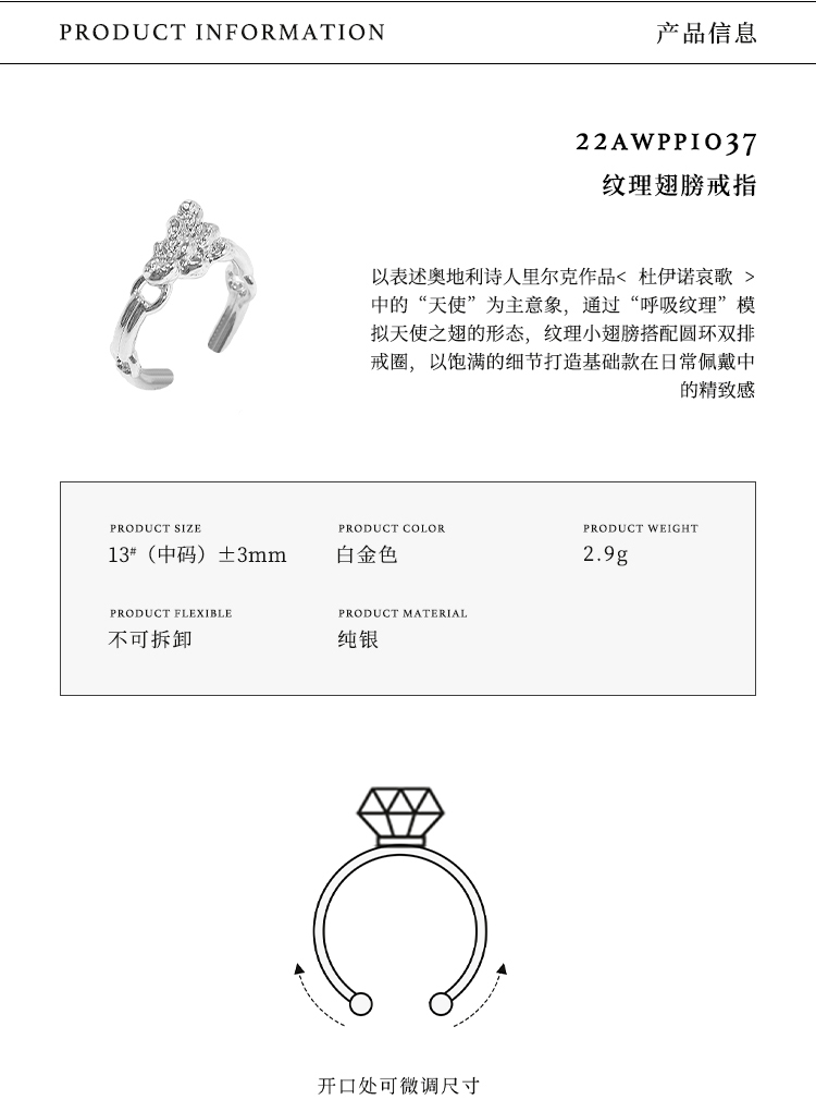 ATELIERSO 22AW翅膀系列 纹理翅膀戒指