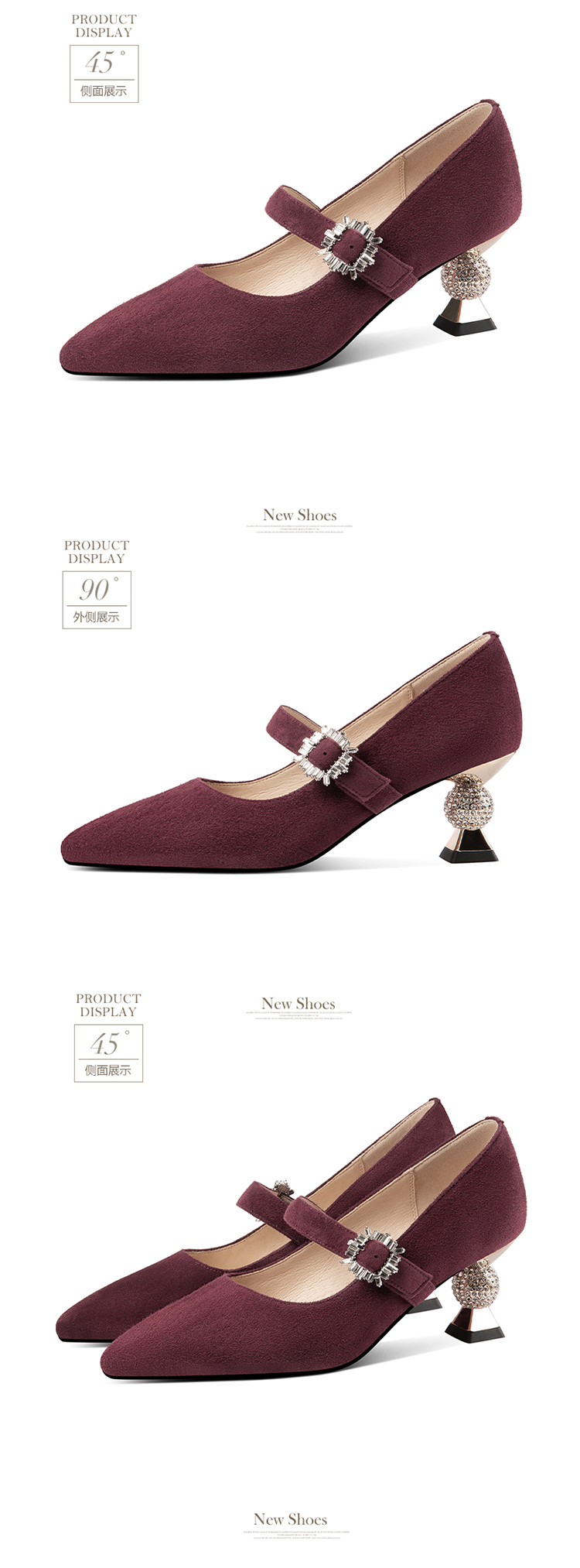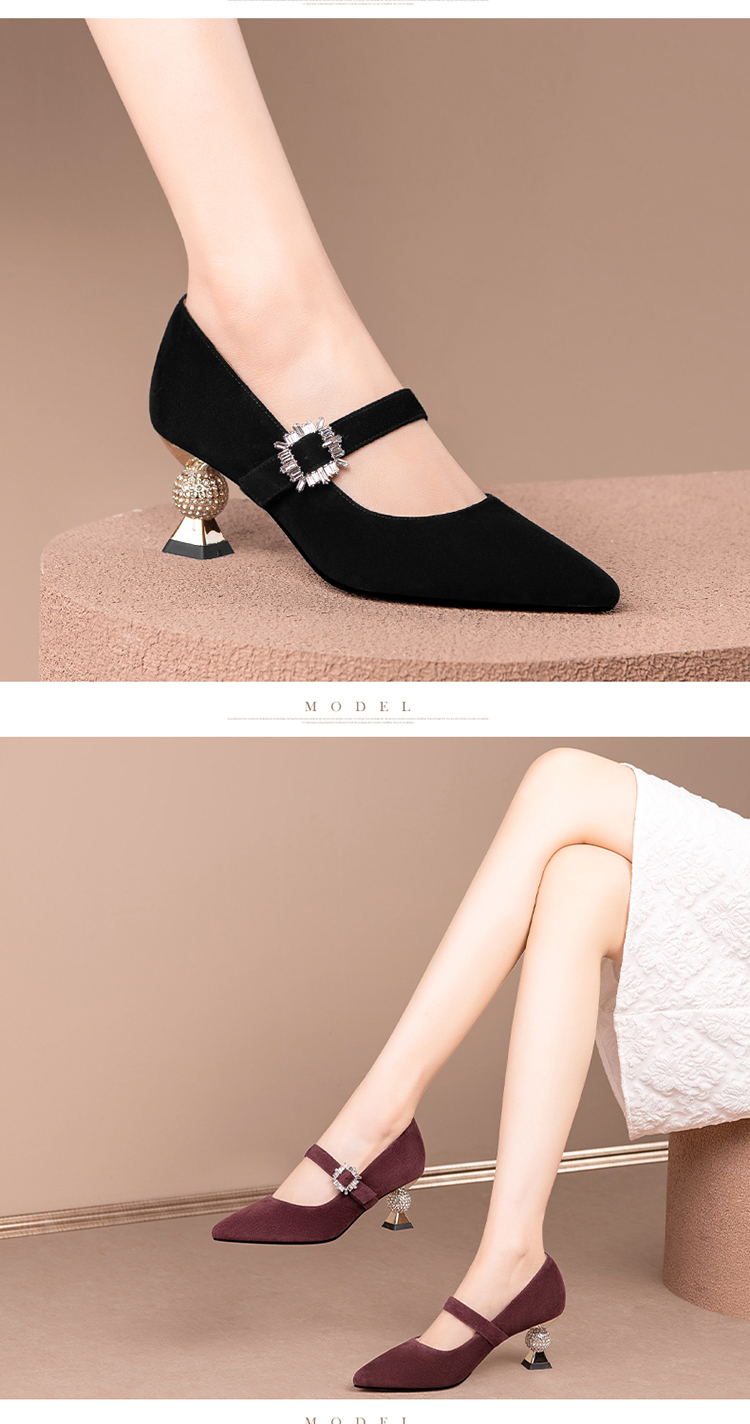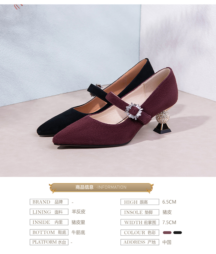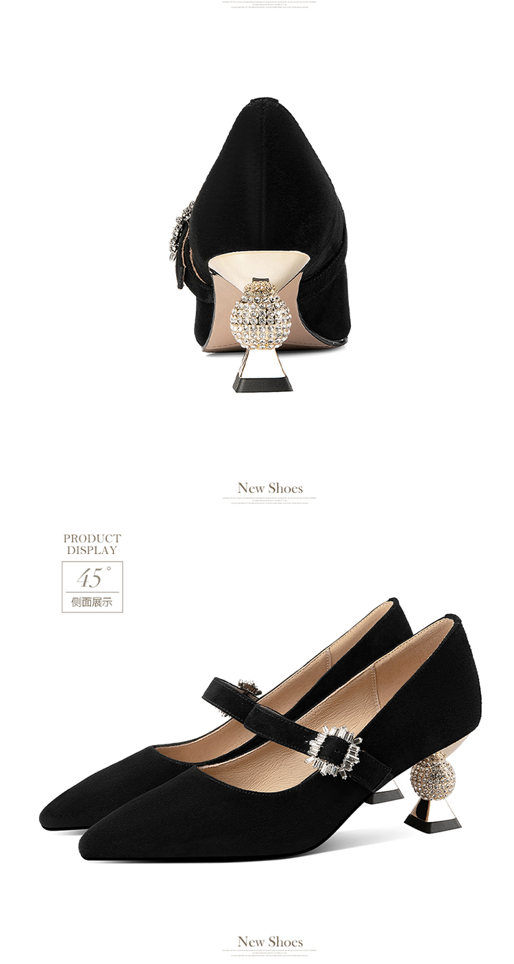 优雅百搭,手工真皮羊反皮尖头高跟单鞋HY-H3096