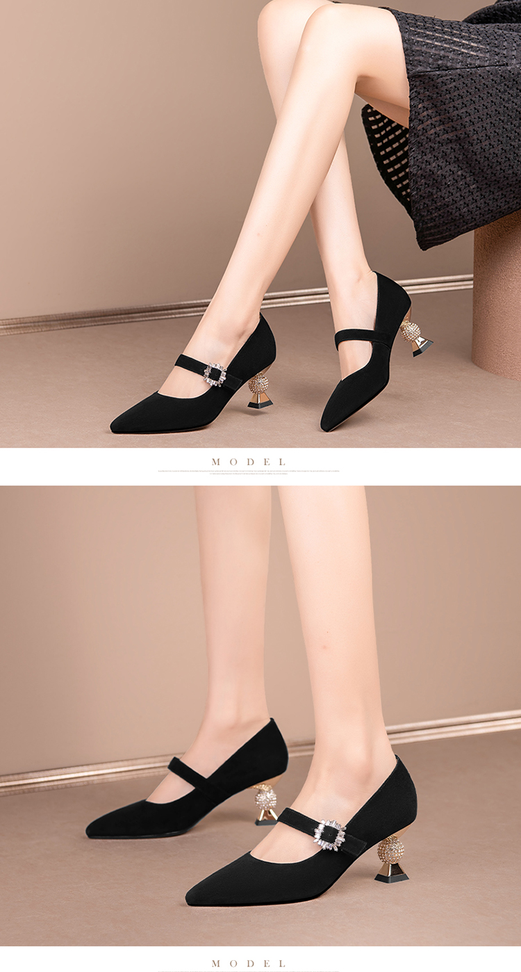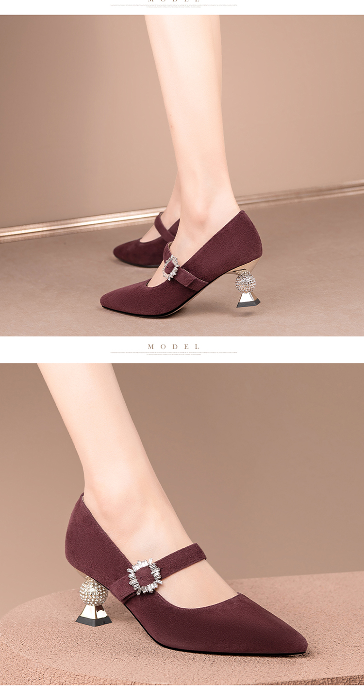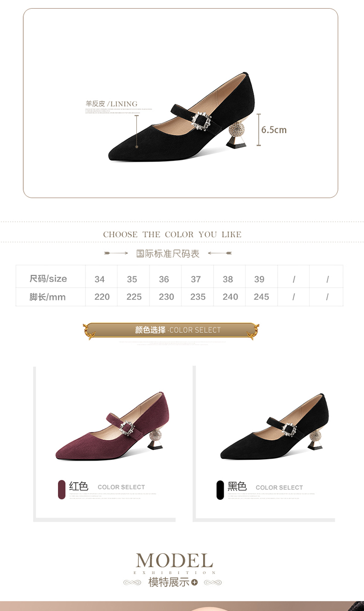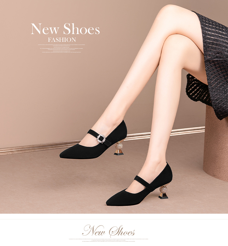 优雅百搭,手工真皮羊反皮尖头高跟单鞋HY-H3096