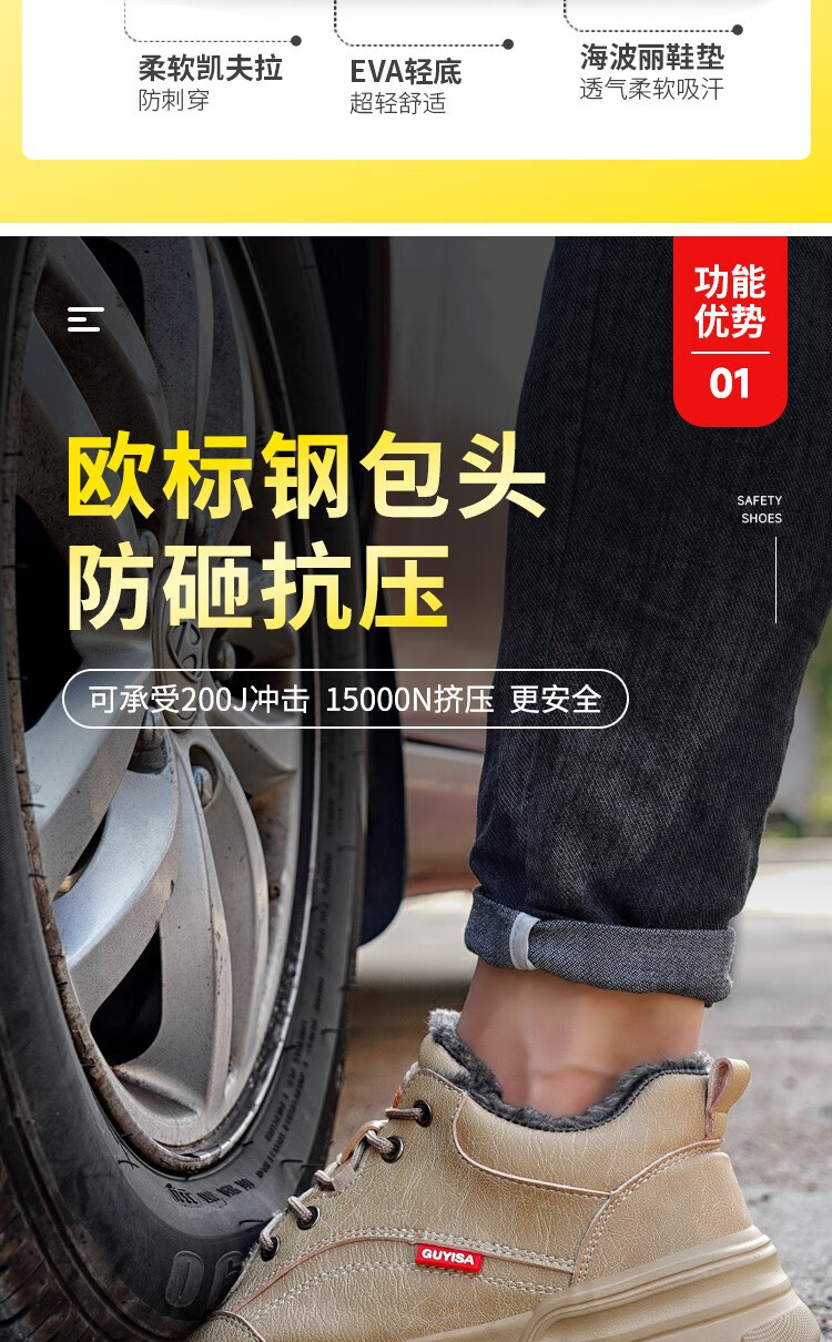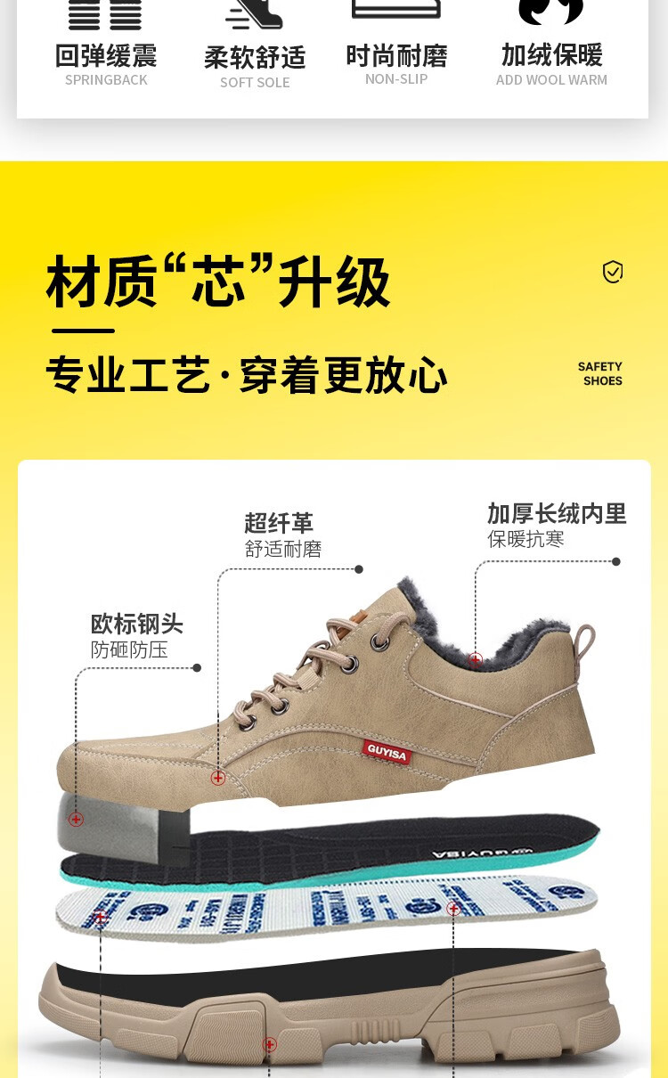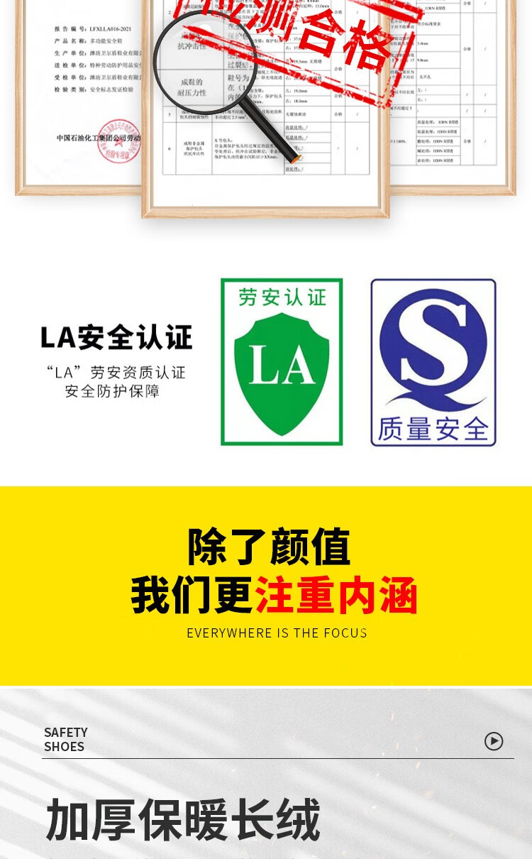 冬季加绒劳保鞋防砸防刺超轻安全鞋男女工作鞋钢包头劳保鞋