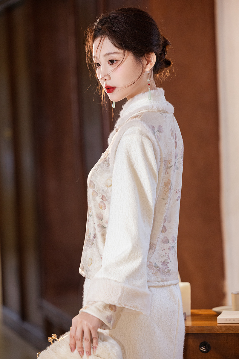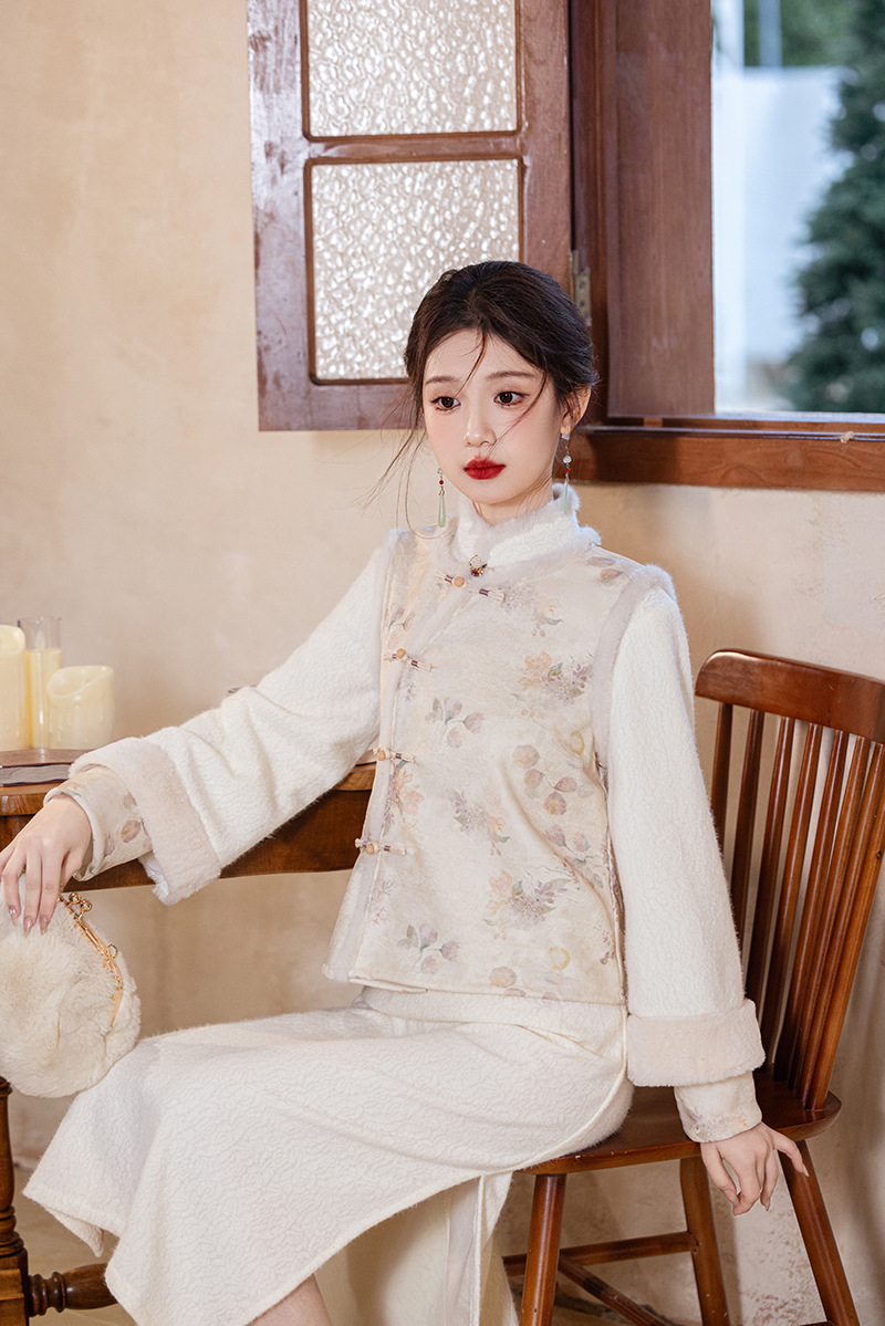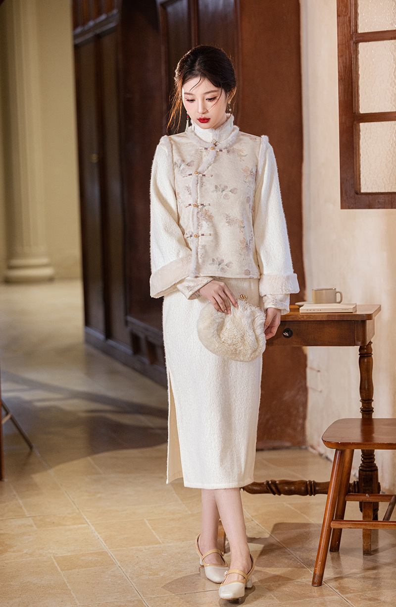 改良年轻款少女,加绒新中式白色旗袍YT-2879