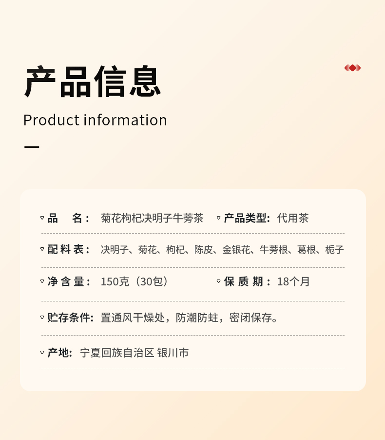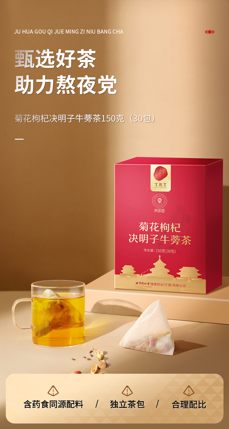 【正宗同仁堂品牌】北京同仁堂 青源堂 菊花枸杞决明子牛蒡茶 150克 独立茶包SY