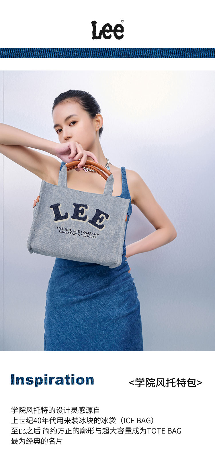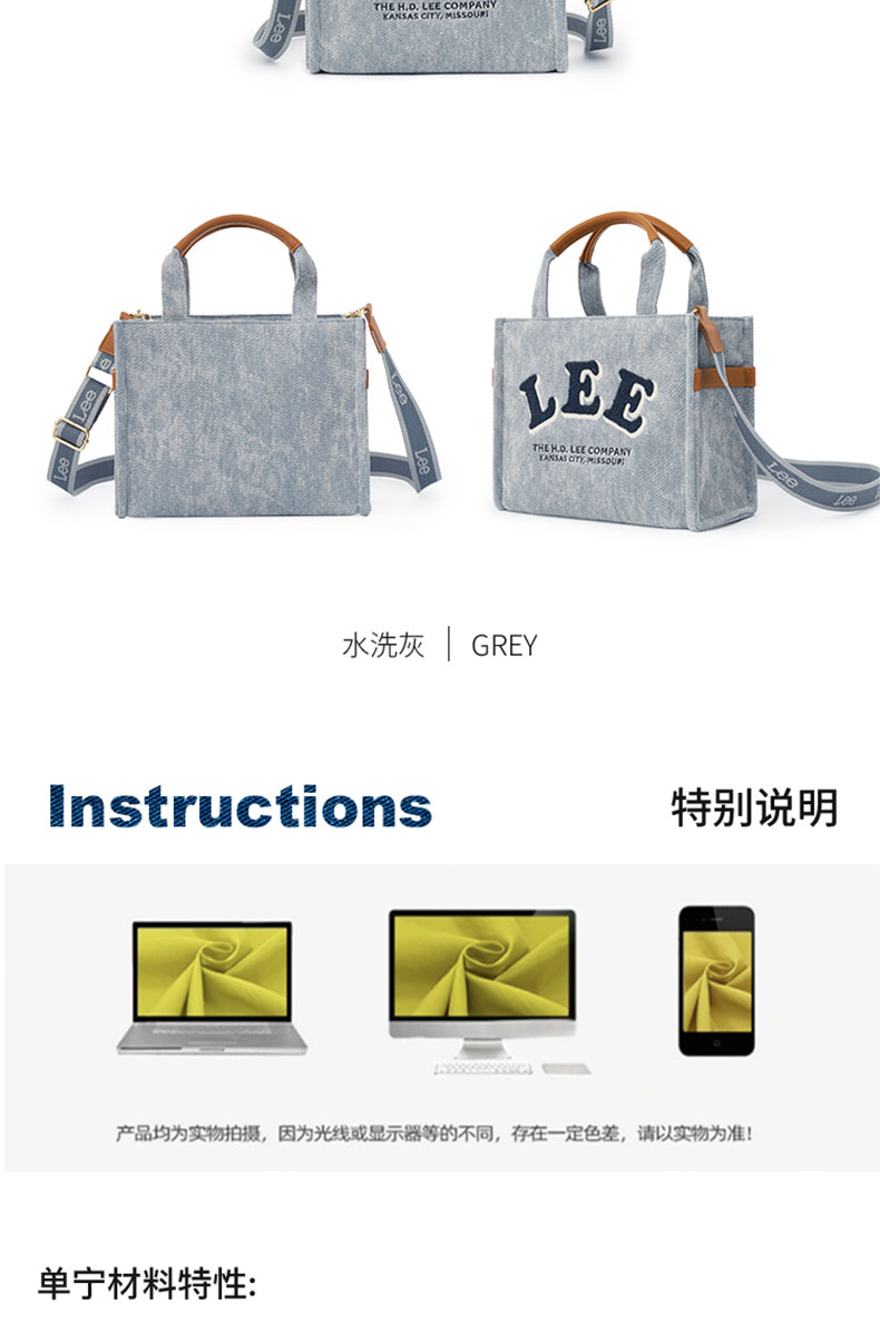 Lee学院风托特包水洗灰