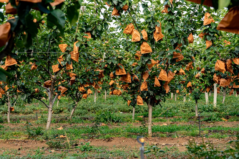 百年经验的积累基地已经琢磨出一套科学的种梨方式通风透光要做好果园就严格要求果树之间保留5米左右的间隔。