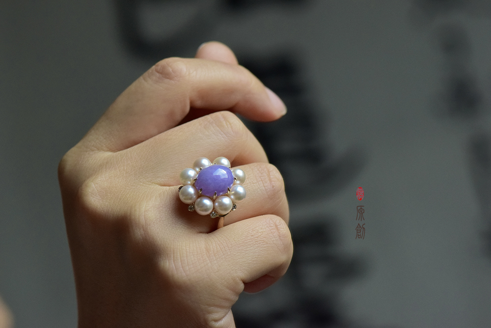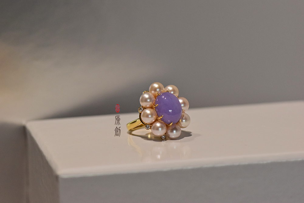 18K玫瑰金紫翡珍珠戒指