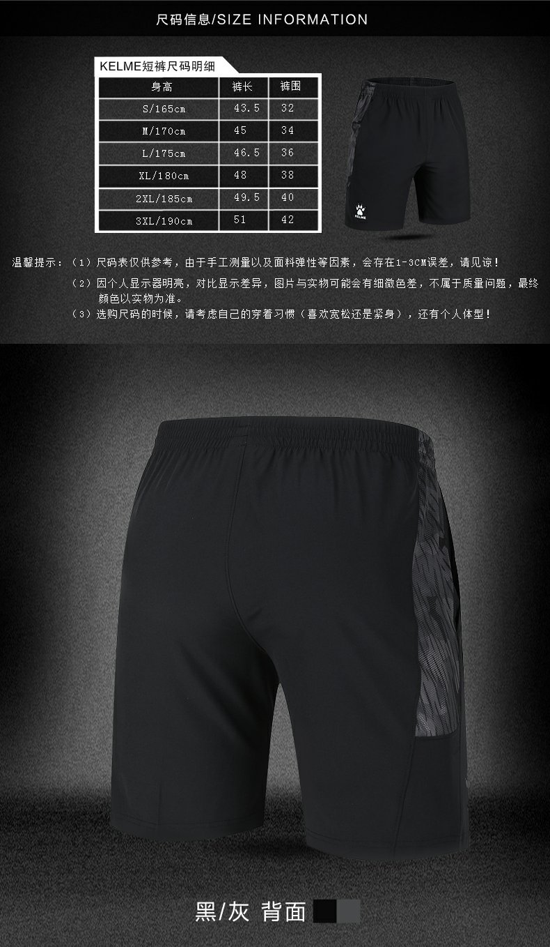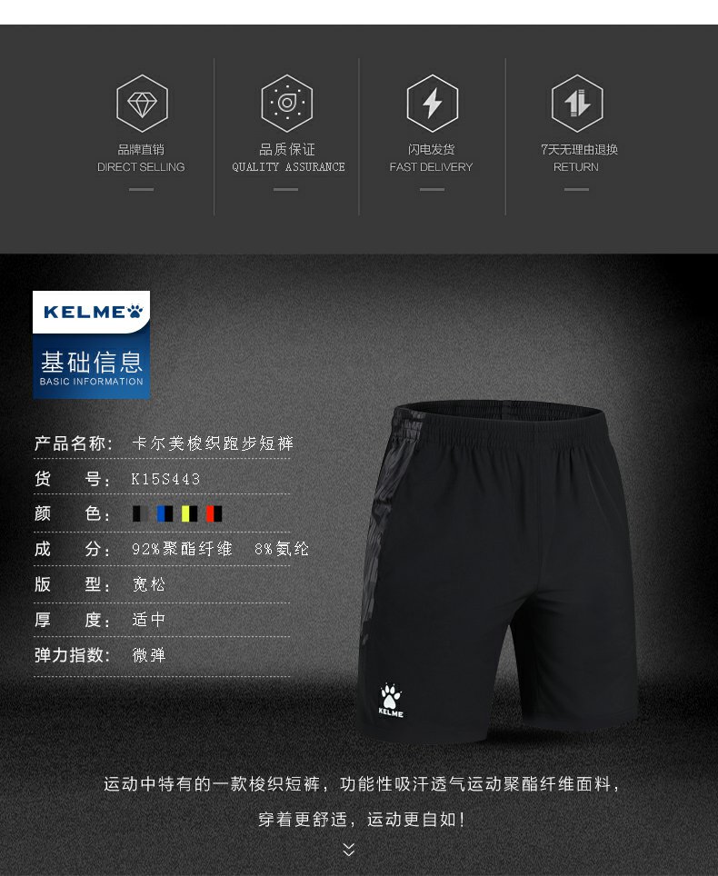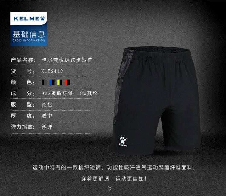 卡尔美 夏季运动短裤速干透气跑步裤健身训练短裤男士短裤