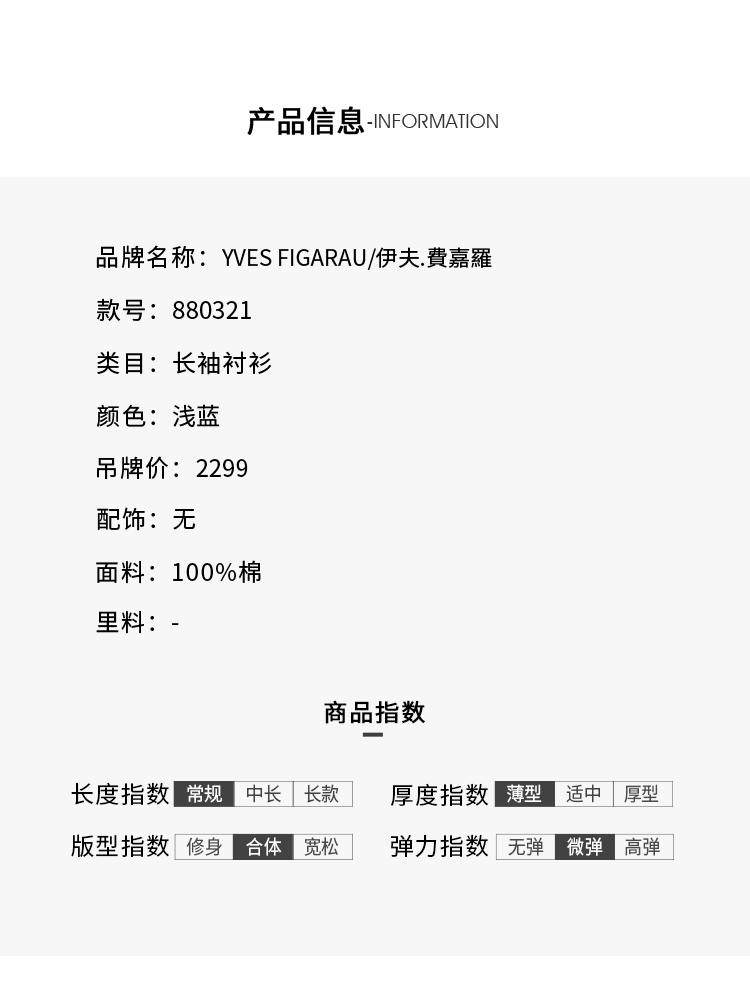YvesFigarau伊夫·费嘉罗秋冬100%棉商务休闲简约舒适透气长袖衬衫880321