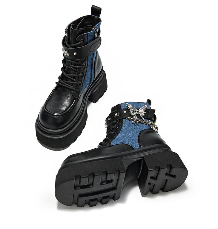 真皮英伦风蝴蝶链条厚底马丁靴BT-S617-5