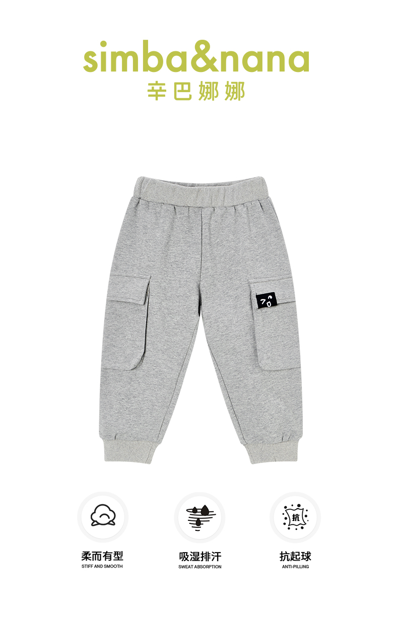 【辛巴娜娜】simbanana春秋款儿童宽松百搭休闲大口袋束脚工装裤运动卫裤长裤