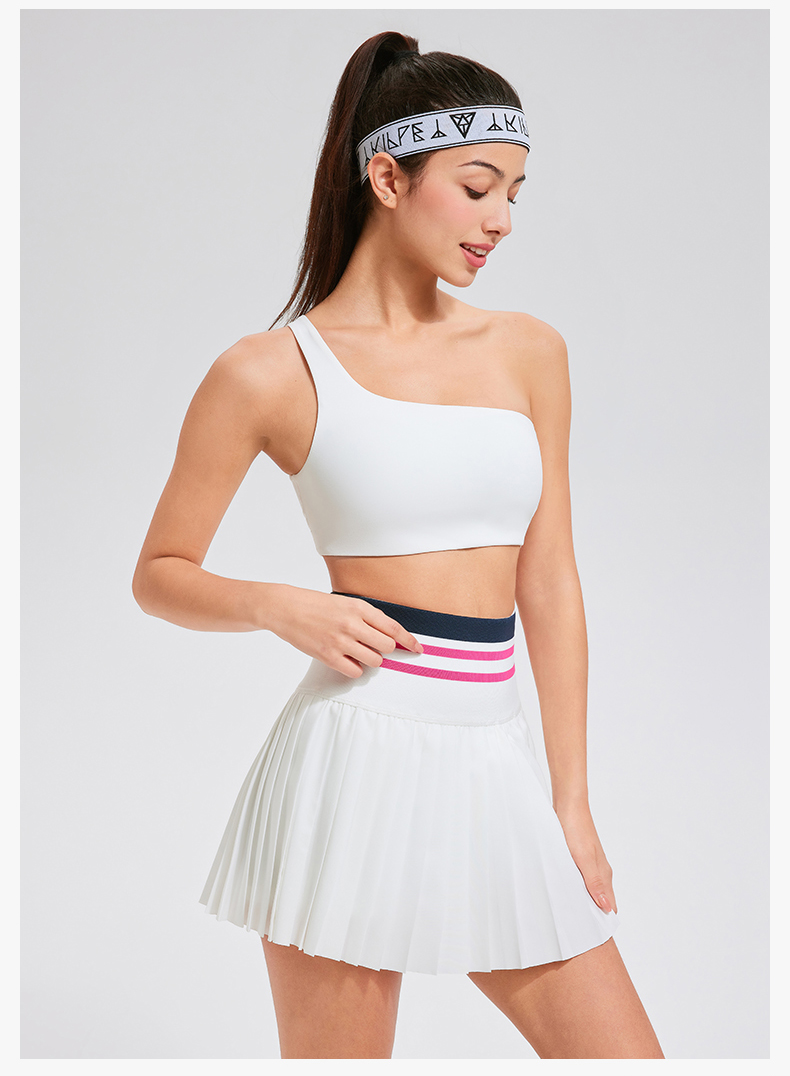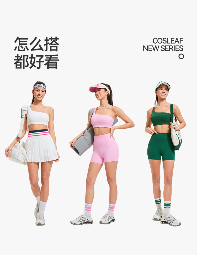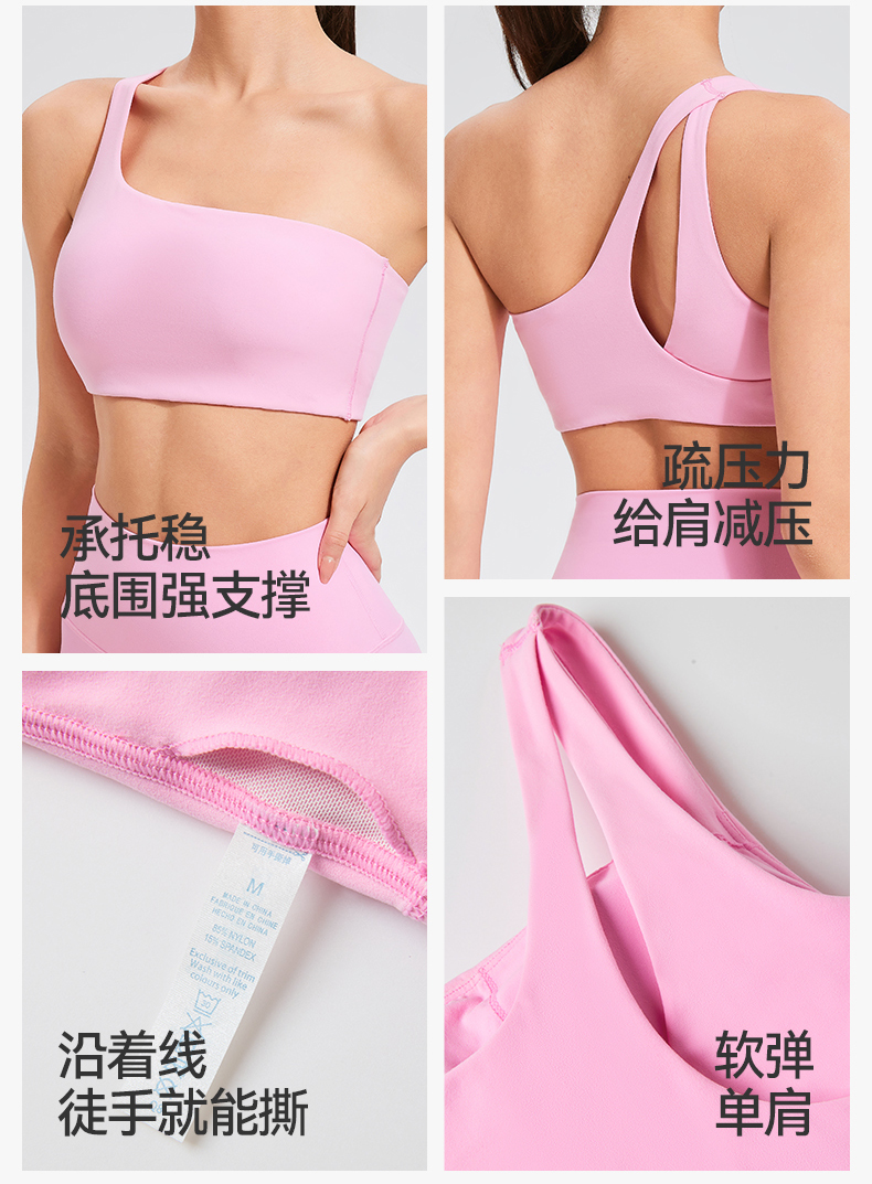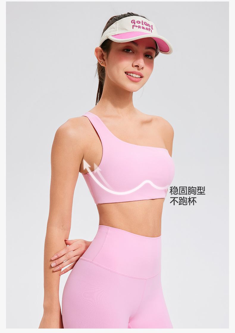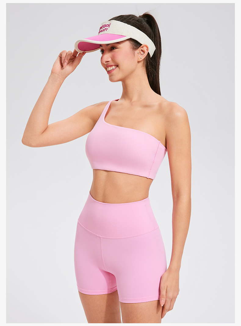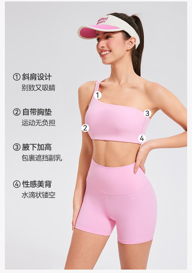 【健身撸铁套装】斜肩带一体固定罩杯运动背心内衣三分裤运动套装