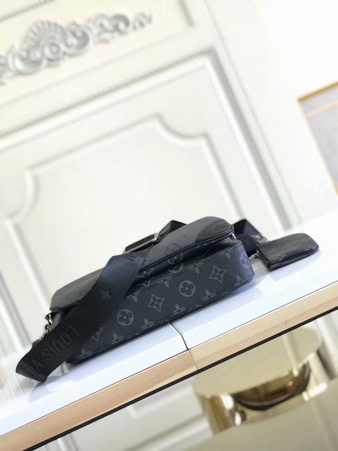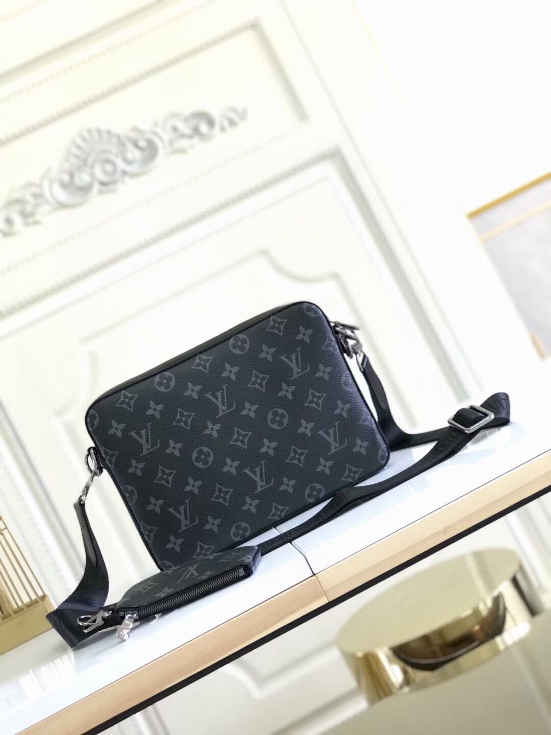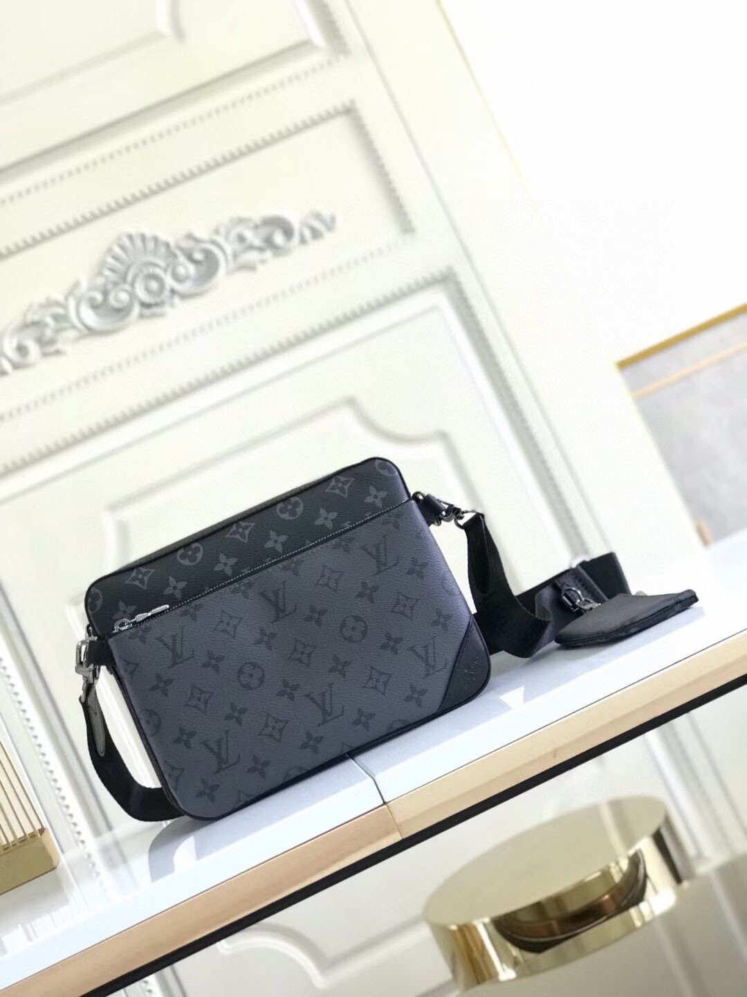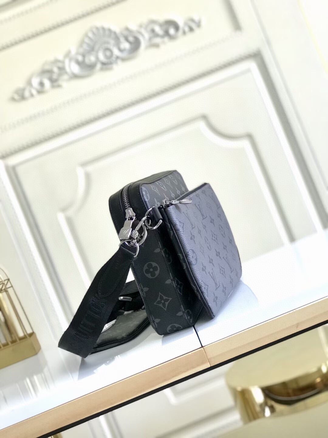 Louis Vuitton 路易威登 芯片版本 ⭐正品开发⭐️对版五金⭐️型号:三合一邮差包⚽️Trio 邮差包由 Monogram Eclipse 帆布与 Monogram Eclipse Reverse 帆布制成。标志性的同色调灰色图案凸显此多功能拼搭设计品的线条。除具备传统斜跨手袋的功能外,另配可脱卸拉链袋和附于包带上的零钱包。