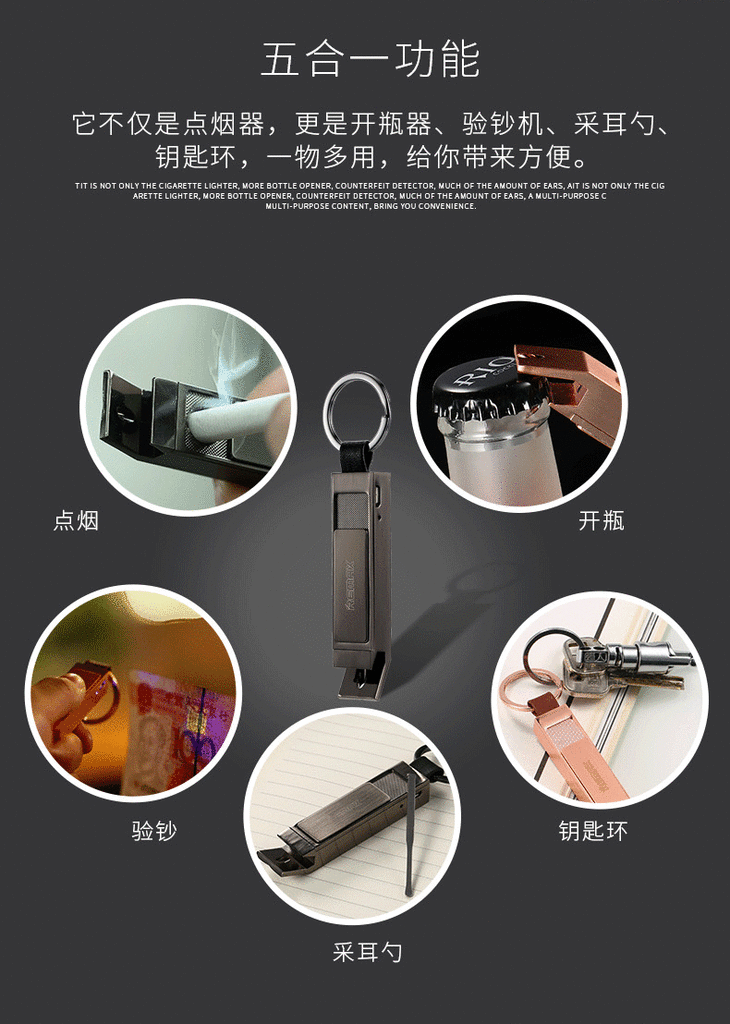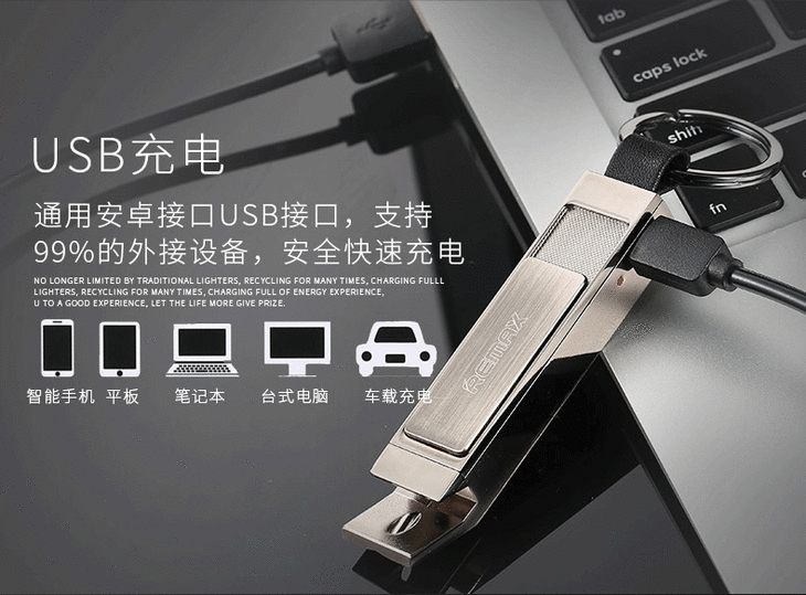 Remax通天系列电子防风打火机超薄金属USB充电点烟开瓶器验钞机
